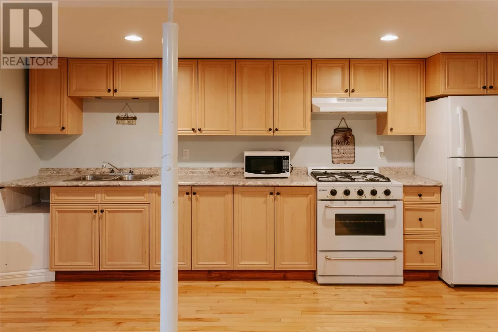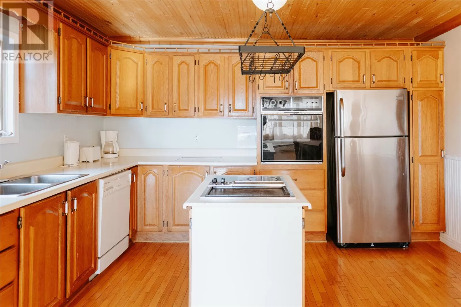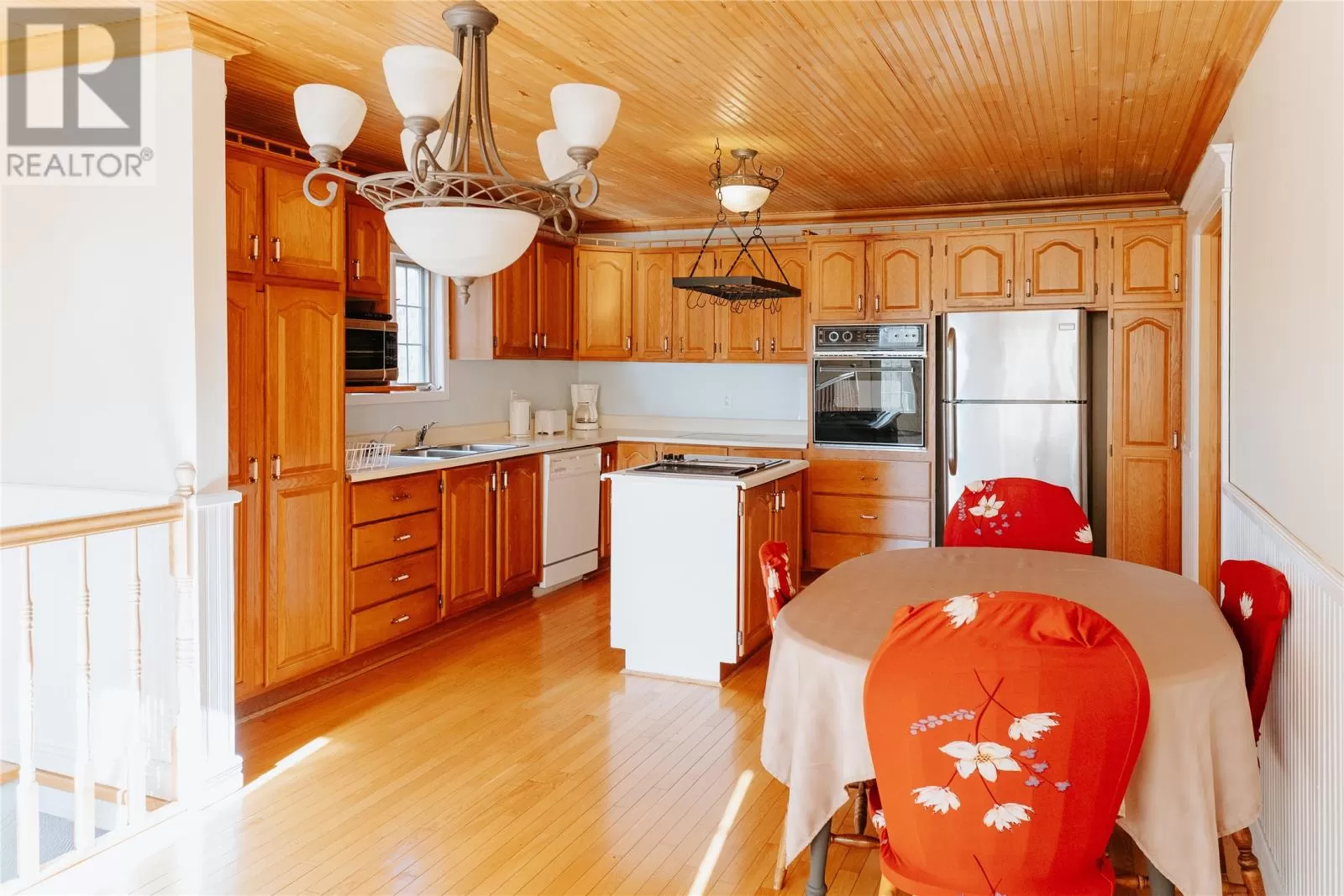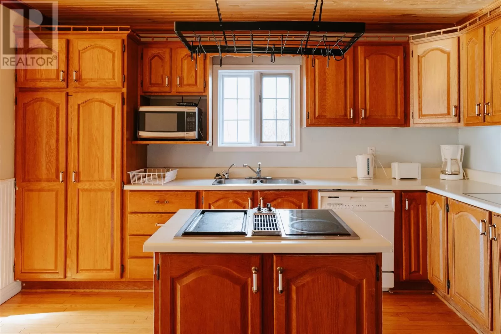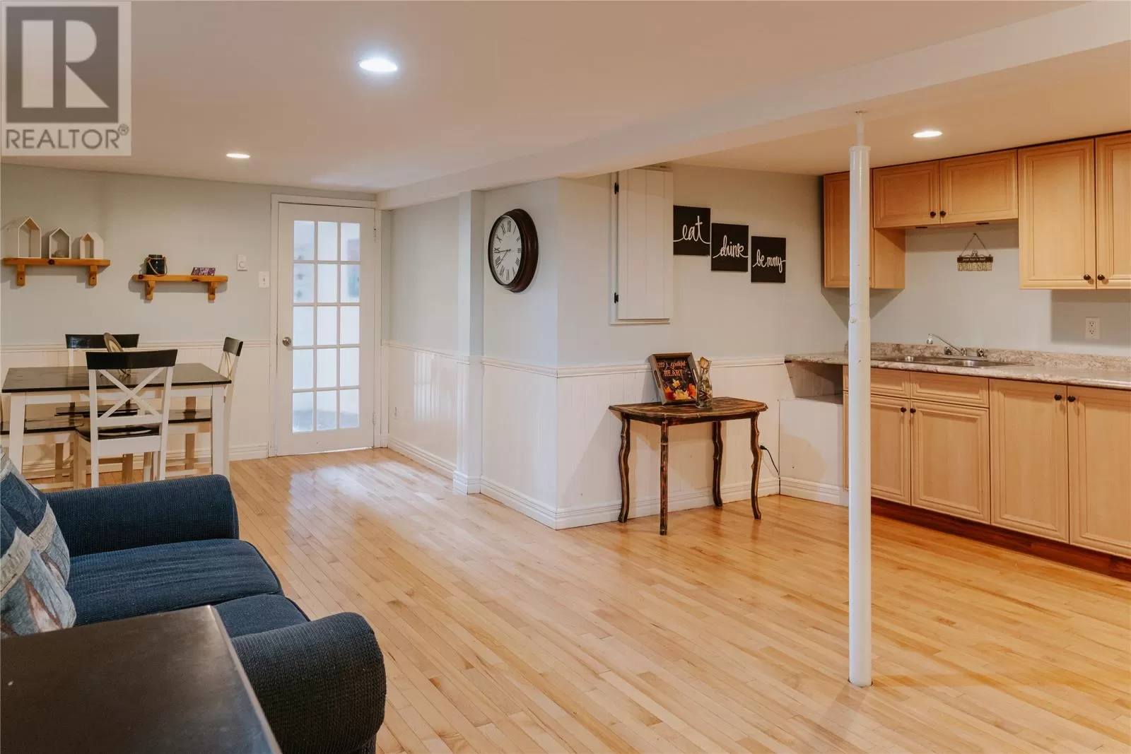 Welcome to 77 Quay Road in Badger's Quay! If you're searching for an affordable, move-in ready home in New Wes Valley, this one is a charmer! With three bedrooms on the main level, a fourth downstairs, and a one bedroom apartment on the ground level, this freshly painted home is definitely big enough for your family, and perfect for anybody who'd perhaps like some extra space (and privacy!) for extended family, too. It's also an ideal opportunity to earn some rental income - you could live upstairs and rent out the apartment, or you could rent out both levels as monthly or nightly vacation rentals. On the main level, the side entrance leads to a large shared kitchen / dining area, with hardwood floors, endless drawers and cabinets, built-in appliances, and an island with a cooktop. Two sets of french doors lead you to the living room - spacious and full of natural light, thanks to lots of windows and the clear front door. Down the hall, a large landing, where you'll find three decent-sized bedrooms, a three-piece bath, and closets for storage. Downstairs, there's shared laundry, a tiled entryway and second entrance, as well as a fourth bedroom. Big (but cozy!), the open concept kitchen / living / dining room in the apartment features wainscotting, pot lights, and more hardwood floors. There's also a large bedroom, three-piece bath featuring a stand-up shower, and an extra room you could use for a home office or home gym. Updates in recent years include a new septic tank, hot water tank, and patio, all in 2021. Shingles and windows were also replaced ten years ago. Outside, lots of curb appeal in the front, and St. Brendan's Anglican Church in your backyard just adds more character. This well-priced home could be a solid investment opportunity or a solid starter - the choice is yours. (id:27476)