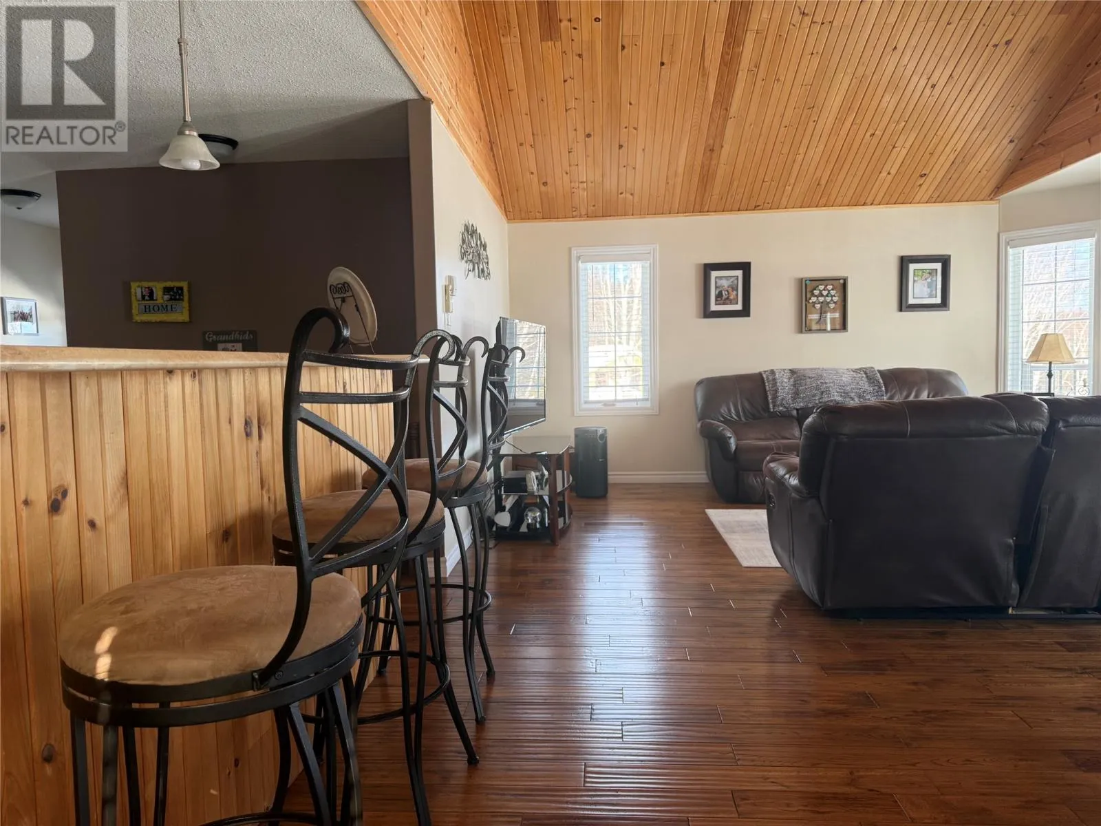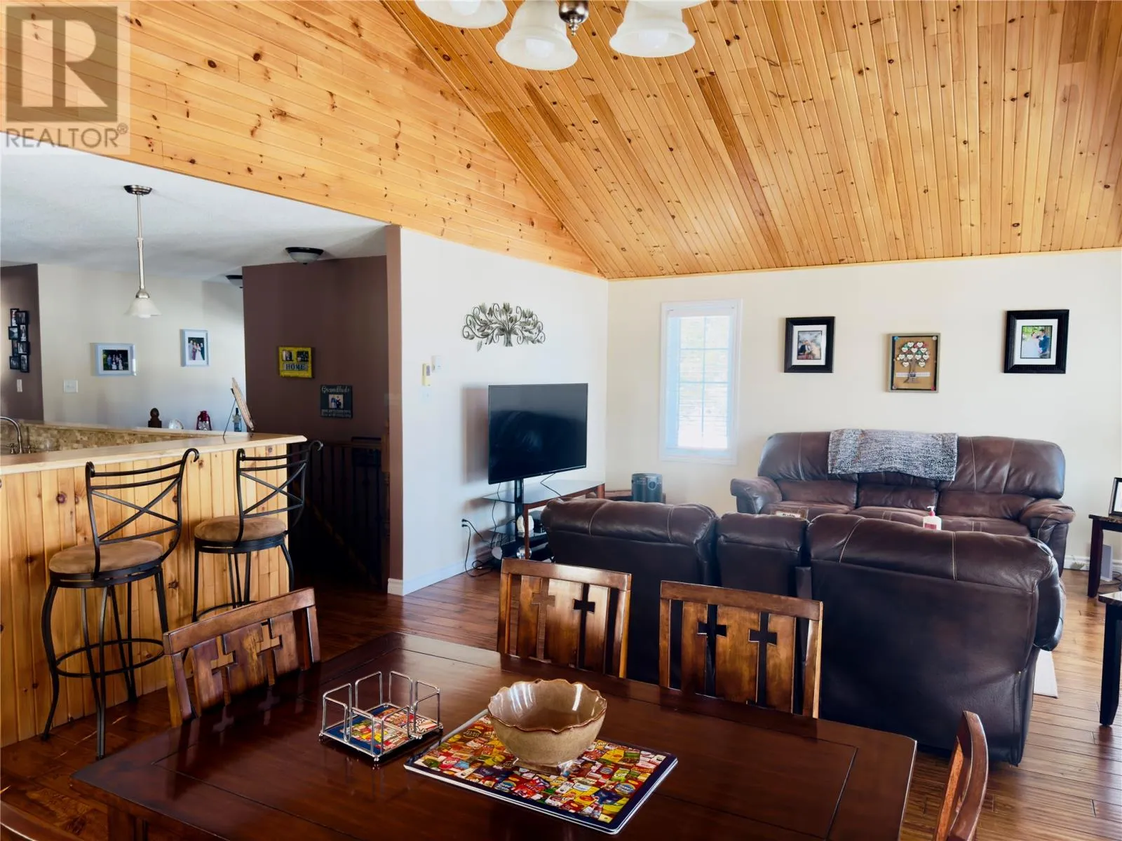 Only 1.5 km down Crooked Lake Road! The home is conveniently located on the left-hand side â just watch for the REALTOR® sign out front so you donât miss it. Perched on a scenic hill overlooking Crooked Lake and capturing expansive views of the Lake, this beautifully maintained 15 year old home offers the perfect blend of privacy, comfort, and breathtaking natural surroundings. From spectacular sunrises to sunsets, the panoramic lake views are unforgettable, even the occasional sight of moose swimming across the water adds to the magic of this incredible setting.The main level features a bright, welcoming open concept design, ideal for everyday living and entertaining. Vaulted wood ceilings and rich hardwood flooring add warmth and character, while large windows showcase the stunning views from the living and dining areas. The spacious kitchen flows seamlessly into the dining and living room, creating a central gathering space for hosting family and friends. This level offers two oversized bedrooms, including a generous primary suite complete with a walk-in closet and ensuite with walk-in shower, along with an additional full bathroom.The fully developed walk-out basement expands the living space even further, offering a third bedroom, dedicated office, and multiple open-concept areas for recreation and relaxation. A large rec room with pool table and cozy wood stove creates the perfect entertaining space, while an additional playroom and craft or hobby room provide flexibility for growing families or visiting guests. With its layout and separate living areas, the lower level also makes ideal private guest quarters.Situated on nearly one acre, this property includes a 28 x 36 detached garage, ice block foundation, wood and electric heating, plus two heat pumps for year-round comfort. The walk-out basement offers easy outdoor access, where you can relax on the front patio with morning coffee, evening drinks, or BBQs while enjoying the lake views.This home can also be sold furnished, making it truly move-in ready, a rare opportunity to own a spacious hillside lakeview retreat where comfort meets nature in every direction. (id:27476)