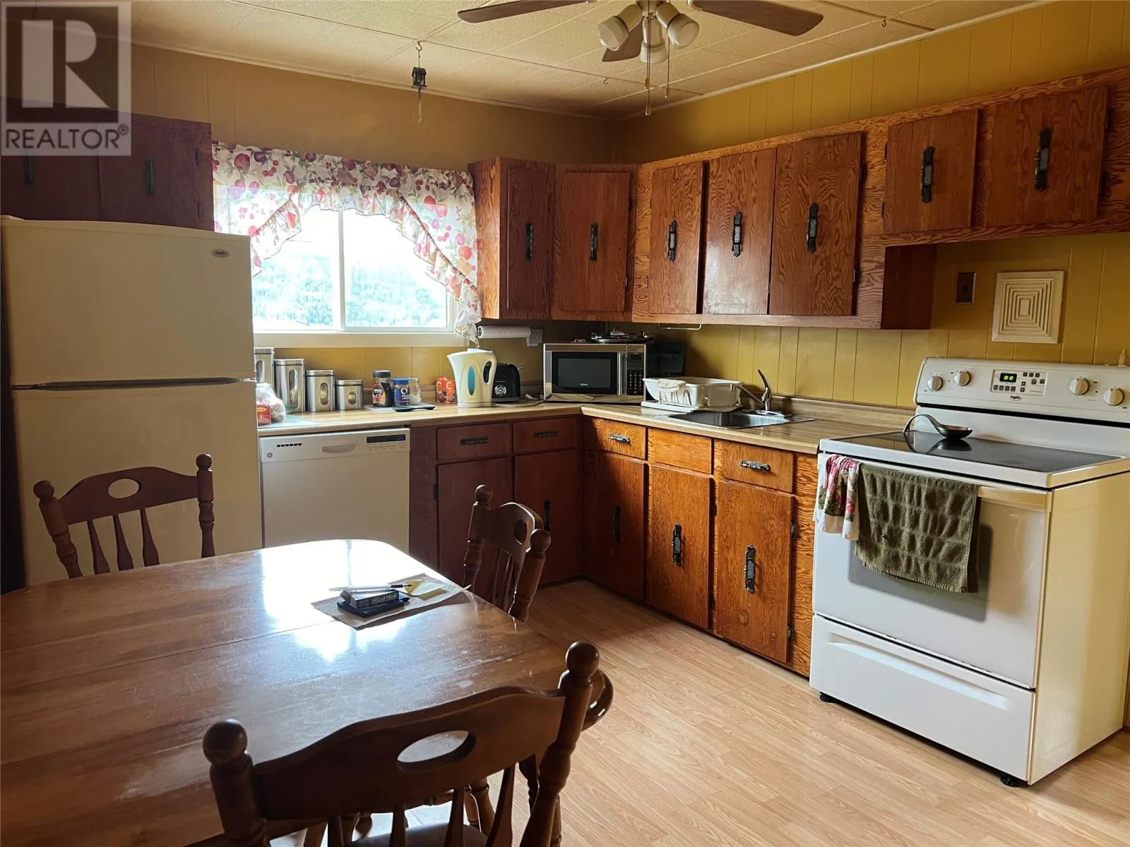 This three-bedroom bungalow is situated in Baie Verte. The main floor features a living room, dining room, kitchen, three bedrooms, a full bathroom, and a spacious porch that also serves as a laundry room. 60 Amp fuses, some plumbing upgrades. The oil tank was replaced in the last two to three years. The home is heated with oil, and the walkout basement is unfinishedâideal for additional storage or a workshop. Detached storage shed, single paved driveway. The sale includes a refrigerator, stove, washer, and dryer. The property is being sold in 'AS IS' condition. (id:27476)