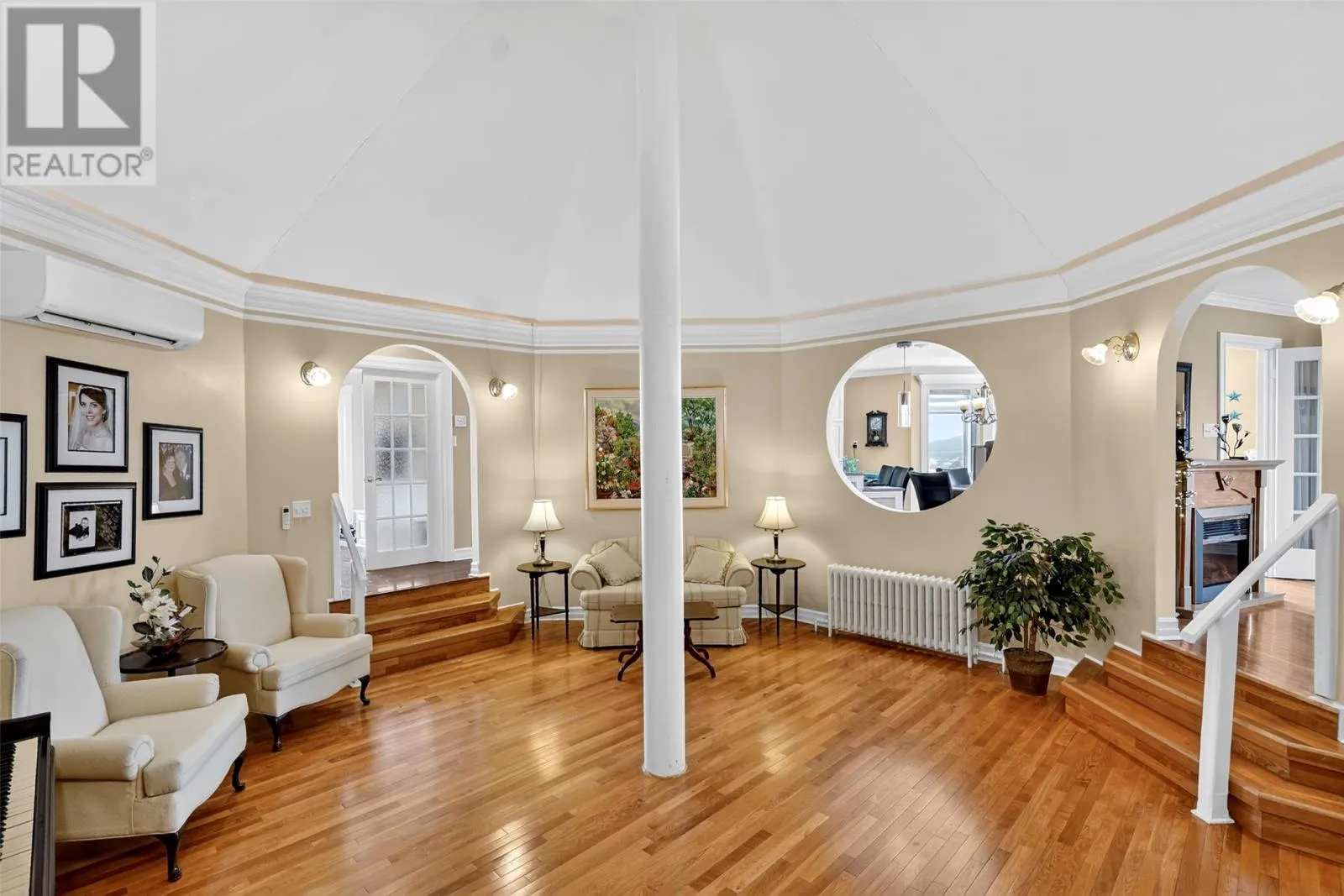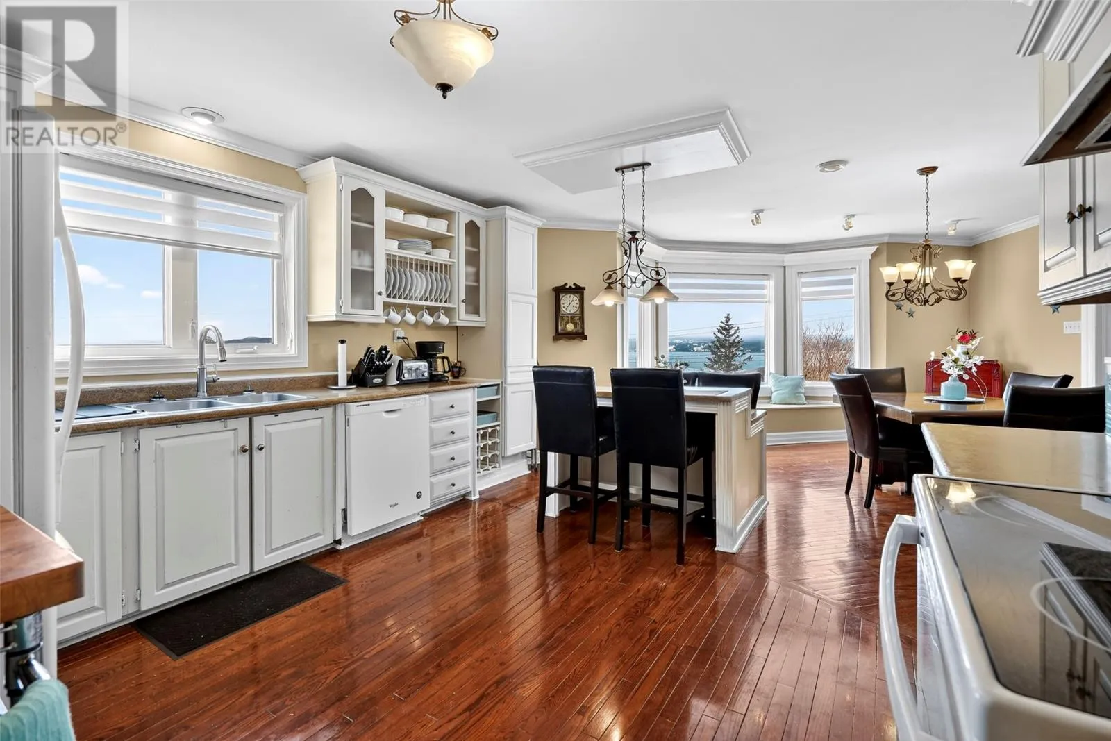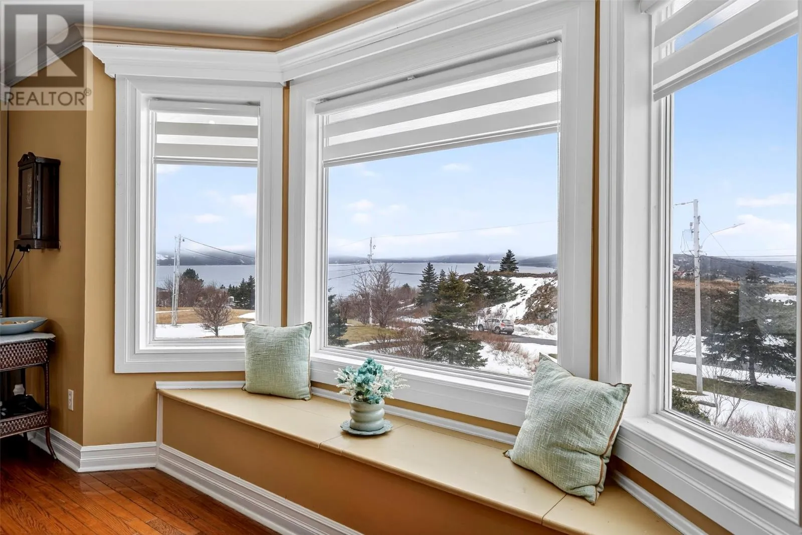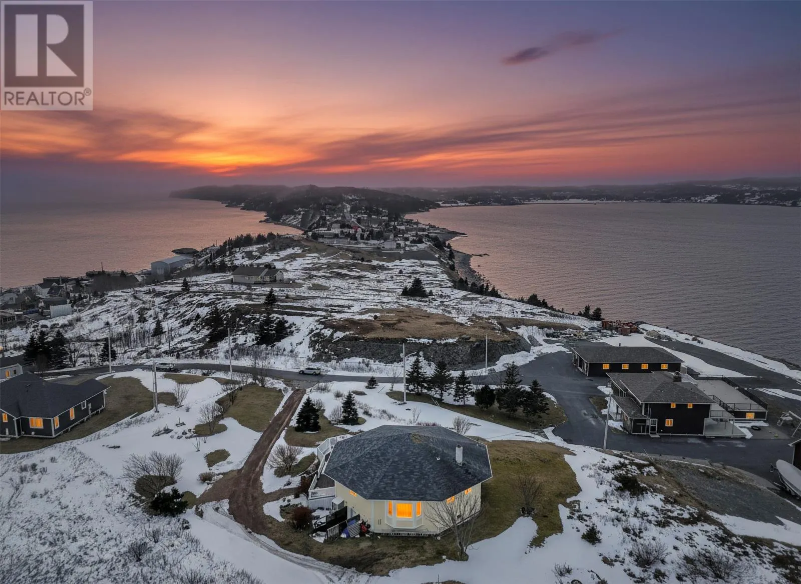 Ocean view living in beautiful Bareneed, Newfoundland! Looking for something truly unique? This three-bedroom, octagon - shaped home offers breathtaking views of two bays and their surrounding communities in Conception Bay North. Exterior features include a 0.7-acre landscaped lot and expansive wraparound deck for soaking in the views. The interior is centered by a large, sunken living room along with a primary bedroom with three - piece ensuite, second bedroom and third bedroom with two - piece ensuite. Completing the main is an executive style, four - piece main bathroom, porch with slate floor, sitting area, laundry nook, custom kitchen with appliances included and dining nook with panoramic ocean views. The basement is mostly undeveloped, making it great for storage, but does boast a rec room complete with bar area. This property would be ideal as a year - round residence, summer home or Air BnB! (id:27476)