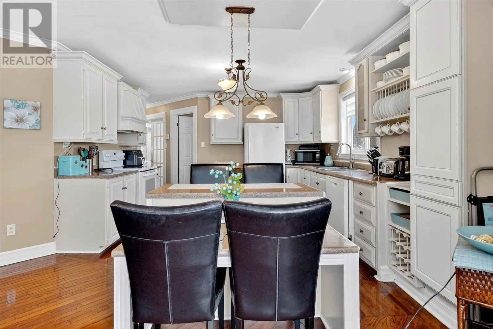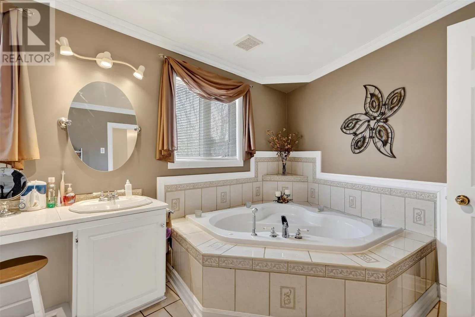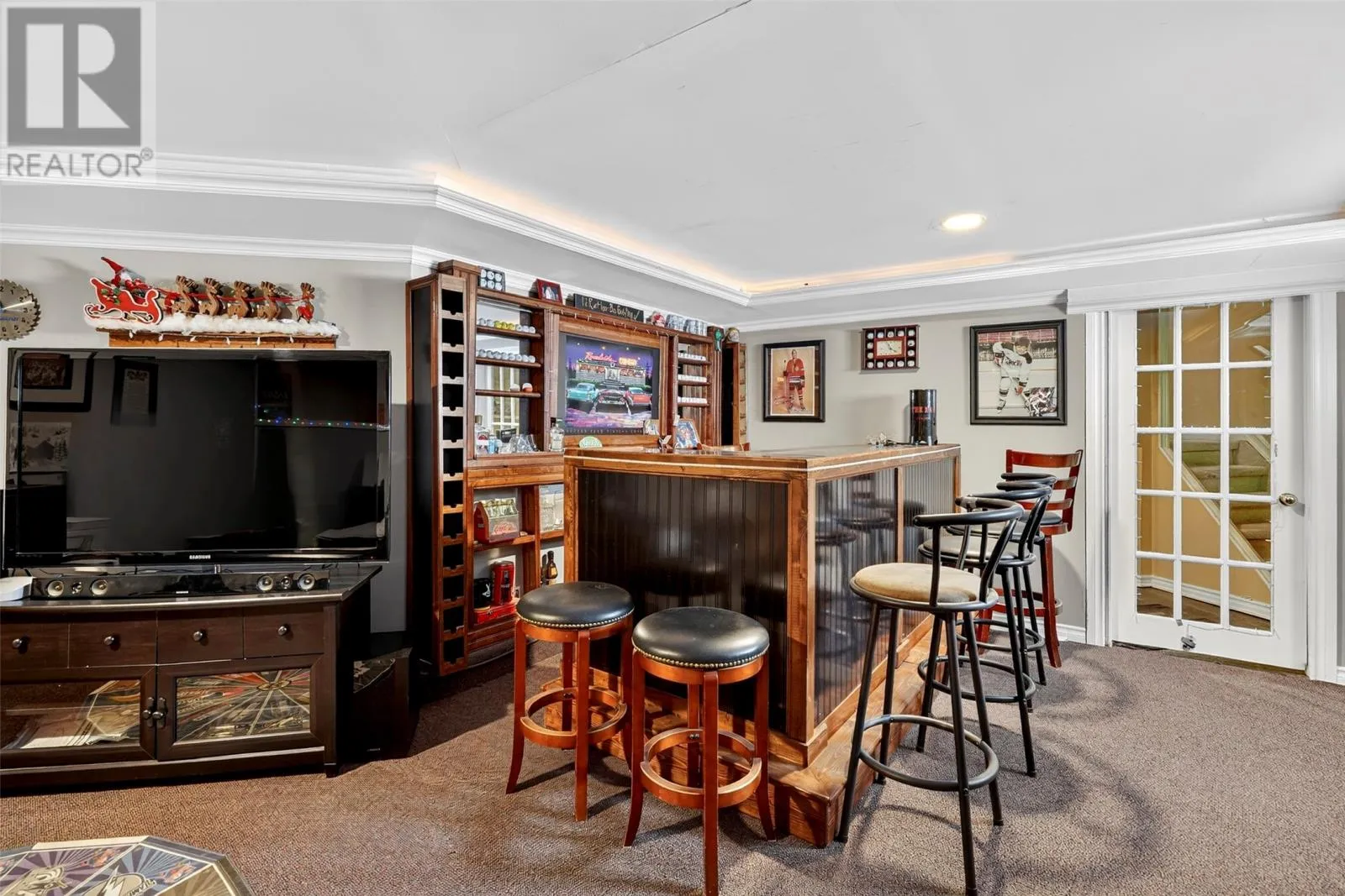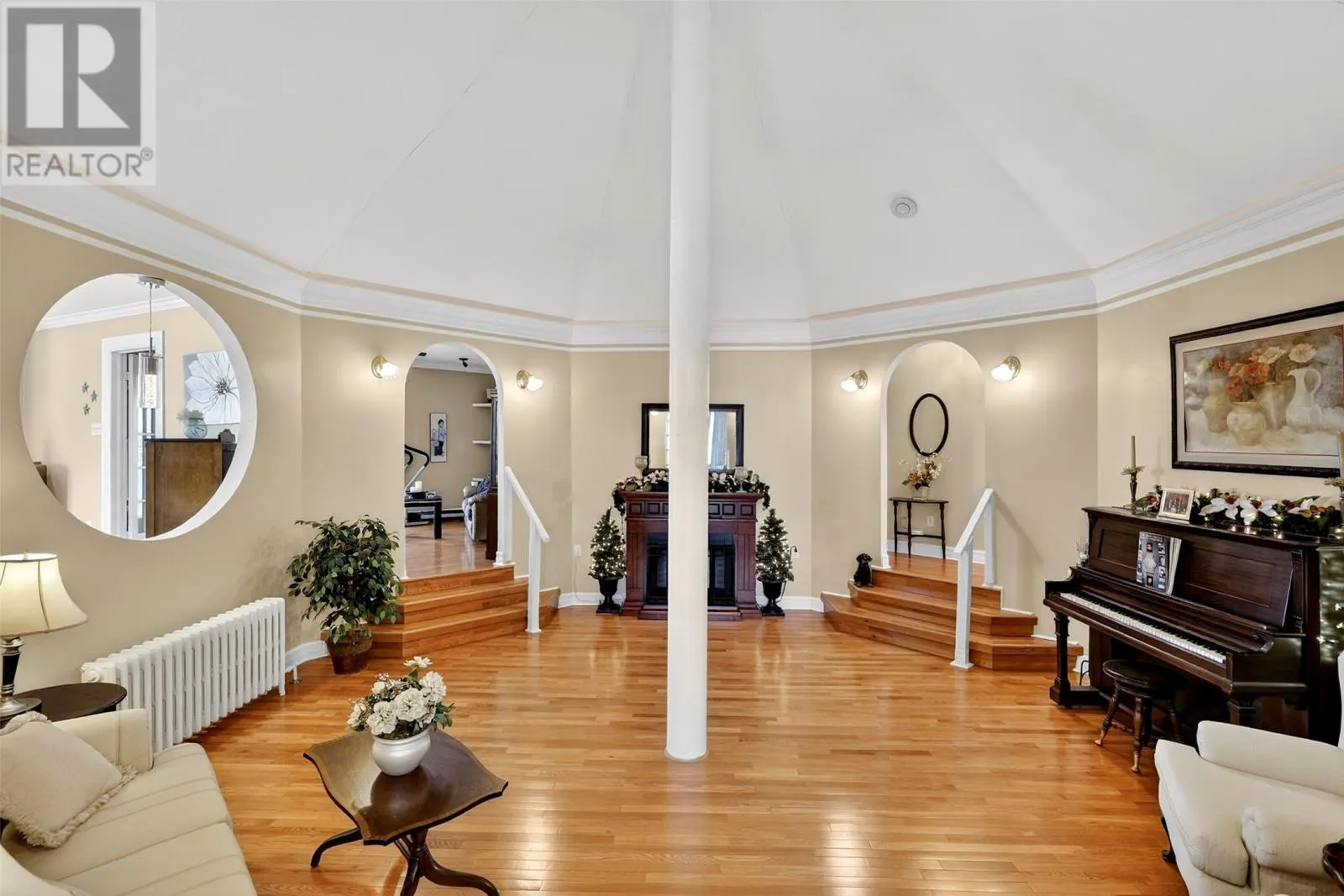 Ocean view living in beautiful Bareneed, Newfoundland! Looking for something truly unique? This three-bedroom, octagon - shaped home offers breathtaking views of two bays and their surrounding communities in Conception Bay North. Exterior features include a 0.7-acre landscaped lot and expansive wraparound deck for soaking in the views. The interior is centered by a large, sunken living room along with a primary bedroom with three - piece ensuite, second bedroom and third bedroom with two - piece ensuite. Completing the main is an executive style, four - piece main bathroom, porch with slate floor, sitting area, laundry nook, custom kitchen with appliances included and dining nook with panoramic ocean views. The basement is mostly undeveloped, making it great for storage, but does boast a rec room complete with bar area. This property would be ideal as a year - round residence, summer home or Air BnB! (id:27476)