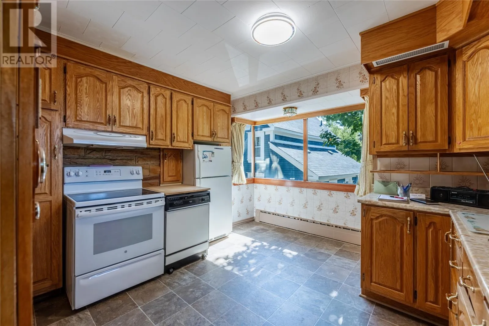 This sweet home, has been loving cared for over the years, so much detail on the ceilings. Oak kitchen with eating nook. Downstairs has a bedroom, half bathroom and open space to develop. Living room has an electric fireplace. Electric furnace conversion in 2013. Shingles were renewed in approx. 6 years ago. There is a 200 amp service. The backyard is huge with two garages, shed and a work room and wood stove perfect for the hobby enthusiast. Come and explore the rear garden gooseberry trees, and a concrete pad to build another greenhouse. Back yard & side parking. Wander through the garages, used for storing cars and a motorhome. Located close to the public park and playground for the kiddos. Shopping is only minutes away. Walking distance to schools. Rear garden access. (id:27476)