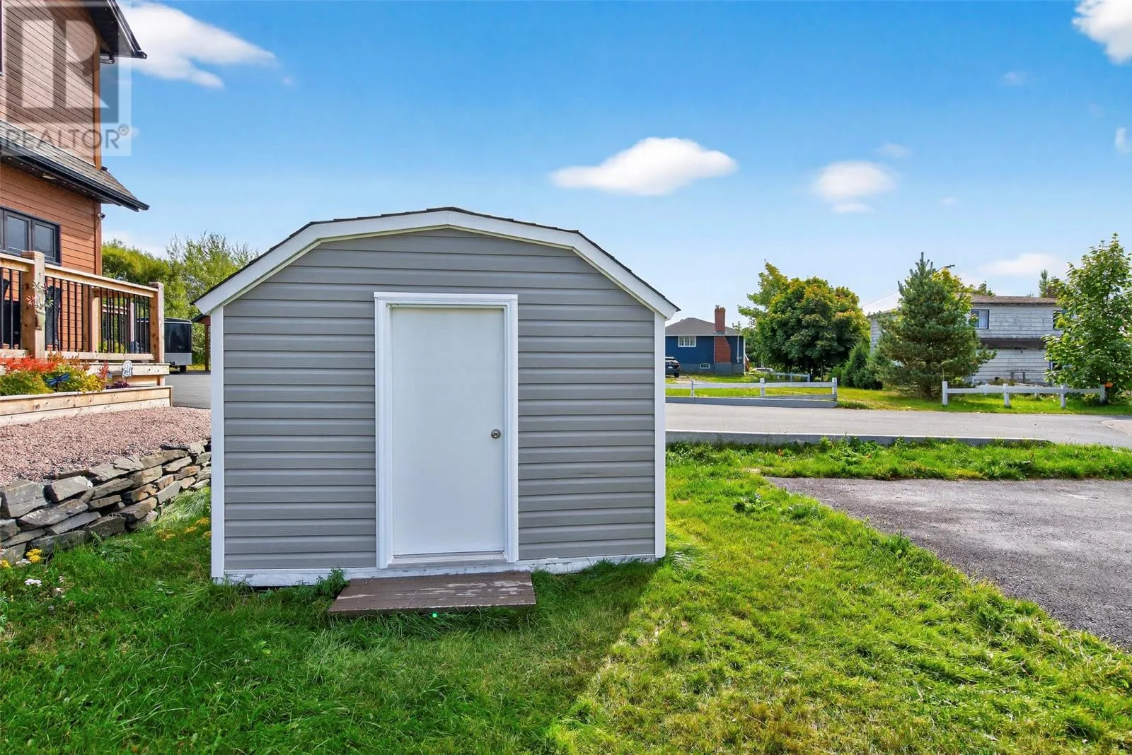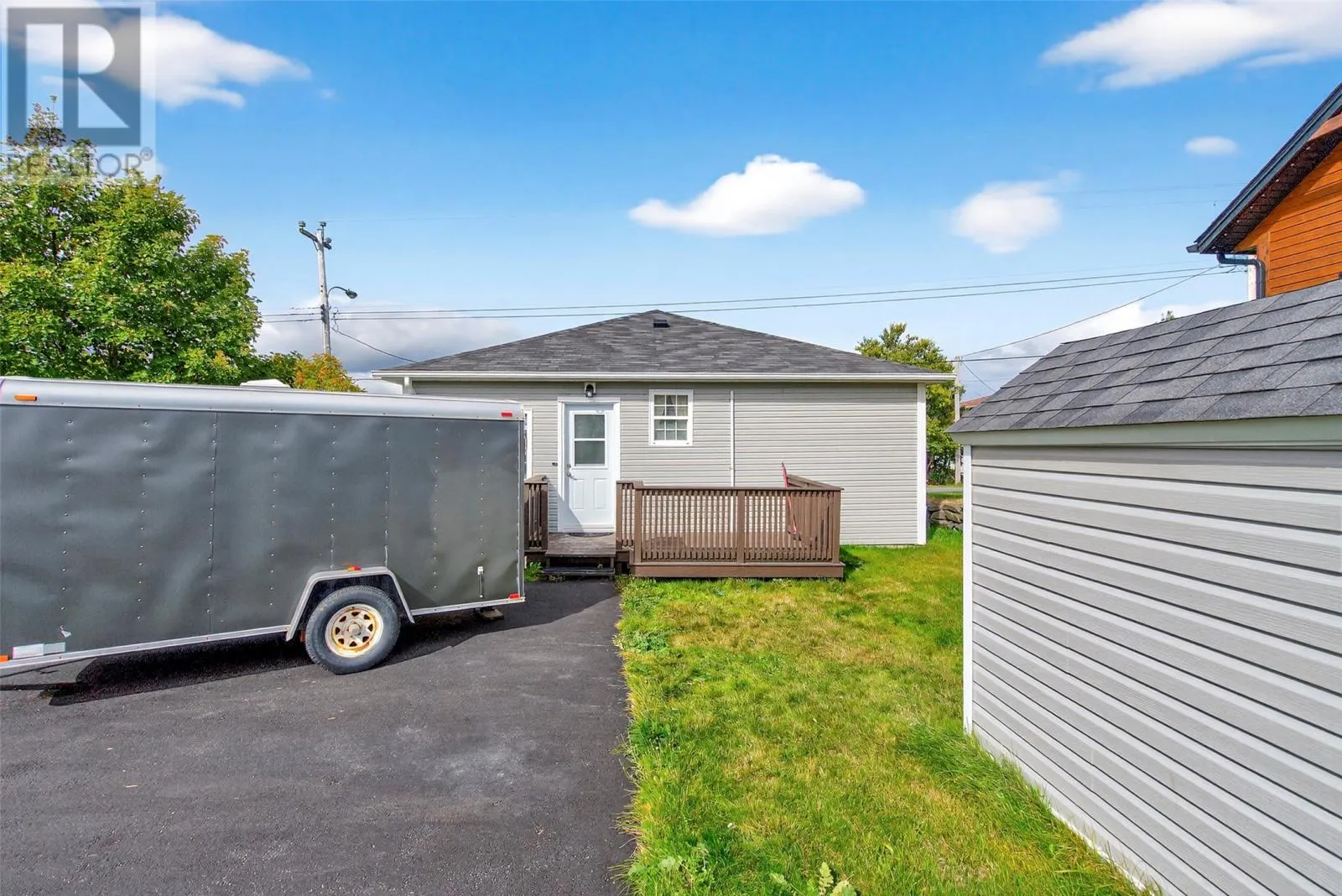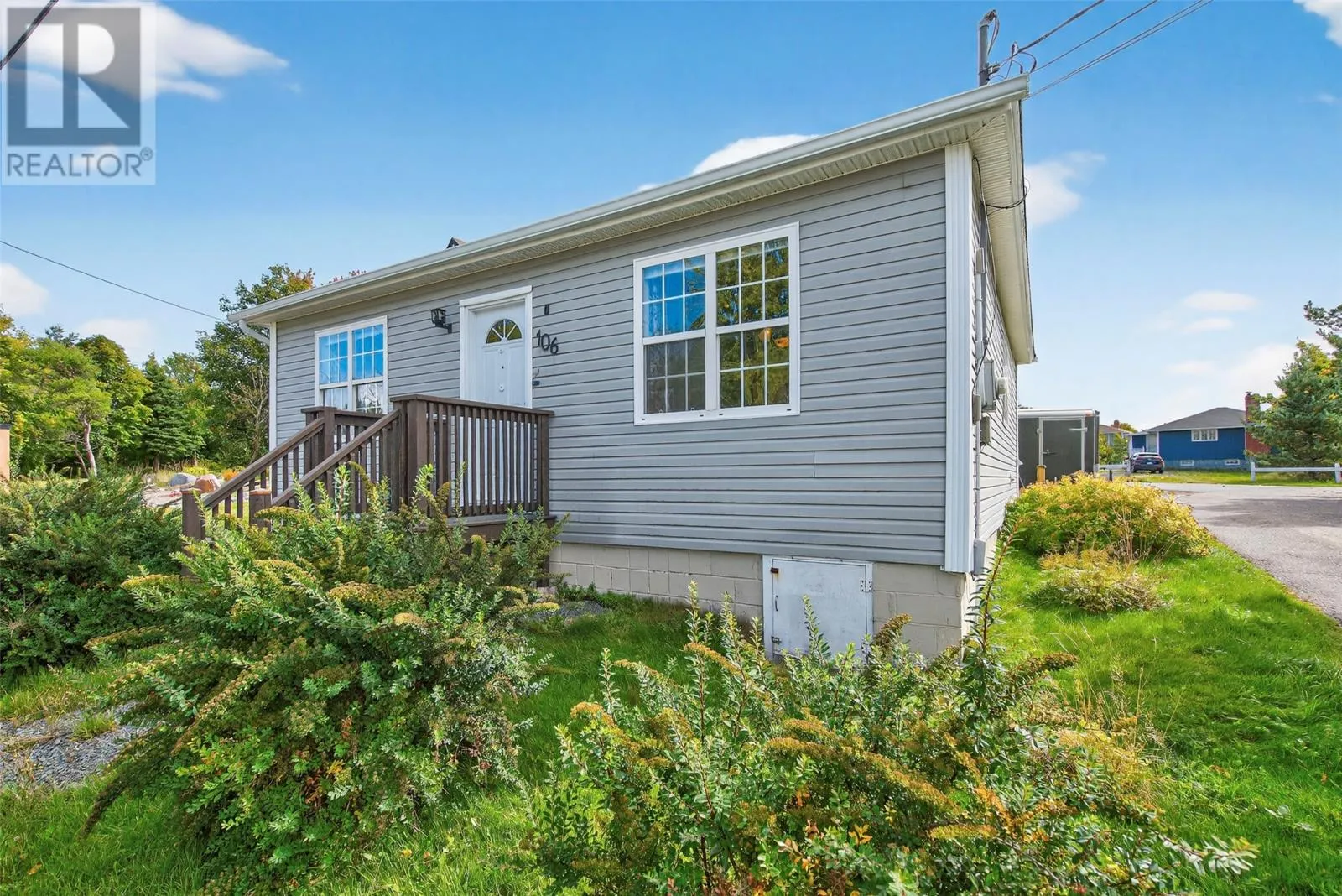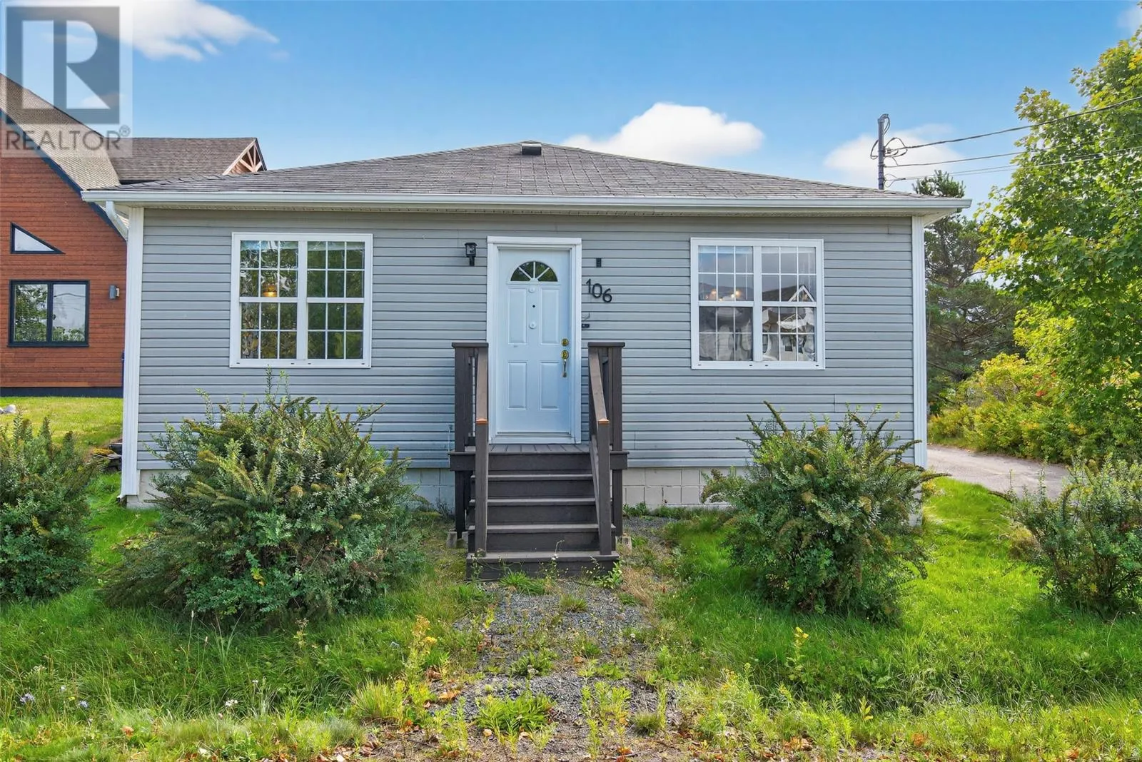 Welcome to 106 Central Street, Bay Roberts. Centrally located and just a short walk to the beach in Bears Cove, this property has a landscaped lot, paved driveway, spacious back deck and an 8 x 10 storage shed for your yard maintenance tools. It would make an ideal Air BNB, year-round residence, starter home, investment property or 'downsizer.' The home offers single level living with an eat - in kitchen with fridge and stove included, dining room, living room and two bedrooms. Completing the home is a three - piece bathroom and back porch with laundry nook. Home shows well and has electric baseboard heat. Due to the property being an estate sale, property is being sold 'as is, where is.' (id:27476)