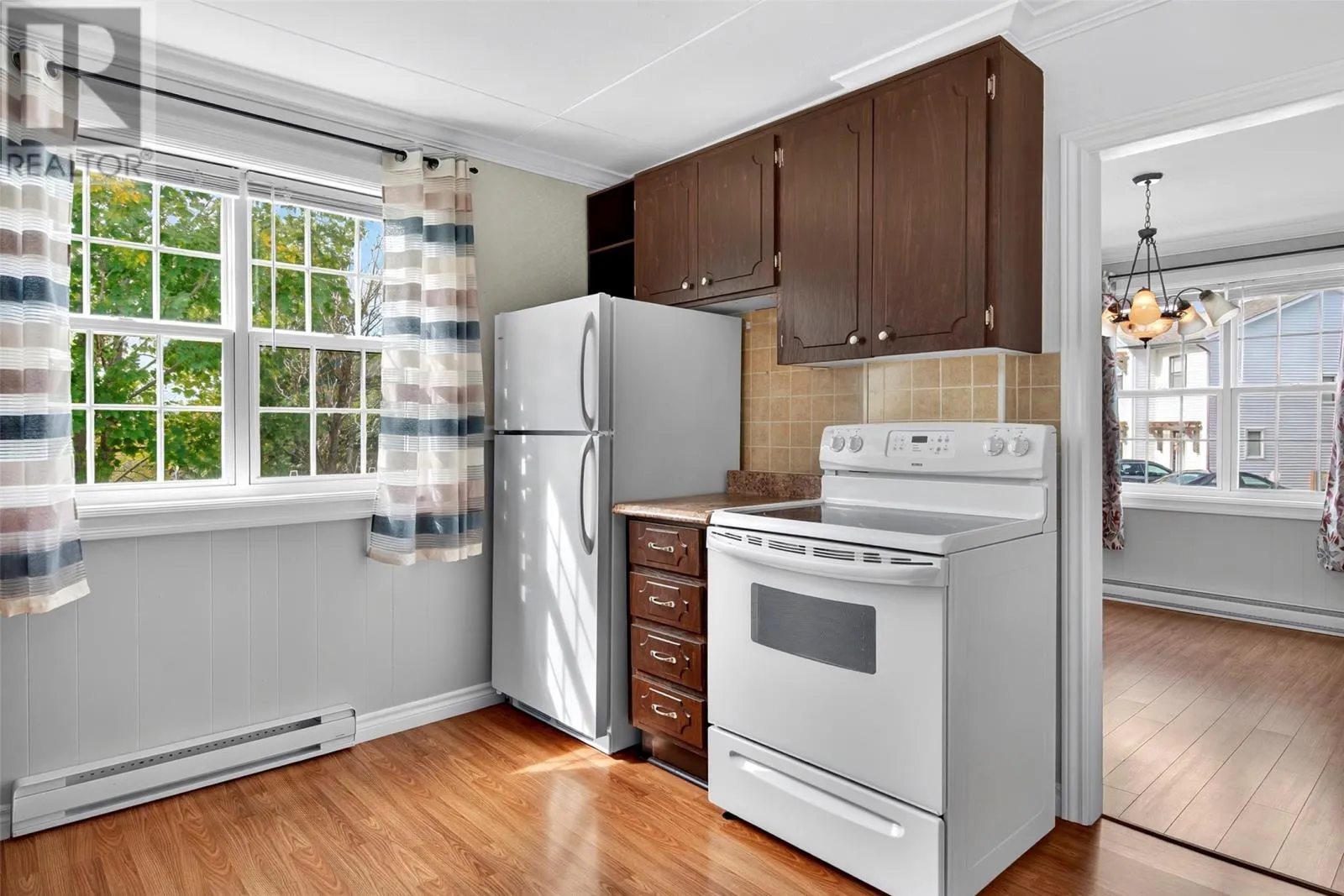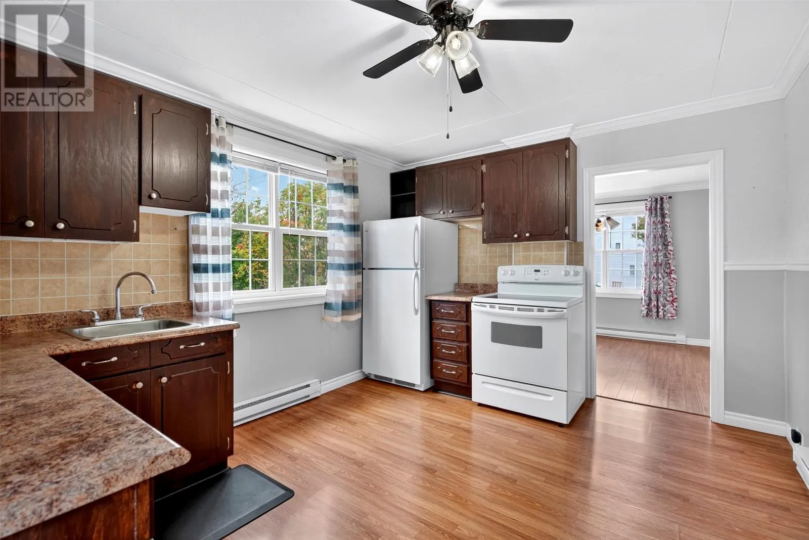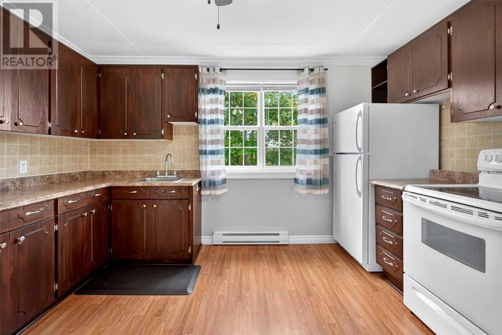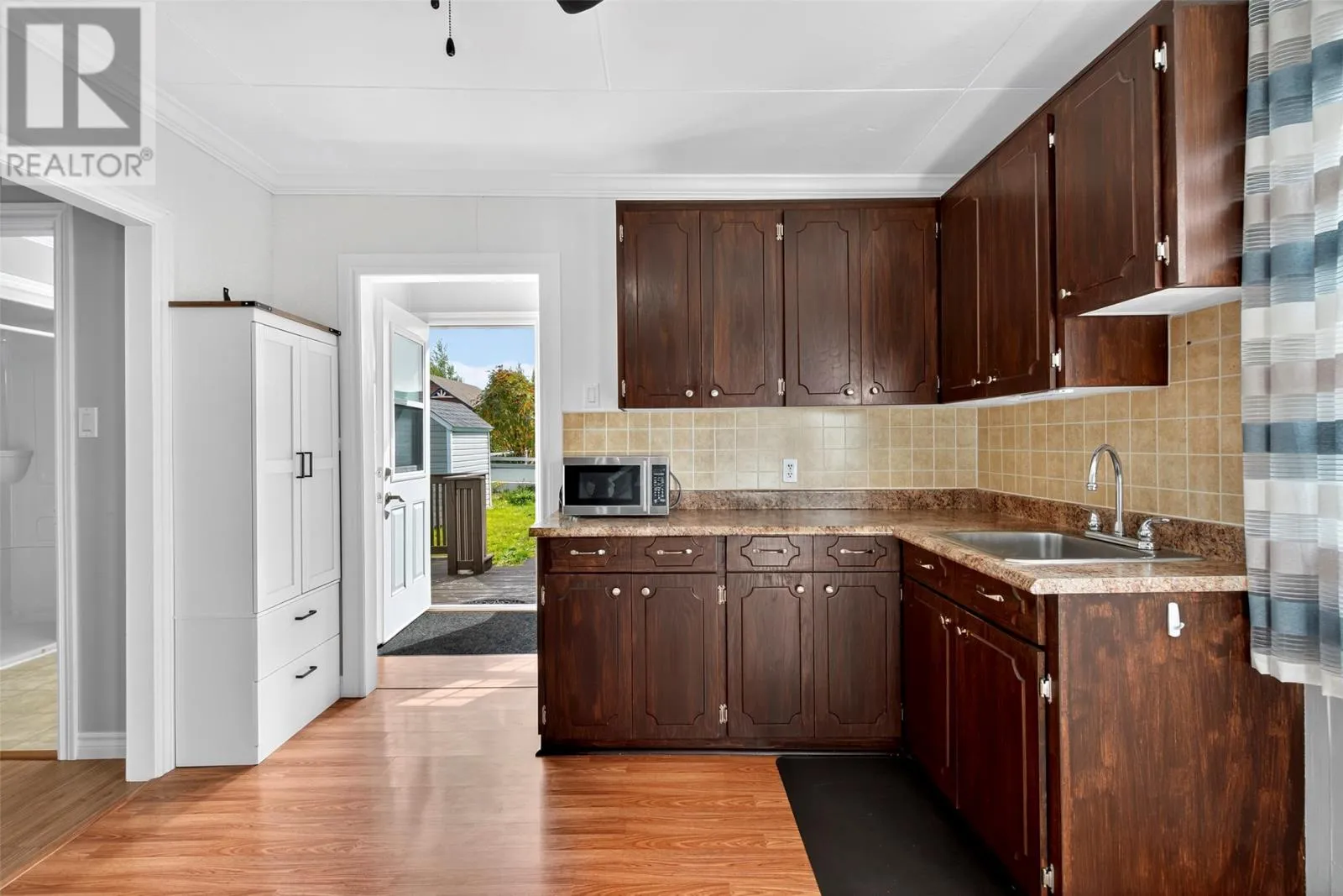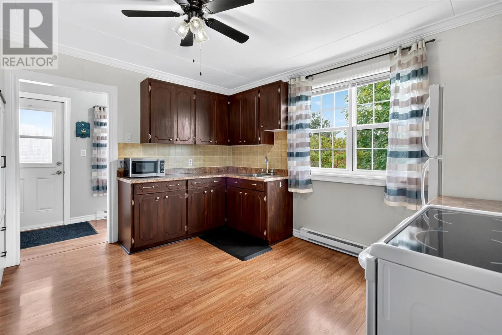 Welcome to 106 Central Street, Bay Roberts. Centrally located and just a short walk to the beach in Bears Cove, this property has a landscaped lot, paved driveway, spacious back deck and an 8 x 10 storage shed for your yard maintenance tools. It would make an ideal Air BNB, year-round residence, starter home, investment property or 'downsizer.' The home offers single level living with an eat - in kitchen with fridge and stove included, dining room, living room and two bedrooms. Completing the home is a three - piece bathroom and back porch with laundry nook. Home shows well and has electric baseboard heat. Due to the property being an estate sale, property is being sold 'as is, where is.' (id:27476)