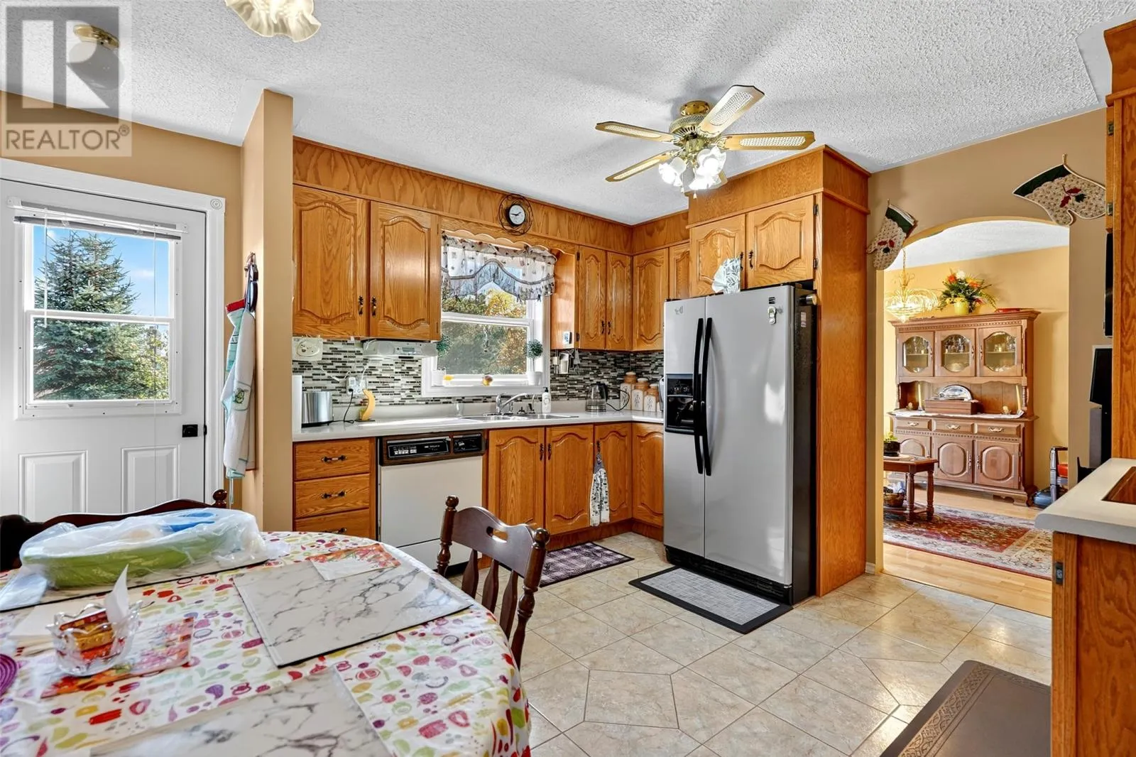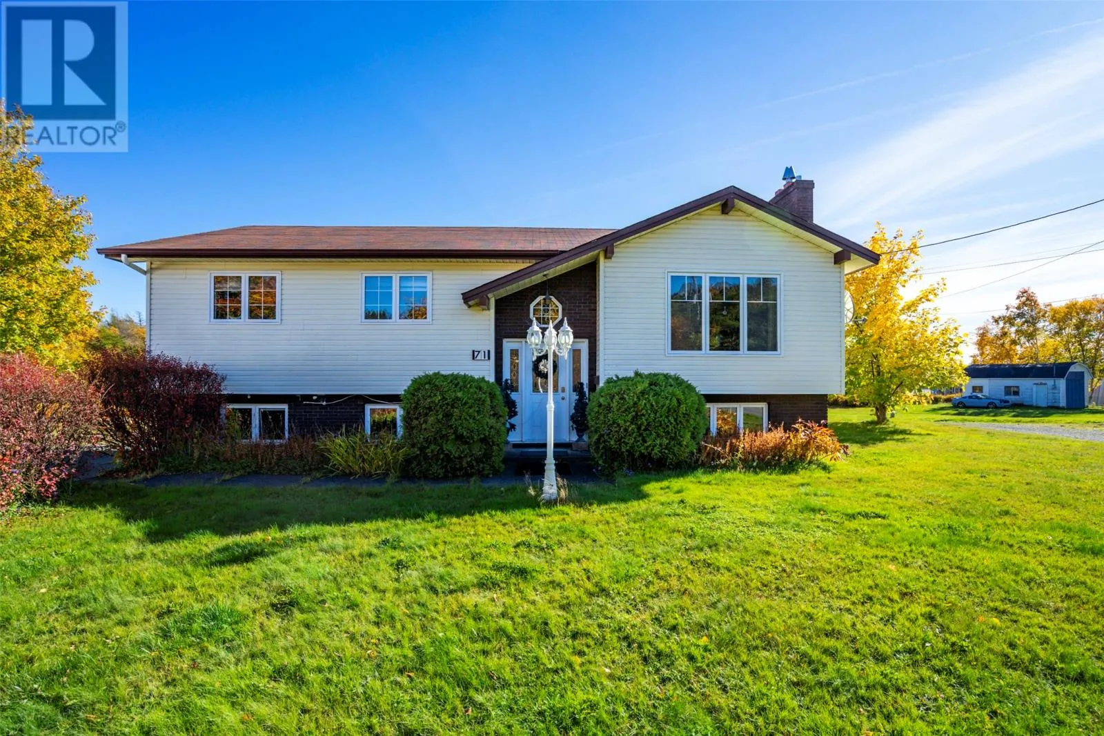 Welcome to 71 - 75 Country Road, Bay Roberts. Centrally located just a short walking distance from all amenities in Bay Roberts, this property features a partially landscaped 0.48-acre lot that has potential to be subdivided, 20' x 32' garage, paved driveway, mini split heat pump system, electric heat, town services and large back deck. The interior of the home has a custom oak kitchen with appliances included, bright dining room and large living room with hardwood floor and propane fireplace. Completing the main floor is three, ample - sized bedrooms and a three - piece main bathroom. The fully developed basement has a large rec room with wood stove, den, laundry room, three - piece bathroom and a storage room. (id:27476)