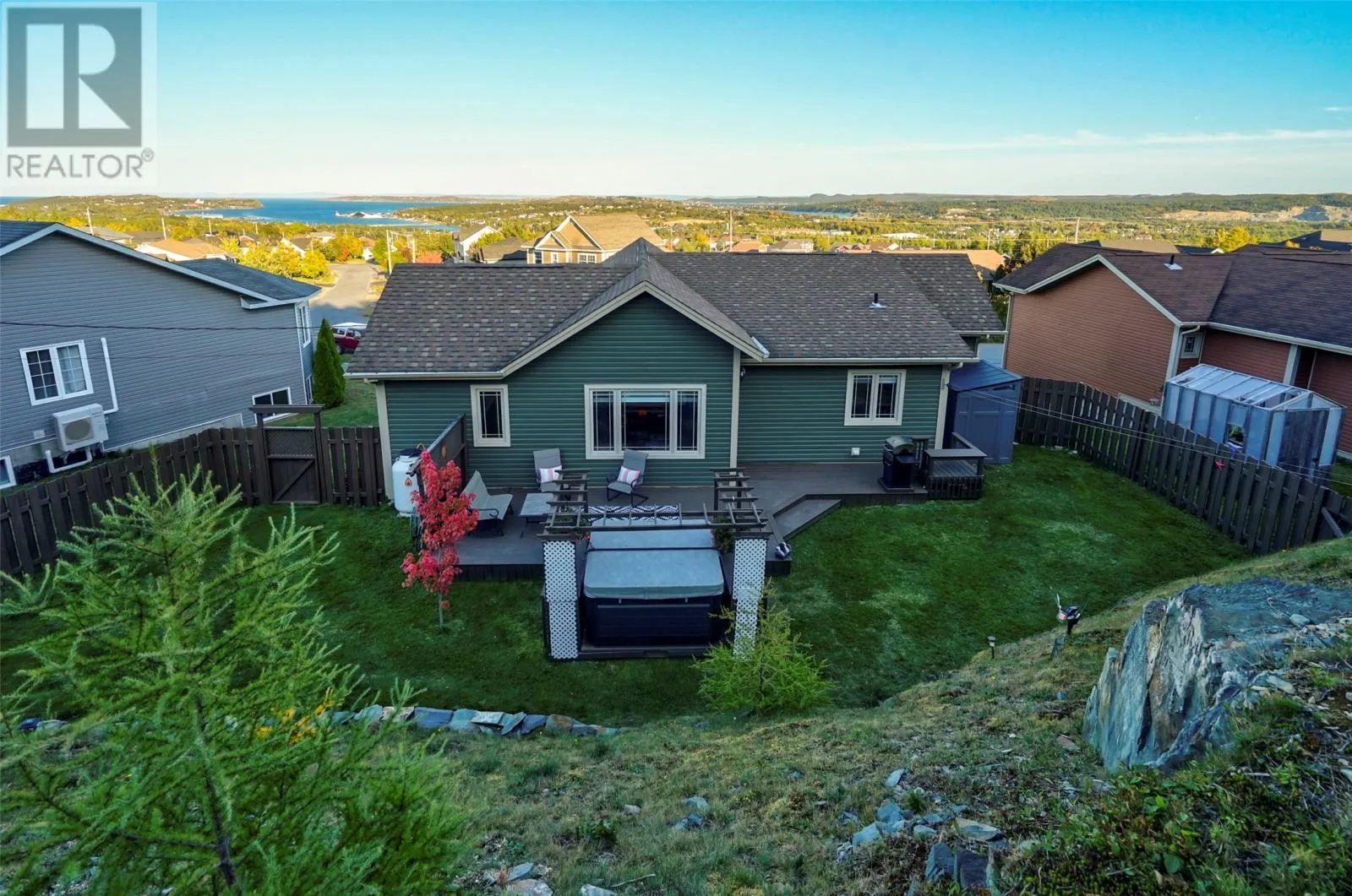 Welcome to 48 Badcock Boulevard, Bay Roberts. Located in a family friendly neighborhood, this property is fully completed for it's next owner! It offers breathtaking, panoramic views of Conception Bay and it's surrounding communities, a fenced rear yard with hot tub included, paved driveway with interlocking brick retaining walls, paved driveway and attached 15' x 25' heated garage. Being a raised bungalow, the main living area of the home is on the second floor, which allows the home to take advantage of the ocean views. The open concept design has a large living room with propane fireplace and access to a juliet, custom kitchen with with large island and appliances included and spacious dining nook with access to the rear deck and yard...great for entertaining! Completing the main floor is a bright primary bedroom with beautiful views and a three - piece ensuite, second bedroom and a three - piece main bathroom. The grade level basement is home to a spacious third bedroom, welcoming foyer, third full bathroom, hobby room and storage room. Home has been well kept and shows awesome! (id:27476)