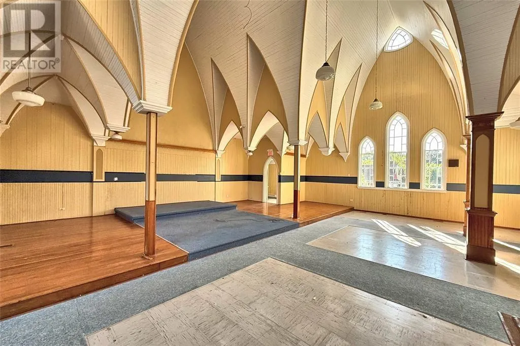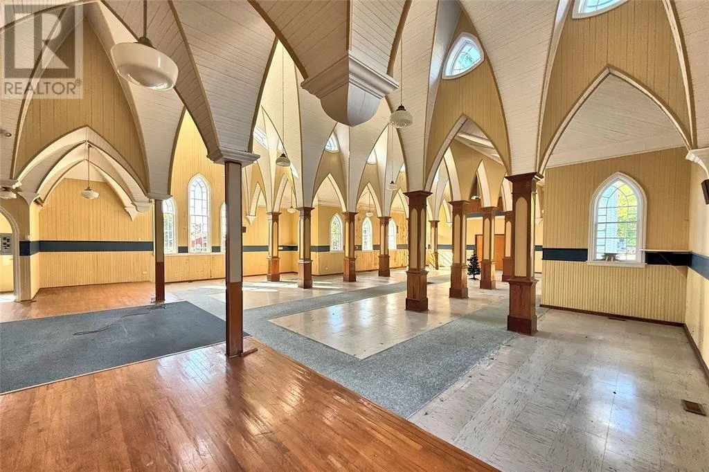 Beautiful building located centrally in Bay Roberts on a large lot (150' x 140' x 131' x 113' Approx) and located close to all amenities. This property offers tons of character. The property has a welcoming front foyer with a large main area with custom ceilings and wood work. There is an office just off the main area, a half bathroom and a balcony area on the second floor with access to the bell tower. For the person with the right vision, this property could be used for a number of ventures. Property has had a new furnace in recent years. Property is being sold 'as is, where is. (id:27476)