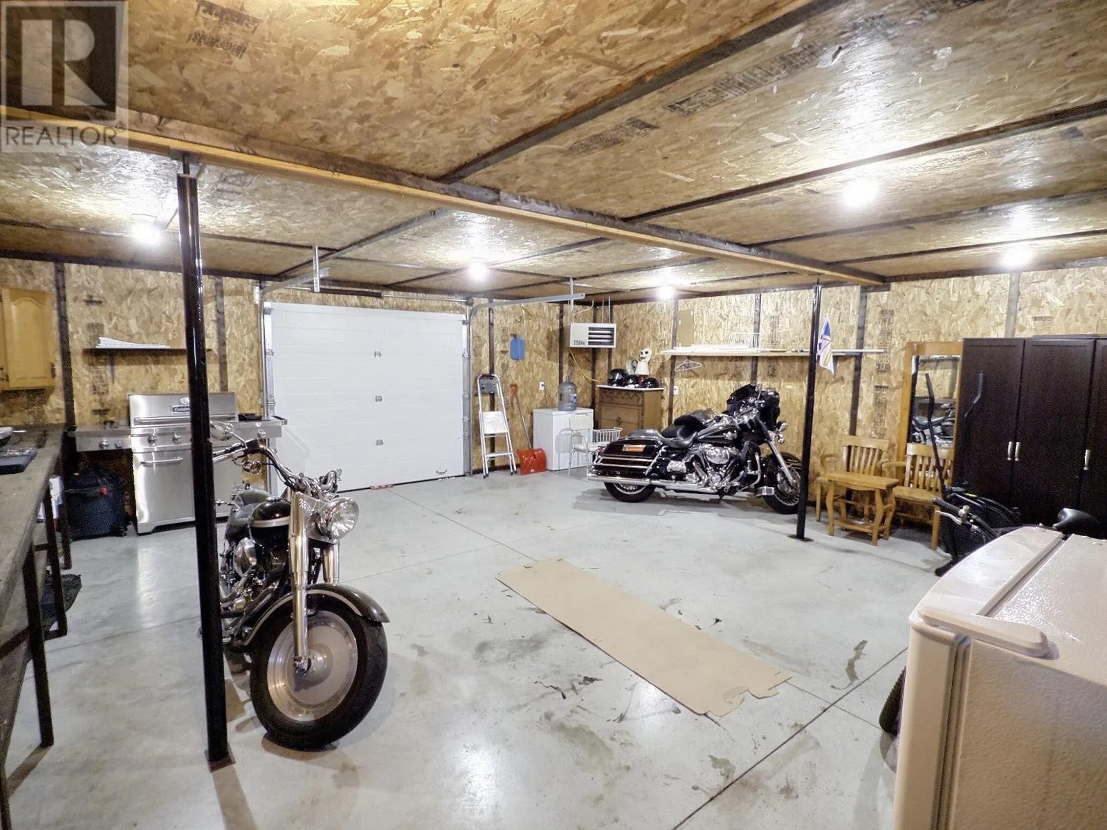 Visit REALTOR® website for additional information. This well-maintained six-year-old home offers comfort, functionality, and versatile space both inside and out. Featuring two bedrooms and one full bathroom, the home is thoughtfully designed with wide doorways for easy access and convenient one-level living. Heating is efficient and flexible with a mini split system, electric fan heaters throughout, and an air exchange system (Venmar) to ensure year-round comfort. A dedicated laundry room with washer and dryer adds everyday convenience. Outside, you'll appreciate the paved driveway and the private backyard complete with a fire pit - perfect for relaxing evenings or entertaining family and friends. A standout feature of this property is the impressive two-storey, 675 sq. ft. garage. Both the upper and lower levels include bathroom facilities, with a shower on one level. The upper floor is beautifully finished in pine, creating a warm and inviting atmosphere, and features an electric fireplace and electric fan heating. This space would make an ideal studio apartment, private guest suite, home office, or a spacious recreation room. The lower level offers propane heating and a generous work area along one wall, providing plenty of room for hobbies, storage, or workshop use. This property offers a unique combination of comfortable living space and exceptional bonus space, ideal for a variety of lifestyles. (id:27476)