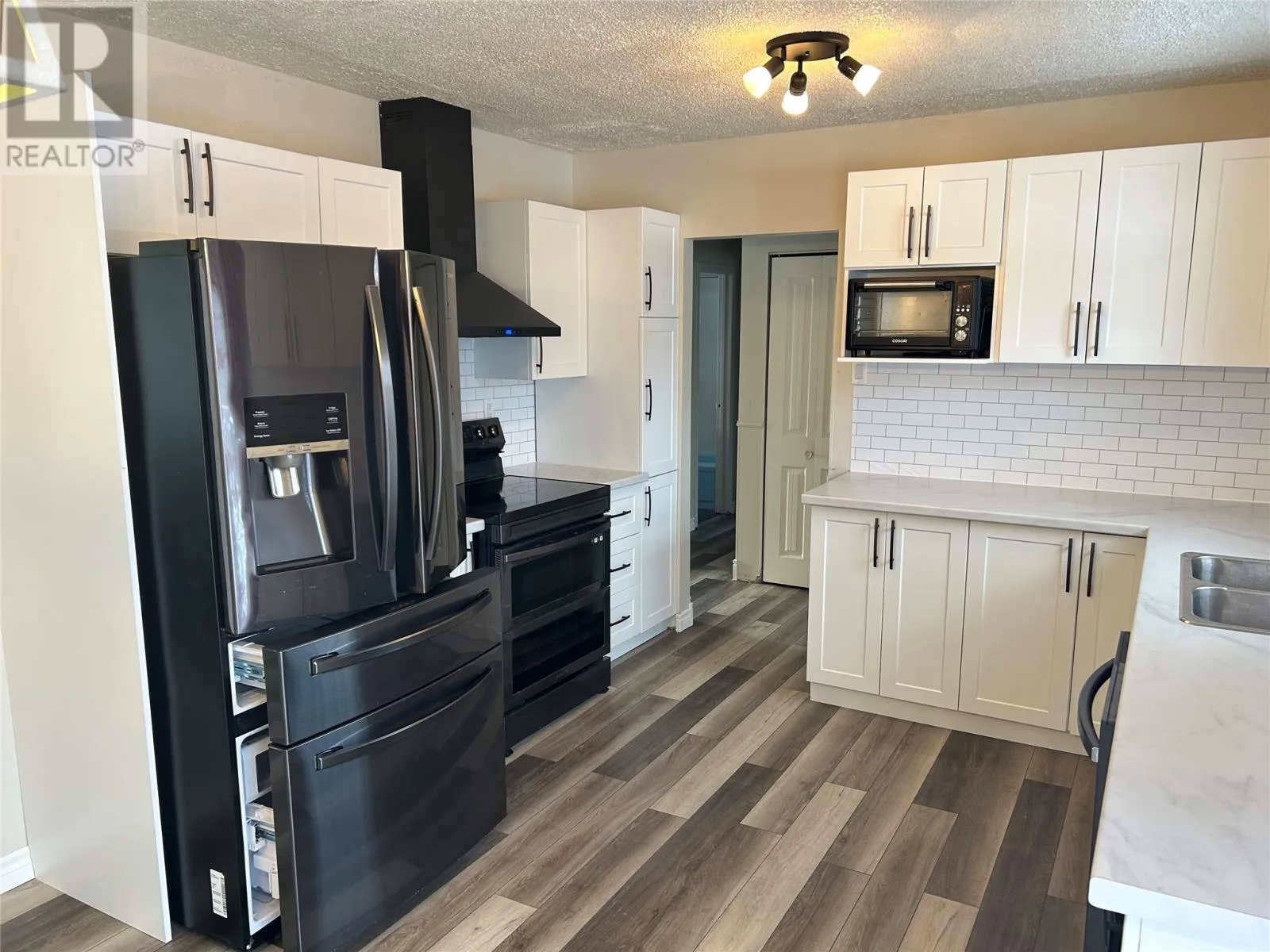 395 Main Street, Birchy Bay New listing at 395 Main St., Birchy Bay. This lovely bungalow was 3 bedrooms, now is 2 bedrooms but can be changed back. Huge master bedroom. Brand new kitchen, new appliances. Brand new flooring. New paint throughout the home. New wall paper in some bedrooms. New king size bedroom furniture. New light fixtures. Two brand new barn doors in the 2 bedrooms. Glass coffee table and two side tables. Brand new jacuzzi tub stored in the basement (lights & Bluetooth included). Gazebo. New washer and dryer in the basement. Wired fenced backyard (ideal for small children and/or pets). Partial ocean view. Backyard facing the forest. A minutes walking distance to the beach/post office. A couple minutes drive to the convenience store & much, much more. $189,000. Detached garage/shed. (id:27476)