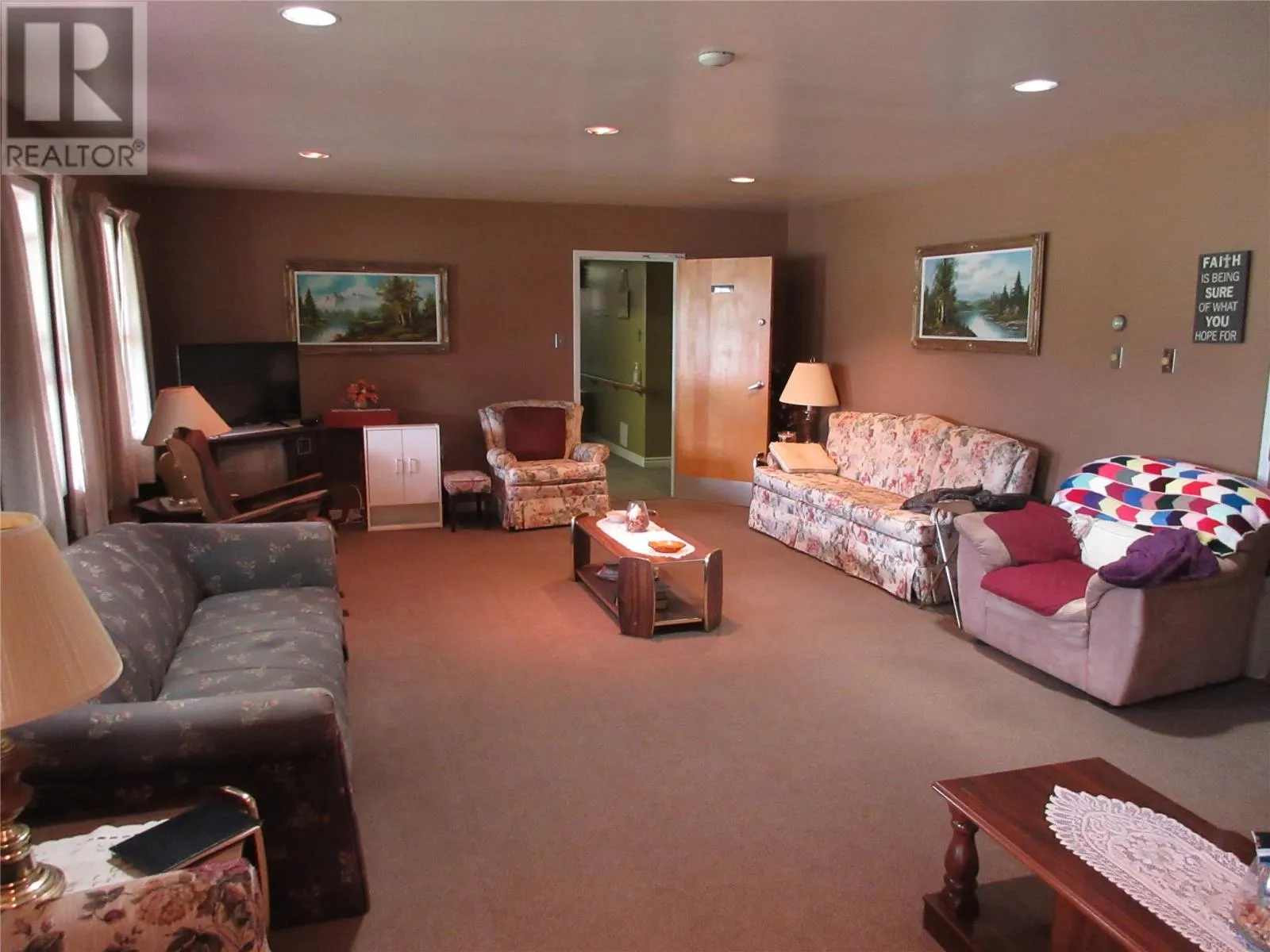 Welcome to Fallsview Apartments located in the scenic Town of Bishop's Falls ! This 12 unit all on one level apartment building located adjacent to the beautiful Fallsview Municipal Park makes this property very desirable to potential tenants. Main level of building features four 2 bedroom and eight 1 bedroom apartments , common lounge area at front of building with kitchenette that could easily be renovated into a 13th 2 bedroom unit for additional rental income. Also on main level you have a main common hallway, common washroom, shared laundry room for tenants , electrical room, janitors closet, storage room and mail is delivered directly to residents living in building through mailboxs . Exterior of building is fully landscaped, paved multi vehicle parking lot , detached garage, mostly fenced, building is finished with vinyl siding, vinyl windows and asphalt shingles. Some newer renovations include interior plumbing renos, new carpet installed throughout most of building, all new vinyl windows installed and new asphalt shingles. This property is situated on a large lot with 3.395 acres of land that has great potential for future development of new multi unit apartment buildings, so not only is this property a great investment the way it is right now it could also be a great investment property on a much larger scale! All units are on separate meters with tenants paying their own utilities. (id:27476)