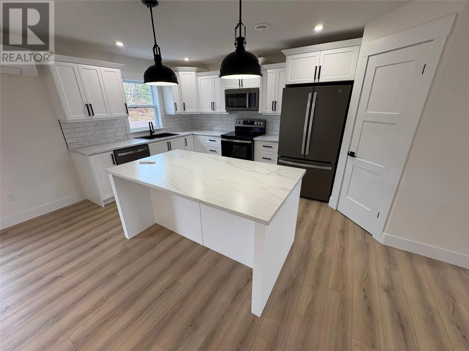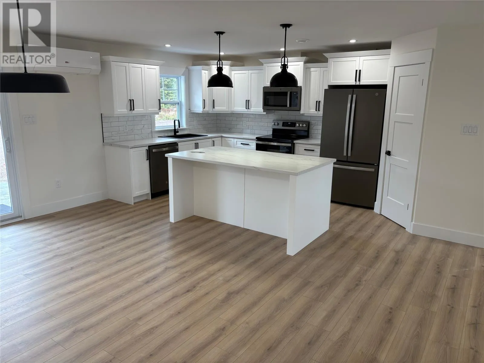 Have you been longing for a home with no stairs? Well, this stunning one level home is waiting for its new owners! Located in a desirable subdivision in Bishop's Falls which is nestled in the heart of Central Newfoundland, an outdoor persons dream area for hunting, salmon fishing, snowmobiling and ATVing. The interior of the home has a bright, spacious foyer, open concept kitchen (kitchen appliances included), pantry, dining and living room combo area for entertaining family and friends, 3 inviting bedrooms with primary bedroom possessing a walk-in closet, and ensuite with ceramic walk-in shower. Both ensuite and main bath have heated ceramic floors and remainder of the house has durable 12 mil laminate water resistant flooring. The home also has a laundry room (washer & dryer included) and large mudroom which gives plenty of storage. This property is heated with electric baseboard heaters and two mini splits for heating and cooling. The property also has front and rear stamped concrete decks and backs onto a beautiful greenbelt. Sale to include Atlantic Home Warranty and sale price includes HST with rebate going to the vendor. (id:27476)