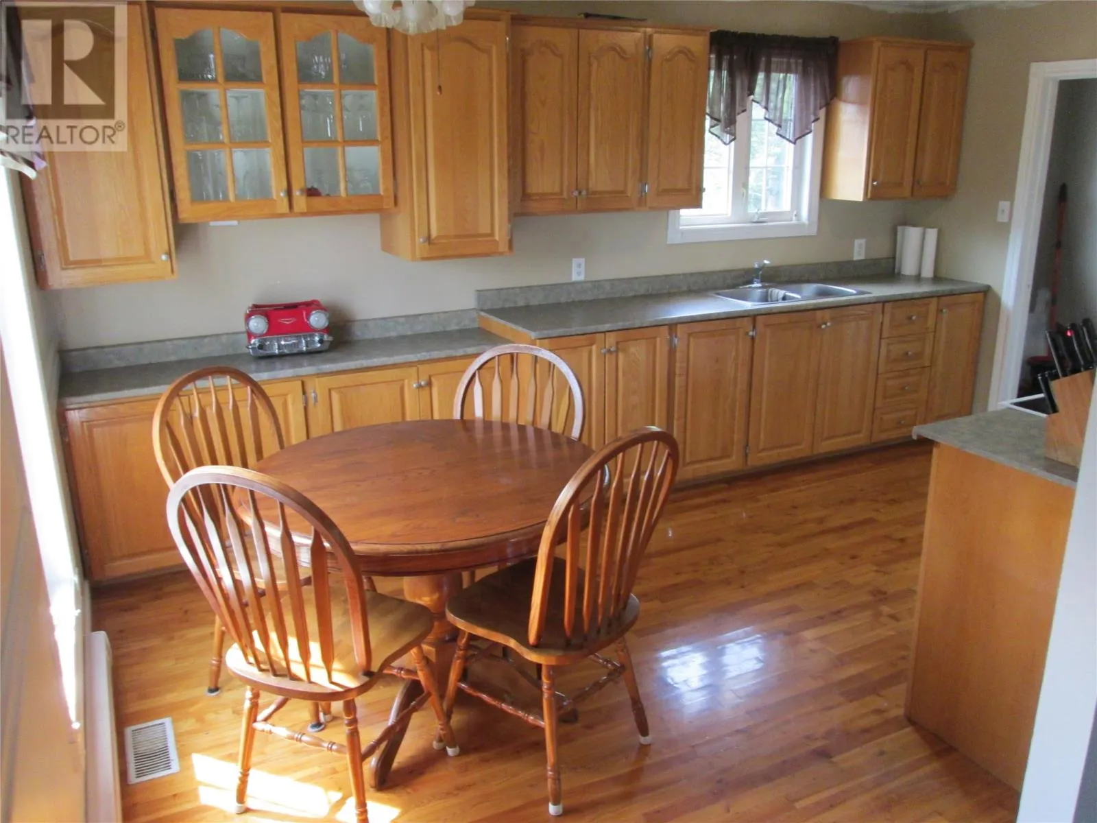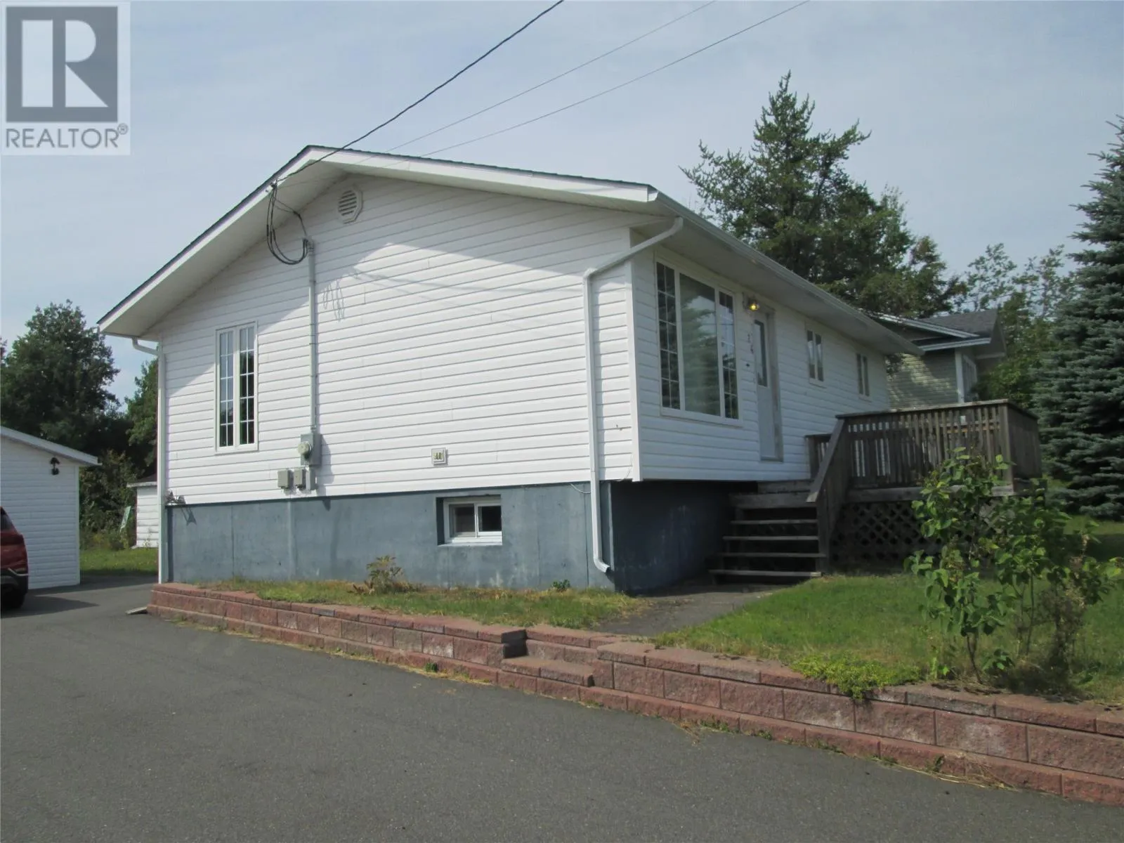 Located on Newtown Road in the Town of Bishop's Falls is this 2 bedroom bungalow situated on a large lot. Main level of home features a eat-in-kitchen with hardwood cabinets, living room, main bath, 2 bedrooms and storage. Basement of home is partially developed with a bedroom, rec room, bath, furnace and utility room. Exterior of home is complete with vinyl windows and siding, fully paved driveway and 24x20 detached garage . (id:27476)