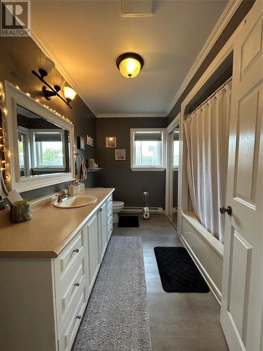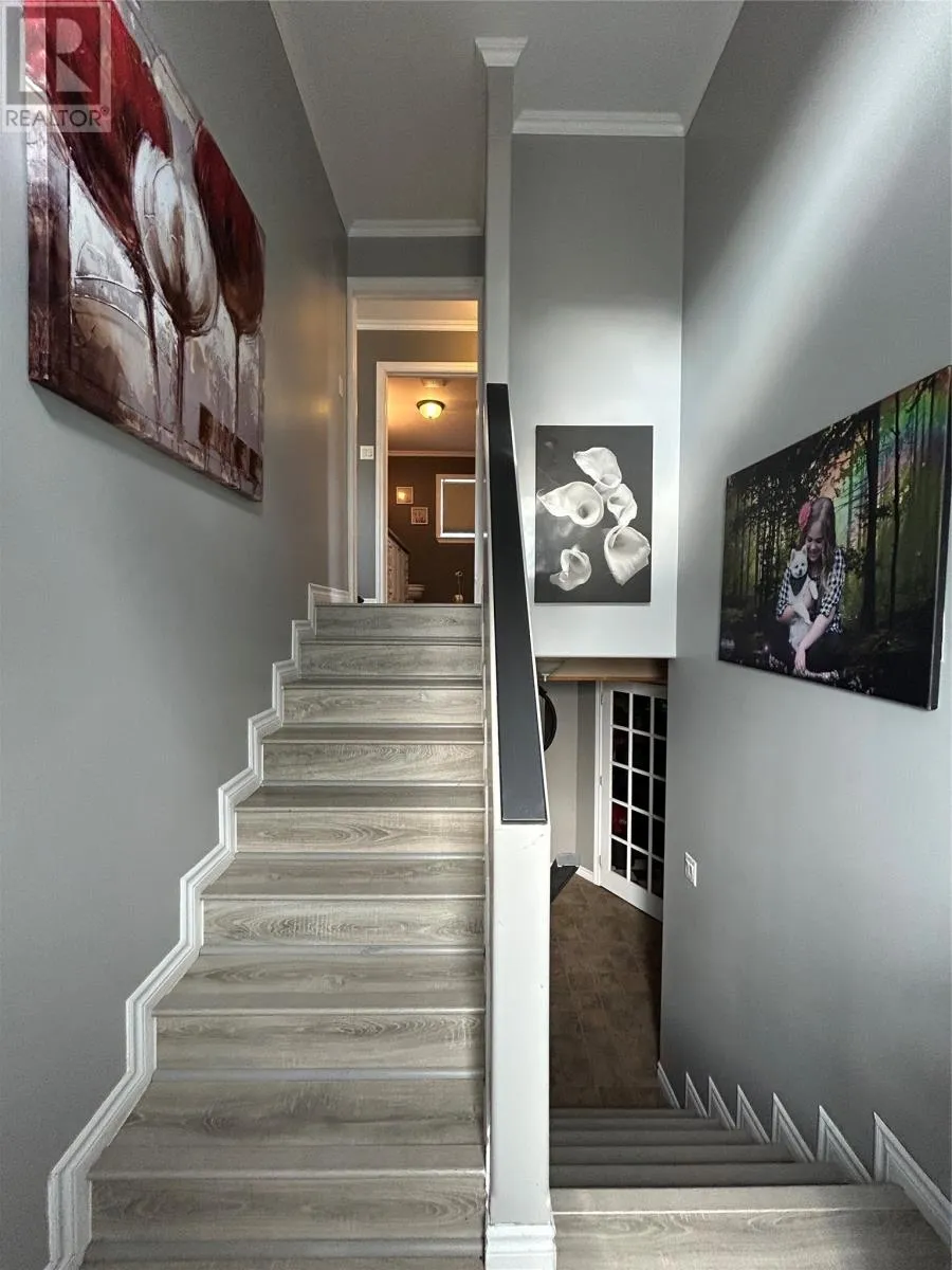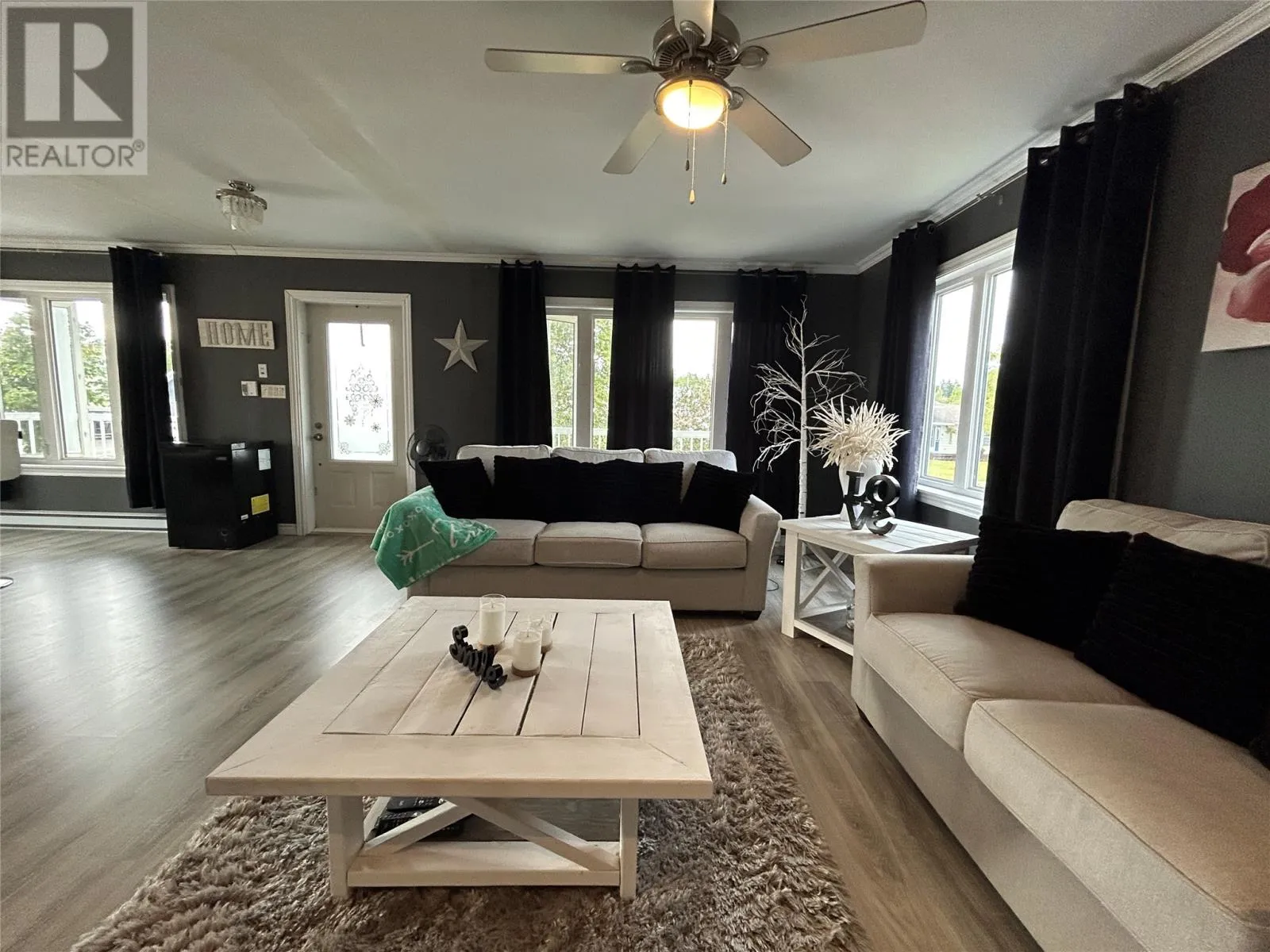Located in a desired area of town, is this beautiful 3 bedroom side split home located in the town of Bishop's Falls. Main area features a foyer, open concept kitchen/dining and living area with birch cabinets, island to match, all new flooring, sink, countertop and backsplash, all appliances just 6 years old, main bathroom with large sliding door linen closet. The Primary bedroom features a patio door to a private 12x6 balcony, and tons of closet space. Bright a spacious 2nd bedroom completes the main floor. Basement features another full bathroom, laundry room, large family/games room with bar , third bedroom , also a bonus room which could use for a home based business or office. Home has an air/heat recovery system, new pressure treated deck on front with aluminum railing crown moldings throughout detached 20x16 wired garage, fully fenced at rear, landscaped, and double paved driveway. Don't miss out on this beautiful family home. This listing is subject to a Sellers Direction Re: Offers, with no offers being conveyed until prior to Saturday September 13, 2025 at 4pm. Please leave all offers open for acceptance until 9pm on Saturday September 13, 2025. (id:27476)