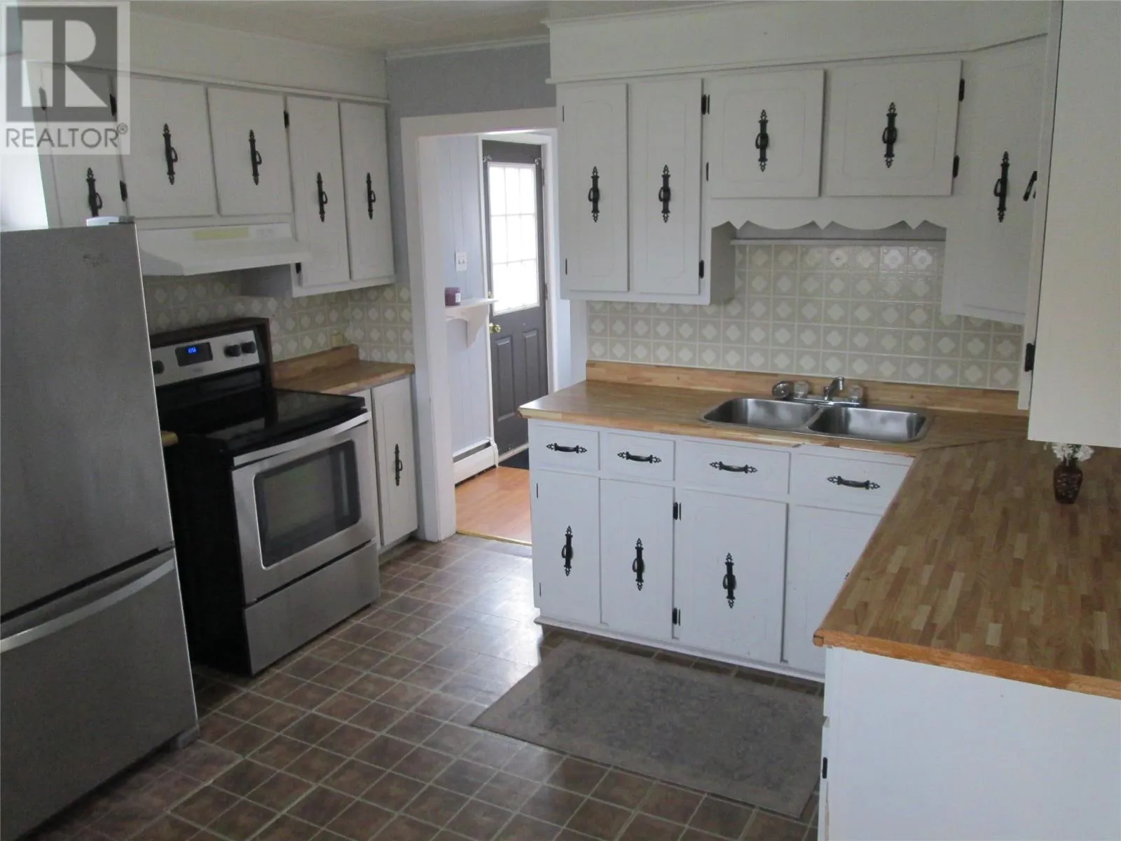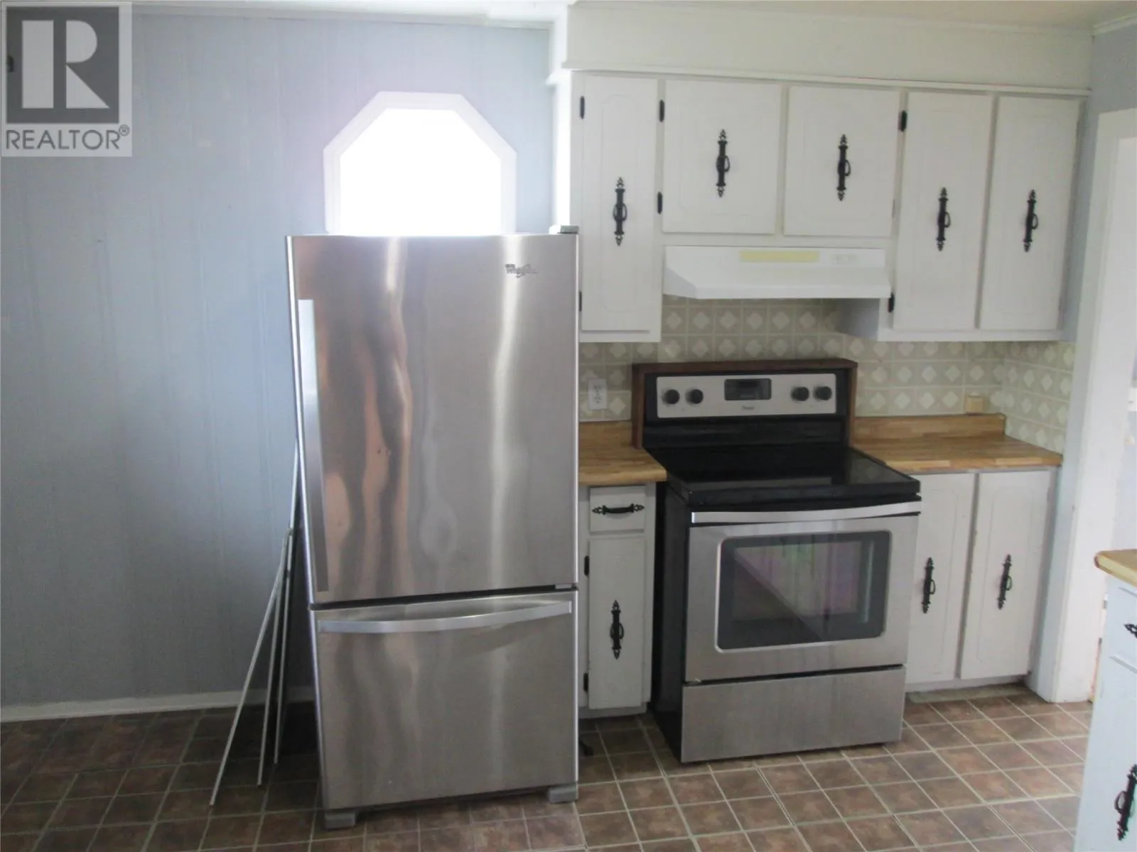 Located on the Exploits River in the Town of Bishop's Falls is this 2 bedroom bungalow. Itâs a must see for a small family, anyone downsizing or it can make a beautiful Airbnb or rental property with its prime location! The Main floor of home features kitchen, living room, primary bedroom and bathroom. Modern stainless steal appliances, fridge and stove included in the sale! The basement includes 2nd bedroom, and storage room. Heat sources include hot water radiation oil furnace and as well as a woodstove. No washer and dryer included but the hookup is in the basement. Exterior of home consists of vinyl windows and siding, and two detached sheds. The electrical services is 125 AMP with circuit breaker panel and has a newly installed mini split heat pump which makes heating this home very efficient and an added bonus of air conditioning in the summer . The home also features pex plumbing throughout! (id:27476)