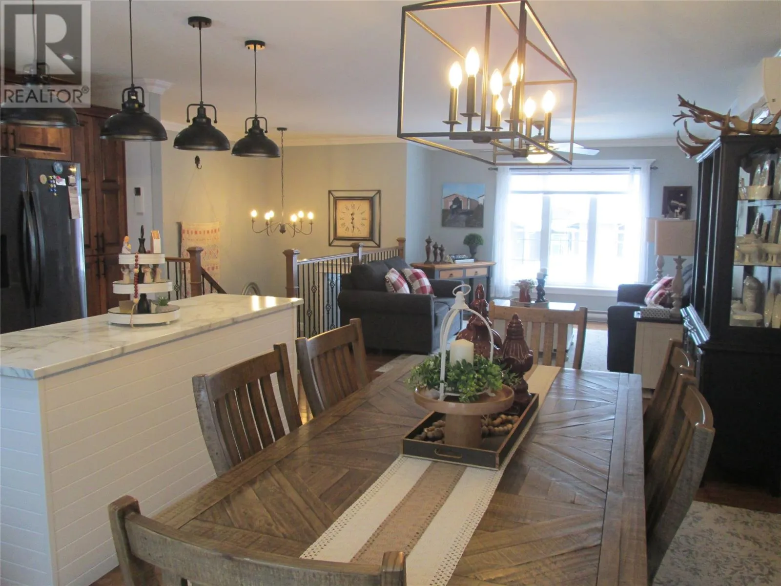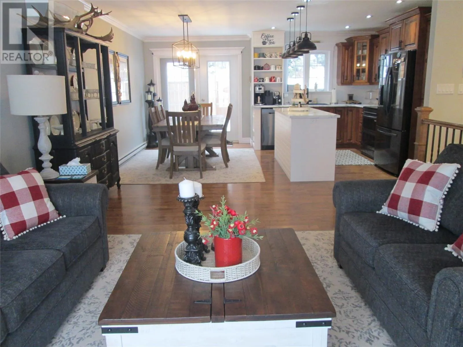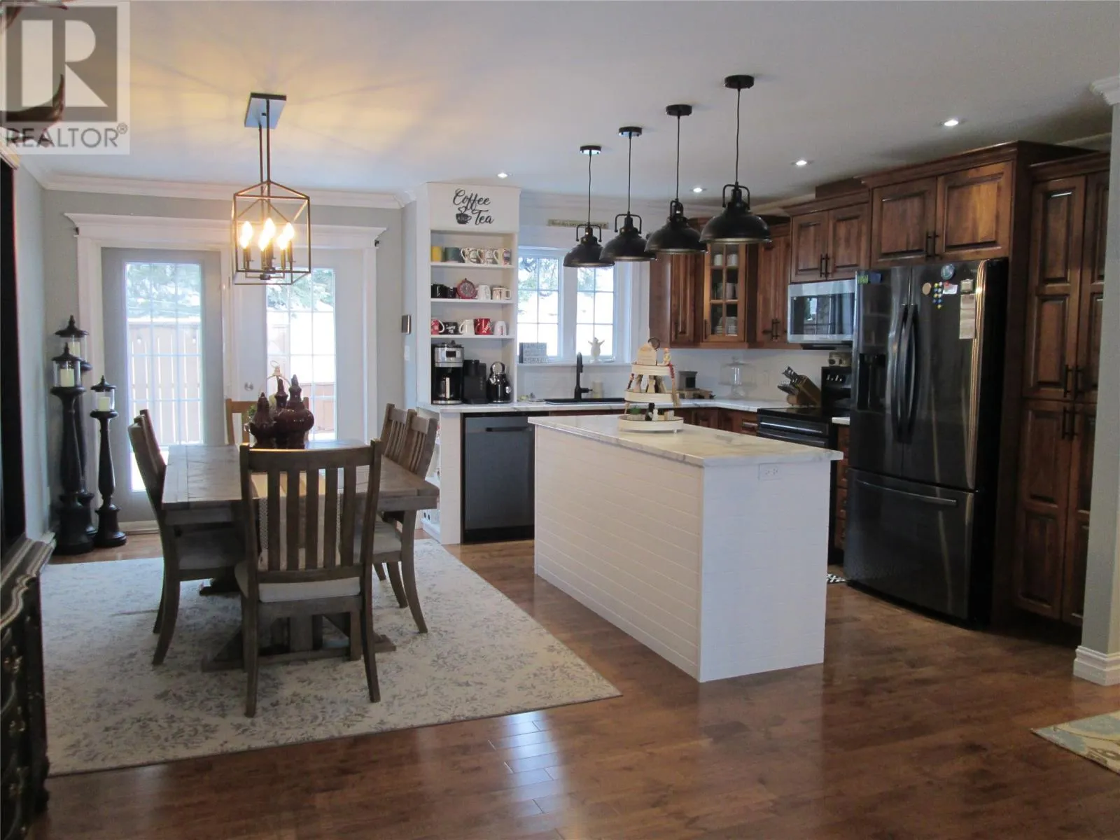 A MUST SEE ! This well maintained 3 + 1 bedroom home located on Kings Road in the scenic Town Bishop's Falls is the perfect home to fit all your needs ! Situated on a large landscaped lot with greenbelt for extra privacy, this home shows pride in ownership through-out .Main floor features an open concept kitchen, dining / living room combination that's great for entertaining family and friends. The kitchen boasts plenty of Birch cabinetry with a large island. Dining room contains patio doors that lead out onto a large deck. This home contains a 3pc main bathroom & 3 bedrooms with the master having a 3pc ensuite with shower. Basement features family room, 3pc bathroom, separate laundry, bedroom that has a bonus room off of it and a newly renovated eat- in kitchen with outside entrance that could easily be renovated into a one bedroom apartment or in-law suite with all appliances. This stylish home is heated by electric baseboard heat with an added bonus of a mini split heat pump on main level for lower heating costs and air conditioning for hot summer days . Home has hardwood & crown moldings throughout main floor with exterior of home completed with vinyl windows, doors, siding fully paved driveway, greenhouse, storage shed and a newly built 20x24 detached garage . No conveyance of any written signed offers prior to February 17th,2026 at 12:00PM and open for acceptance until February 17th,2026 at 5:00PM as per Sellers Direction (id:27476)