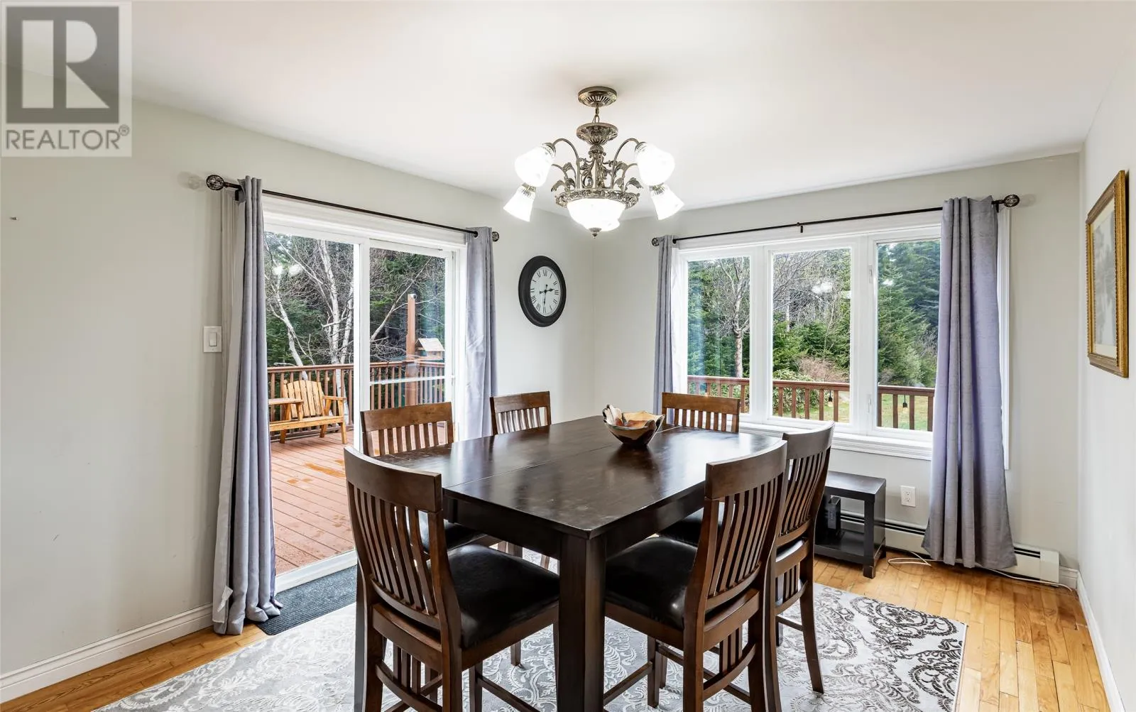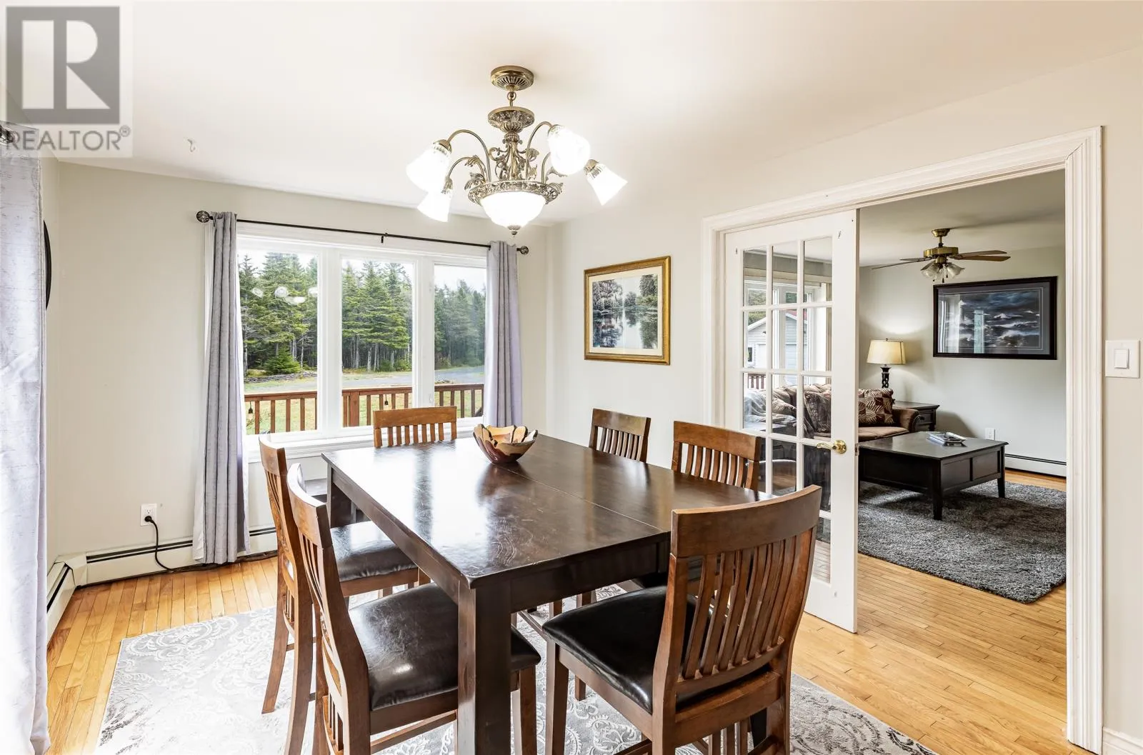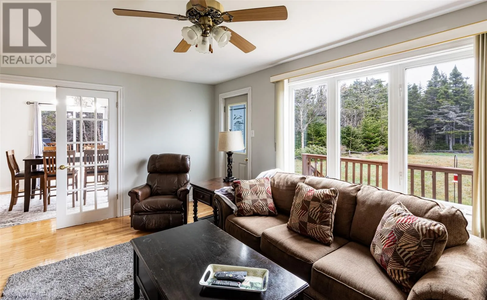 Pass Crescent Collegiate and house is located across street about 5 house past Rideouts Garage. Go in driveway and keep right Charming Country Retreat on the Baccalieu Coastal Drive Less Than Hour to St. Johnâs & Minutes to The Famous Dildo Brewery! Welcome to your perfect home away from home! Nestled in a serene park-like setting, this beautiful home offers the ideal blend of modern comfort and country charm. Whether youâre looking for a peaceful getaway, a full-time residence, or a turnkey Airbnb opportunity, this property checks all the boxes. Almost completely redone in recent years, this home boasts a new roof, updated plumbing, fresh flooring, modern bathrooms, and a stylish new paint job throughout. The main floor features a spacious layout with a bright and functional kitchen, dining area and living room, plus a convenient half-bath and laundry area. Upstairs, youâll find a generous primary bedroom, a comfortable guest room, and a four-piece bathroom complete with a walk-in Jet Tub. Enjoy your morning coffee or evening wine on the Juliet balcony that overlooks the peaceful surroundings. The basement offers excellent additional living space with a large rec room, games room, and a versatile office or den. Step outside to a wraparound deck and patio, ideal for relaxing or entertaining. Thereâs also a 16â x 20â detached garageâperfect for storing tools, toys, or outdoor gearâand ample parking for up to 10 vehicles and a duck pond. This home also is equipped with a Generac Generator which kicks in within seconds of a power outage that is propane fueled and can keep you powered for weeks. The laundry, stove and BBQ are also propane to save on your bills. Donât miss this unique opportunity to own a beautifully updated home in a picturesque location. A must-see property with incredible potential! (id:27476)