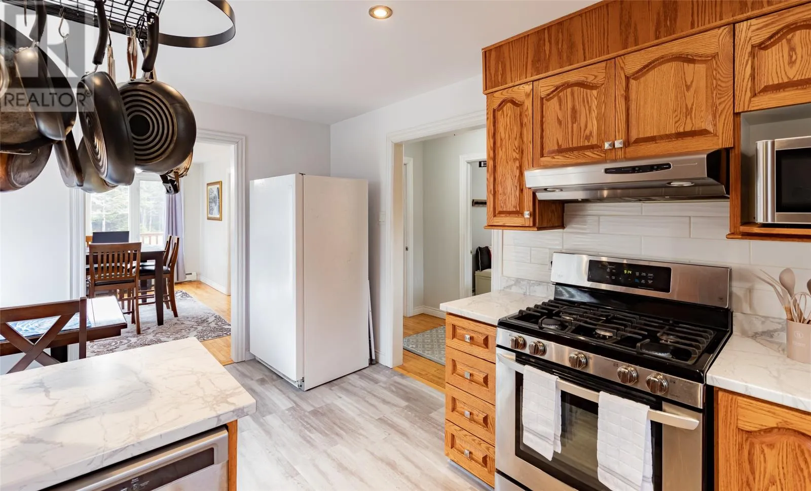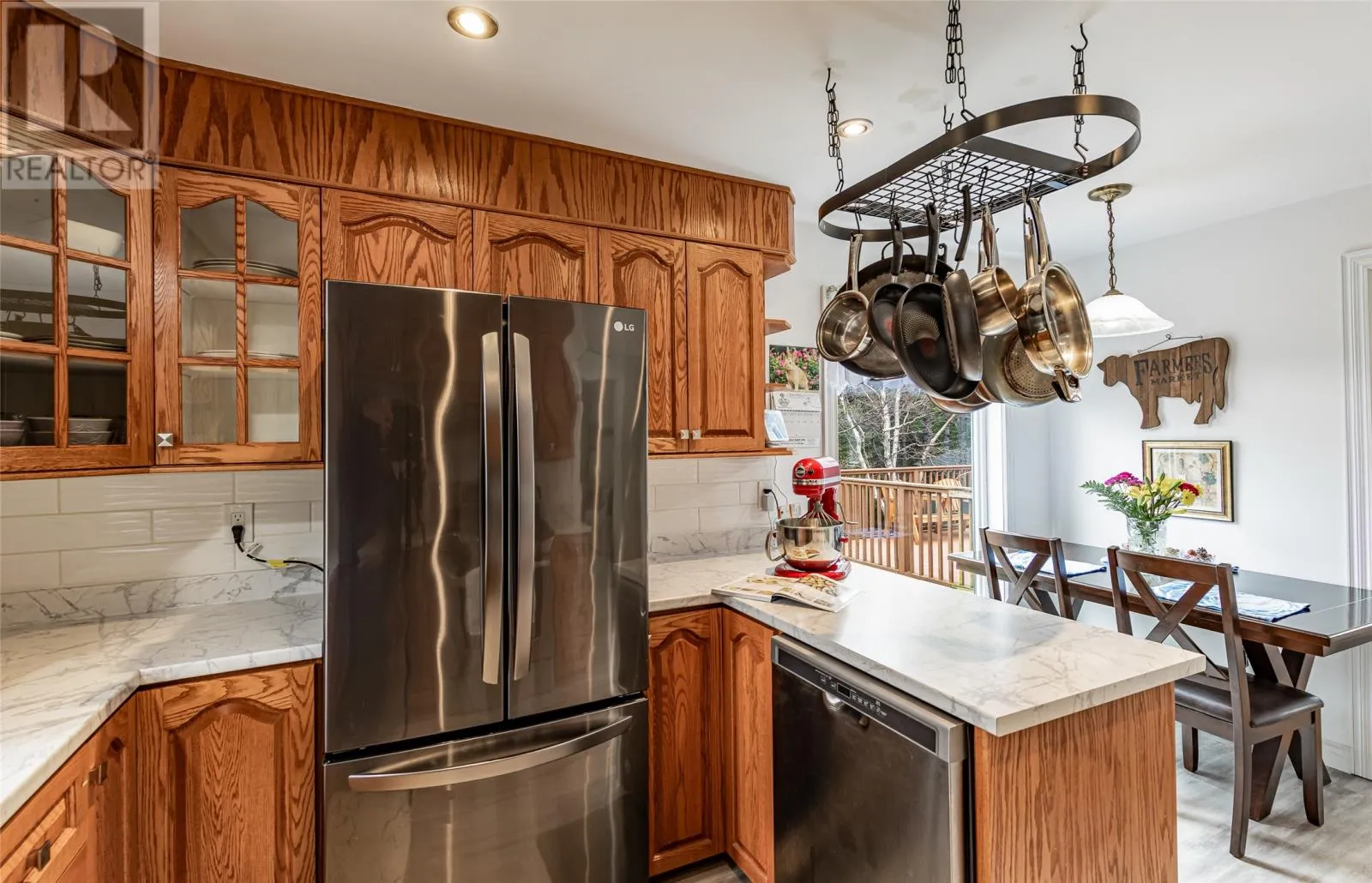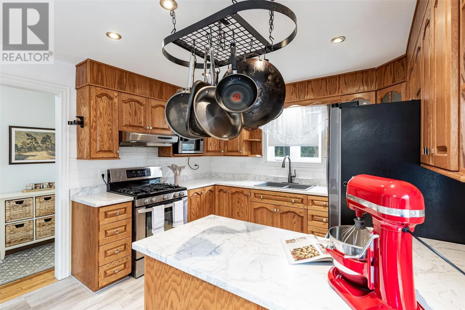 Pass Crescent Collegiate and house is located across street about 5 house past Rideouts Garage. Go in driveway and keep right Charming Country Retreat on the Baccalieu Coastal Drive Less Than Hour to St. Johnâs & Minutes to The Famous Dildo Brewery! Welcome to your perfect home away from home! Nestled in a serene park-like setting, this beautiful home offers the ideal blend of modern comfort and country charm. Whether youâre looking for a peaceful getaway, a full-time residence, or a turnkey Airbnb opportunity, this property checks all the boxes. Almost completely redone in recent years, this home boasts a new roof, updated plumbing, fresh flooring, modern bathrooms, and a stylish new paint job throughout. The main floor features a spacious layout with a bright and functional kitchen, dining area and living room, plus a convenient half-bath and laundry area. Upstairs, youâll find a generous primary bedroom, a comfortable guest room, and a four-piece bathroom complete with a walk-in Jet Tub. Enjoy your morning coffee or evening wine on the Juliet balcony that overlooks the peaceful surroundings. The basement offers excellent additional living space with a large rec room, games room, and a versatile office or den. Step outside to a wraparound deck and patio, ideal for relaxing or entertaining. Thereâs also a 16â x 20â detached garageâperfect for storing tools, toys, or outdoor gearâand ample parking for up to 10 vehicles and a duck pond. This home also is equipped with a Generac Generator which kicks in within seconds of a power outage that is propane fueled and can keep you powered for weeks. The laundry, stove and BBQ are also propane to save on your bills. Donât miss this unique opportunity to own a beautifully updated home in a picturesque location. A must-see property with incredible potential! (id:27476)