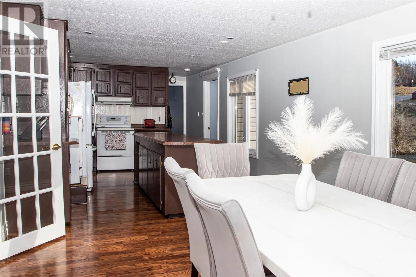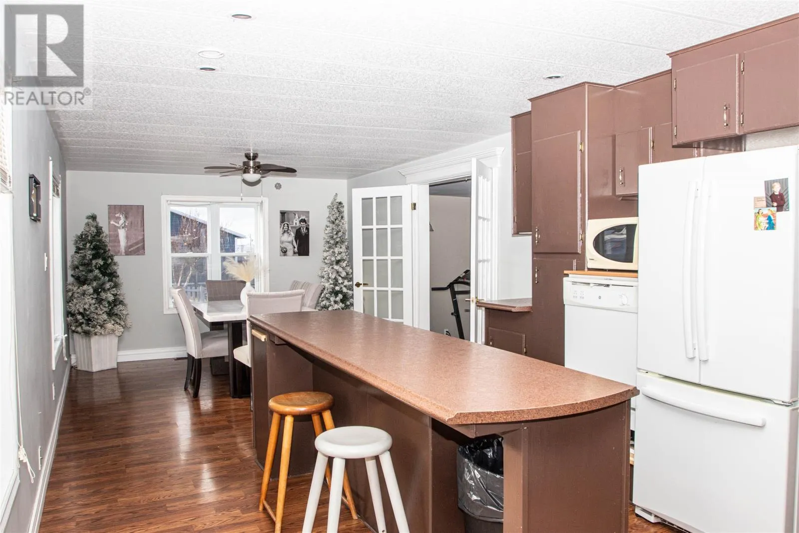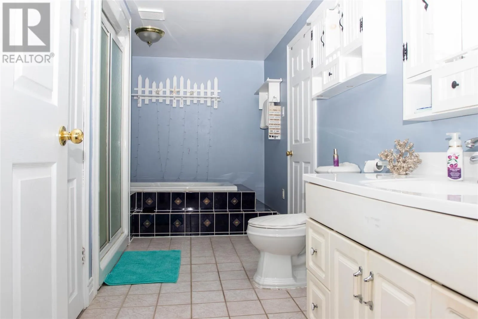 Are you looking for a home with everything on one level and lots of open concept space? This may be the home for you! Situated on just over half an acre lot in historic Bonavista with a single car garage on the lower level and a 20 x 12 shed to take care of all your storage needs. Enter the home through the front door into a large porch with double closets which leads into a very large kitchen with a 10 ft eat-at island and plenty of space for a large table or dining set. Just Two steps down into a spacious living room with French doors, a propane fireplace and patio doors leading out to the 43 ft deck. Primary bedroom and ensuite are located off the living room and completely separate from the other bedrooms. Off the kitchen through the hallway you will find the other Two bedrooms and large family bathroom with jetted tub and stand alone shower. There is also, a large bonus room/3 season sunroom on the main level with double patio doors opening unto the deck, and access to the garage, the perfect place to sit and watch the sun come up over the Town of Bonavista. The partial basement is developed with rec room/family room, wet bar and 1/2 bath. This property has a 200 amp electric panel and a generator. You have your choice of heat in this home as there is electric heat, oil furnace/wood furnace with newer prefab chimney and is WETT certified. With partial ocean views, you can sit and watch the sunset from your kitchen. Whether you are looking for a year round family home or a summer retreat, this may the property for you. (id:27476)