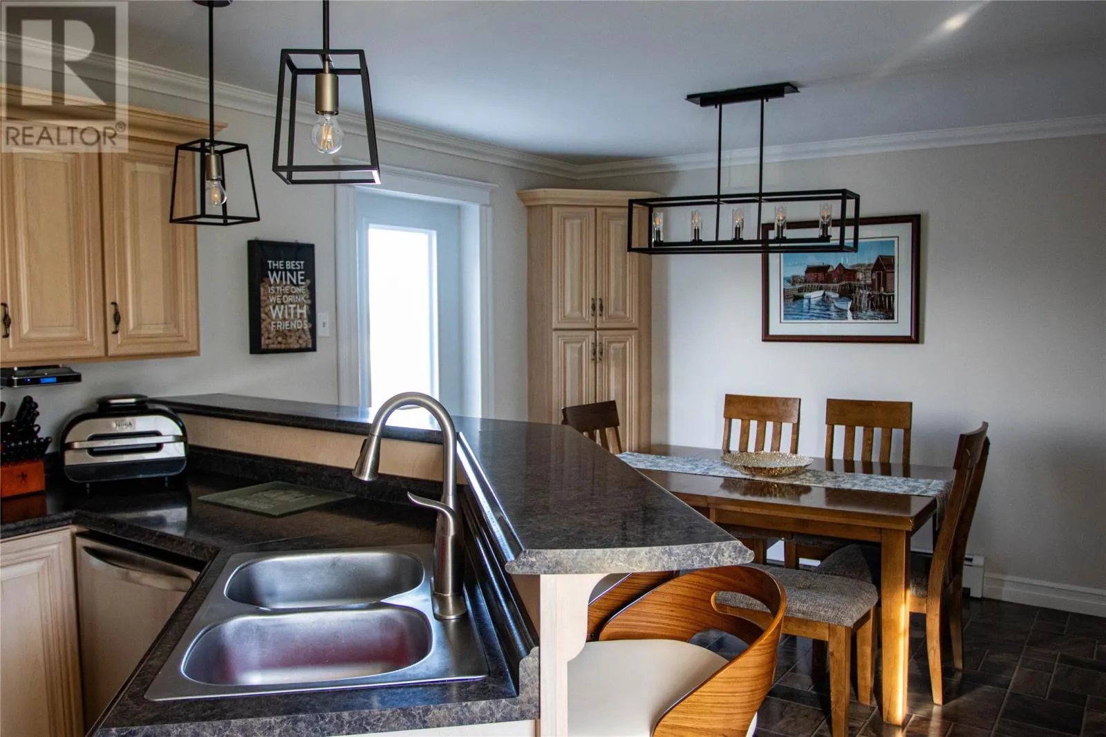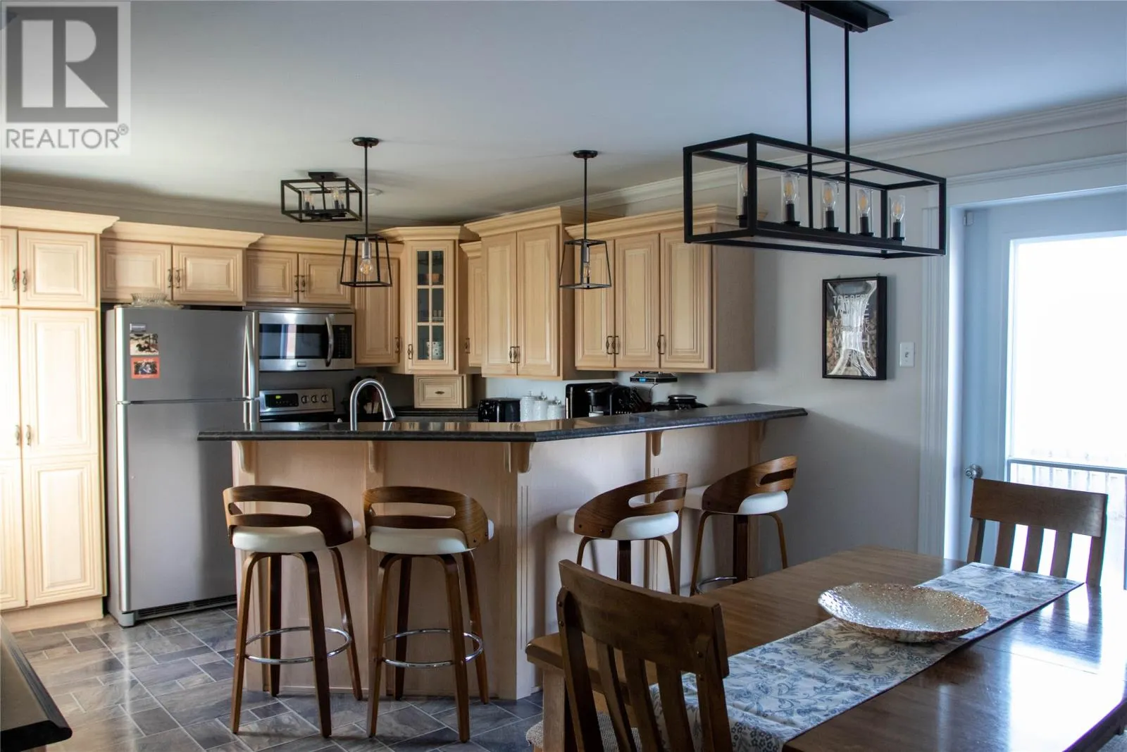 Completely Renovated Bungalow with Stunning Ocean and Town Views. Welcome to this beautifully renovated bungalow, perfectly positioned on a spacious lot with panoramic views of the ocean and the Town of Bonavista. Every detail of this immaculately kept home has been carefully updated, offering a comfortable and modern living space. The main floor features Three generous bedrooms and a stylish bathroom complete with a relaxing soaker tub and a stand-alone shower. The extra-wide hallway adds a sense of openness and accessibility throughout. The kitchen is a true highlight, boasting an abundance of birch cabinetry, a convenient step-up island, and a large dining area - ideal for family gatherings or entertaining. Also on the main level, you'll find a dream laundry room - thoughtfully designed with the washer and dryer in place, surrounded by loads of cabinetry and work space for added convenience. Downstairs, the wide-open walk-out basement provides lots of storage and possibilities for future development. Step outside to enjoy the fully fenced backyard and a spacious deck where you can take in the breathtaking ocean views and sunsets. The front of the property boasts new landscaping, retaining wall, and large paved driveway, all just Three years old. Adding even more value is the impressive Two-story double garage , built in 2020. It features Two overhead doors, a man door, its own furnace and fiberglass oil tank, and a second-level games room complete with a pool table. The upper level also offers a versatile bonus space with access to the outdoors - perfect space to add a second-story deck to maximize those views. This property truly combines modern comfort and scenic beauty - a rare find in today's market! (id:27476)