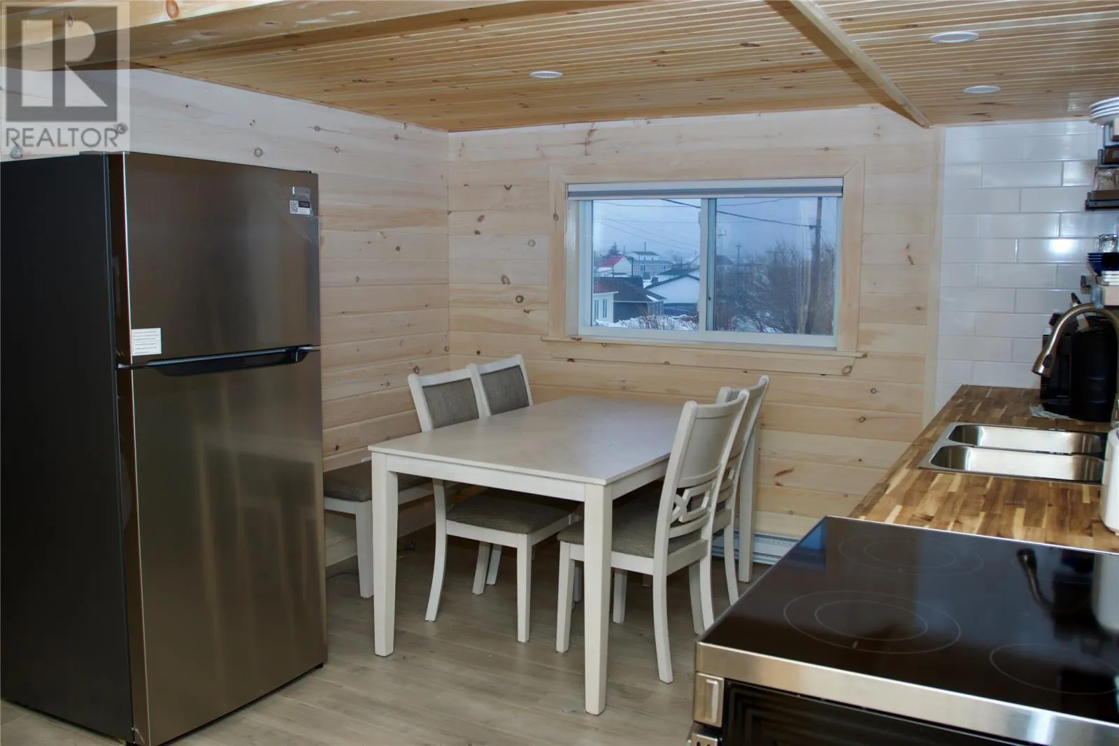 Welcome to the beautifully renovated Two-bedroom, Two-story home located in the heart of historic Bonavista. Completed updated in 2025, this move-in-ready property is ready for new owners. The interior showcases warm pine board walls and ceilings, creating an inviting atmosphere throughout. Laminate flooring runs seamlessly through the home, offering both style and durability. Modern updates make this an ideal turn-key opportunity for a year round residence, vacation home or investment property. The main floor has open concept kitchen with pantry, living room and bathroom. Upstairs you'll find the Two bedrooms a walk-in closet and space for reading/office at the top of the stairs. Step out from your kitchen onto a brand new private 12 x 18 deck, with storage shed for convenient storage. The home comes fully furnished and equipped with all new appliances, allowing you to settle in immediately with nothing left to do. Enjoy beautiful ocean views and picturesque town views, giving you the best of Bonavista's scenic beauty right from your own home. (id:27476)