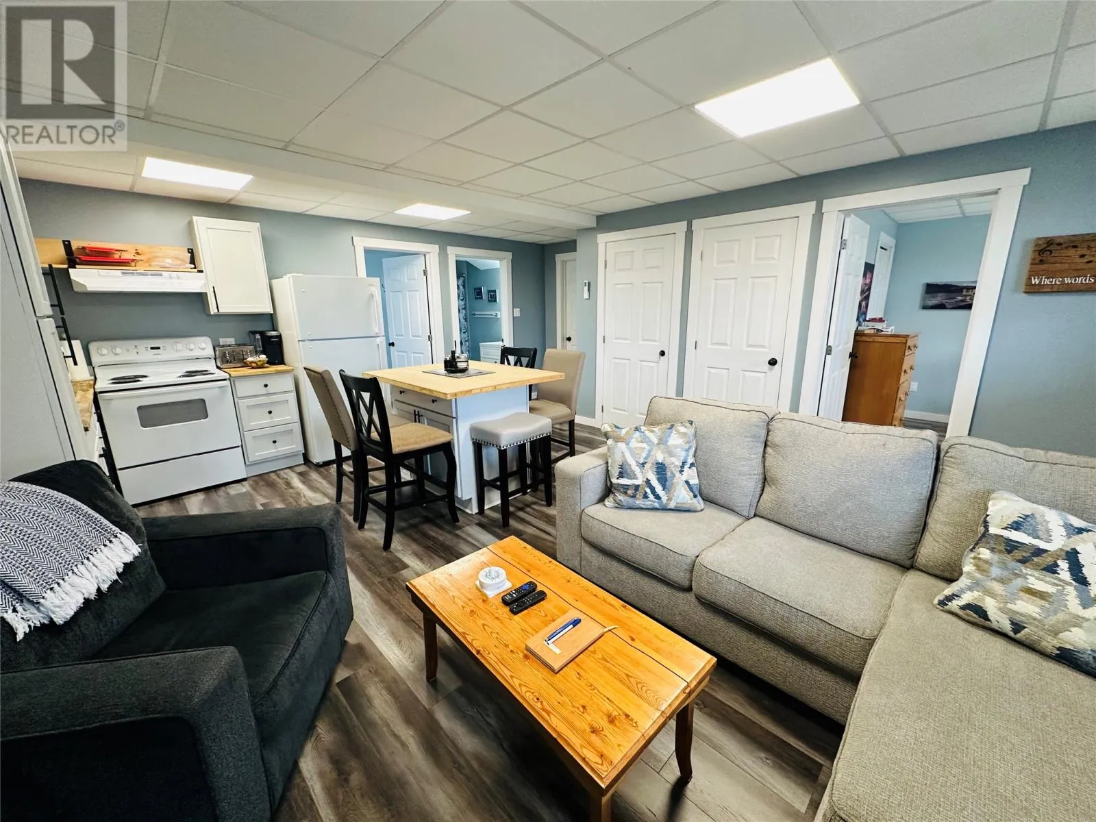 Discover this beautiful three bedroom, two bedroom chalet style home complete with a fully furnished two bedroom, one bathroom in-law suite perfectly located in the heart of Bonne Bay Pond, one of the regions most sought after areas for sledding, boating and year round adventures. Only nine years old, this property blends modern comfort with chalet charm, offering exceptional versatility for families, guests or rental opportunities. The main level features an inviting open concept kitchen and dining area, equipped with new samsung appliances, pantry, ceramic and hardwood flooring throughout. A spacious living room with vaulted ceilings and a new wood burning fireplace. The bright design is enhanced by large windows and a large front deck - perfect for taking in the surrounding scenery. The master bedroom includes patio doors, a private ensuite bath and is complemented by two additional bedrooms and a full main bath. The lower level offers a recently completed (two years ago) fully furnished two bedroom apartment, featuring a full bath, open living area and a heat pump. This space is ideal as a in-law suite, full time rental or a lucrative Airbnb option. A portion of the lower level remains undeveloped - perfect for storage or future expansion. Set on a one acre lot, the property includes a newly constructed 24x36 garage, new artesian well, central A/C, and both wood and electric forced air furnace options., ensuring comfort all throughout the seasons. Don't miss this incredible opportunity - a true sledders' haven with endless potential. Call today to view this great property! (id:27476)