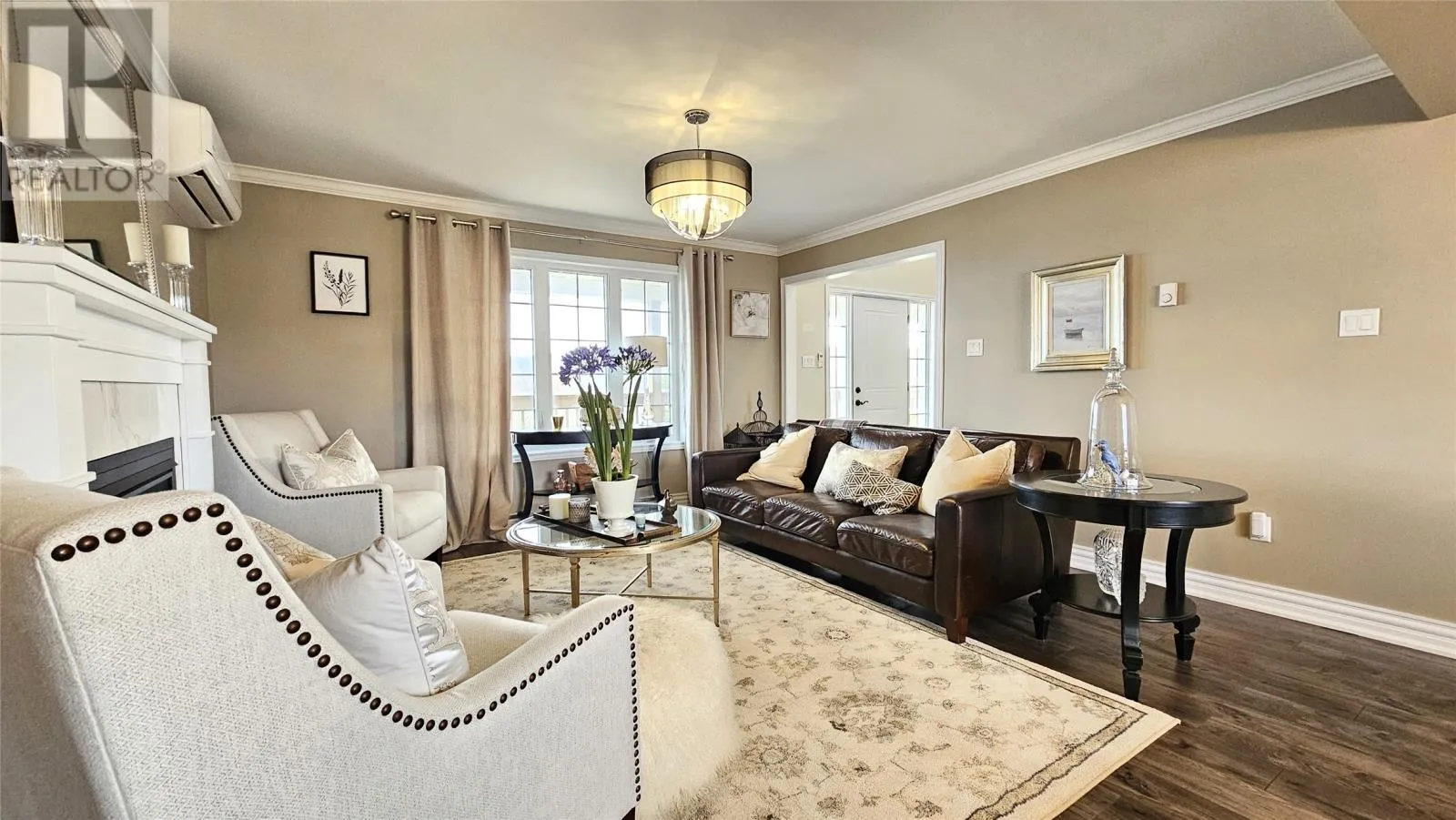 Welcome to the beautiful sea-side community of Branch, St. Mary's Bay and this beautiful, well appointed and MOSTLY FURNISHED executive 2 story home! Let the tranquility and raw beauty of the ocean embrace your senses as you enjoy the many amenities this home has to offer. Thoughtfully constructed to a high standard with all plywood construction, top grade finishes including granite counter tops, lots of kitchen cabinets, attractive laminate flooring, custom trim including wide baseboards and crown moldings thru-out, modern lighting and so much more. The home is efficiently heated and cooled by 3 mini-split heat pumps with various heads keeping both floors very comfortable year-round! The main floor has a formal living room with propane fireplace, spacious dining room, a chef's dream kitchen, family room with door leading to a covered rear deck, main floor laundry as well as a half bath and an office or 5th bedroom. Take the unique, custom hardwood staircase to the spacious second floor which includes a primary bedroom with fabulous ocean view, walk-in closet and ensuite plus 3 other spacious bedrooms, full bathroom and an awesome foyer! Outside there is a large detached garage that offers tons of extra storage and is heated and cooled by its own mini-split heat pump and has a large double garage door with opener. The driveway is fully paved and there is a full length covered front veranda. If your looking to relocate, move back to your childhood town or own a little piece of Newfoundland for seasonal use, this is your place! (id:27476)