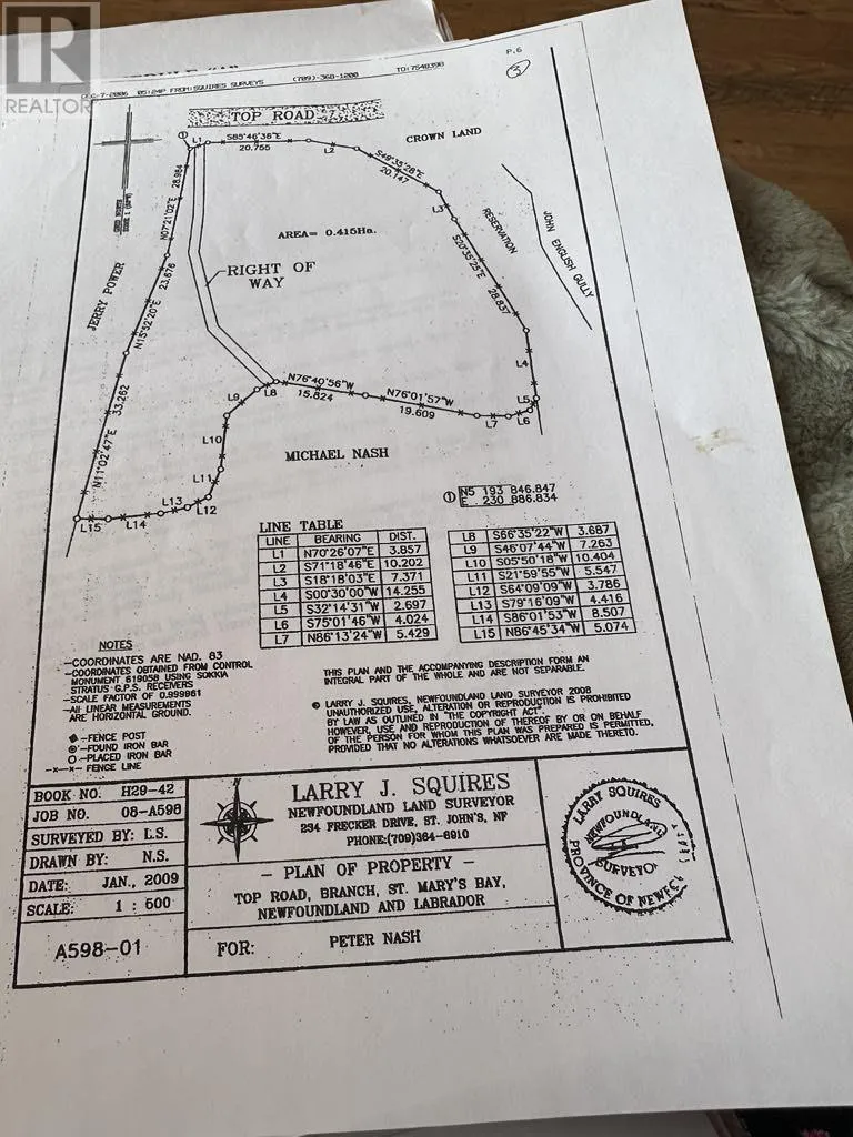 Contact Braedan McGrath (709) 226-0279 for directions Nestled among the green, rolling hills of Branch, this hillside property offers over an acre of opportunity to build your dream retreat or investment property. Located just minutes away from renowned salmon fishing rivers and popular hunting areas, this property is perfect for outdoor enthusiasts seeking tranquility and adventure. With a municipal water hookup conveniently available at the edge of the road, you'll enjoy the ease of development on this prime piece of land. Priced at just $40,000.00, this exceptional property is a steal! Don't miss your chance to own a slice of Branch's natural beauty! (id:27476)