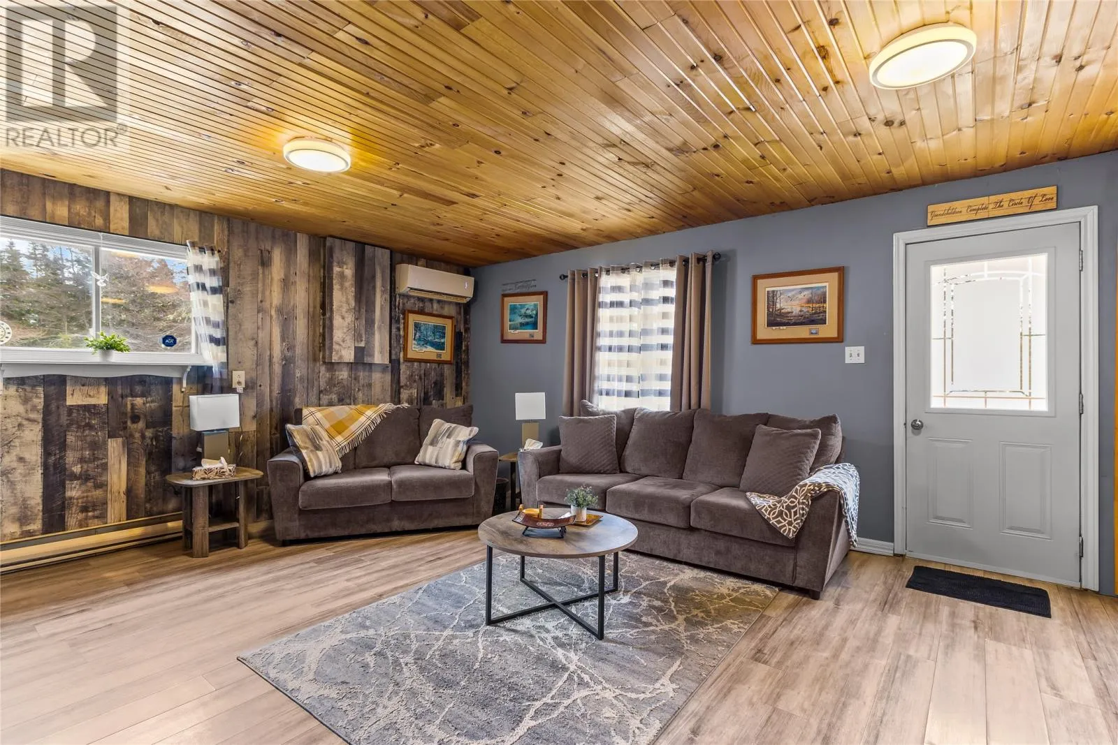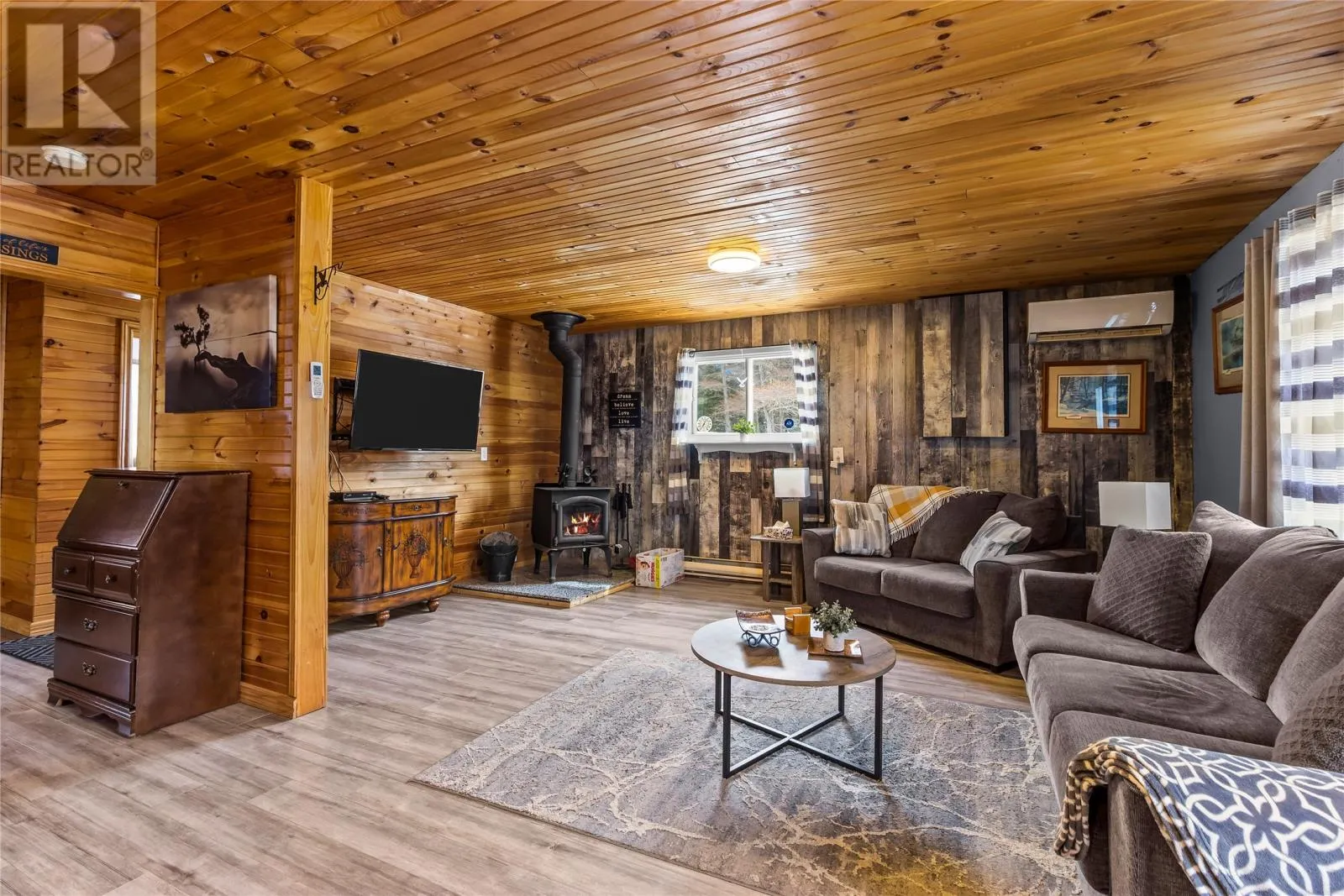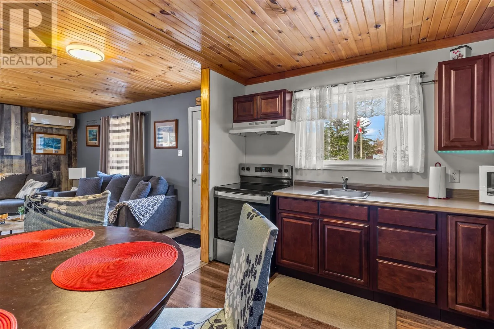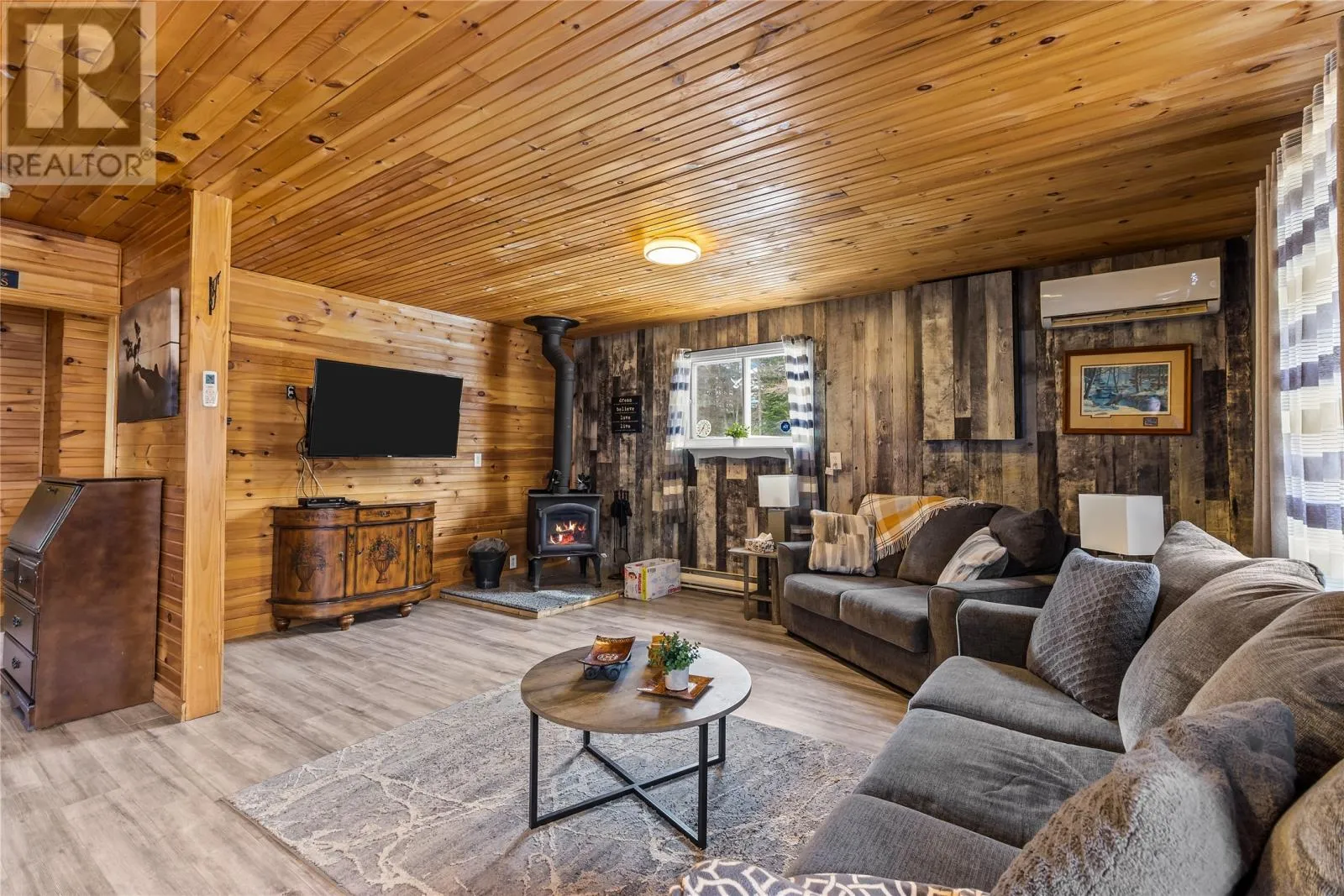 Nestled within the highly desirable Junction Park recreational community in Brigus Junction, this beautifully maintained 906 sq. ft. cabin offers an exceptional opportunity to enjoy a private, nature-filled lifestyle just 40 minutes from St. Johnâs. The interior showcases a warm and inviting design, highlighted by rich wood accents throughout the ceilings and walls, complemented by updated laminate flooring that enhances both comfort and durability. The open-concept living space is centered around a woodstove (2023), creating a cozy focal point, while a mini split heat pump (2023) ensures efficient year-round climate control. The kitchen blends function and style with updated cabinetry finished in a modern tone, abundant natural light, and stainless steel fridge and stove (approximately 18 months old). Two well-proportioned bedrooms (Primary bedroom ceiling will be finished) and a full bathroom featuring a soaker tub complete the interior layout, offering comfort and relaxation after a day outdoors. Set on a private 1-acre lot, the property is designed for outdoor enjoyment in every season. A spacious wraparound deck provides an ideal setting for entertaining or unwinding, while the surrounding landscapes offer a true escape into nature. Immediate access to nearby trails and ponds further enhances the recreational lifestyle this location is known for. A detached garage adds excellent utility and storage for ATVs, snowmobiles, and outdoor equipment. Improvements include a paved driveway (2024), roof (approx. 10 years), PEX plumbing and 125-amp electrical service. With key enhancements already completed including a 600 gallon septic tank placed next to the current 300 gallon that is currently used, this property is truly turnkey and ready for immediate enjoyment. Whether envisioned as a seasonal retreat, weekend getaway, or year-round escape, this property delivers an elevated cabin experience in one of the areaâs most sought-after recreational destinations. (id:27476)
