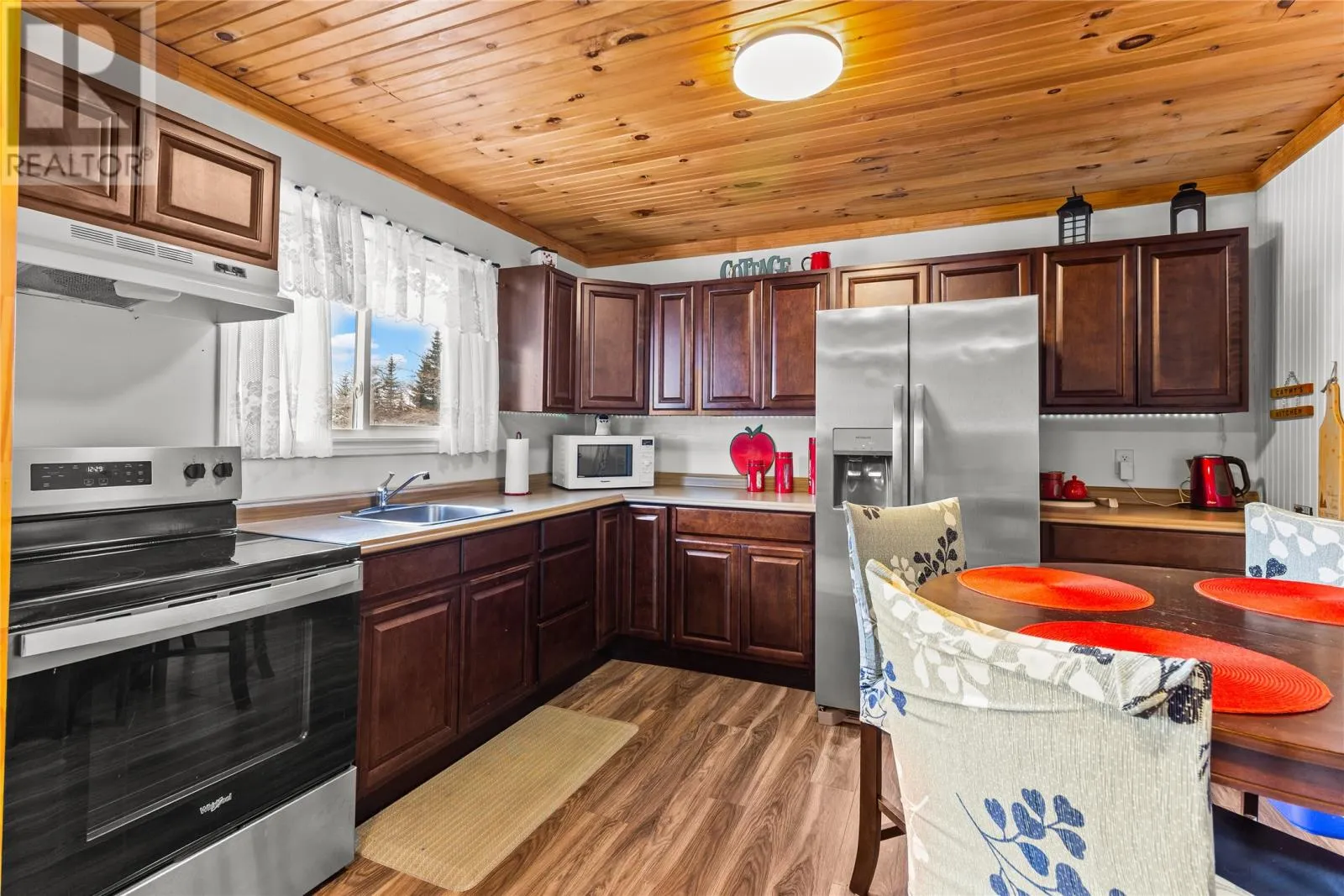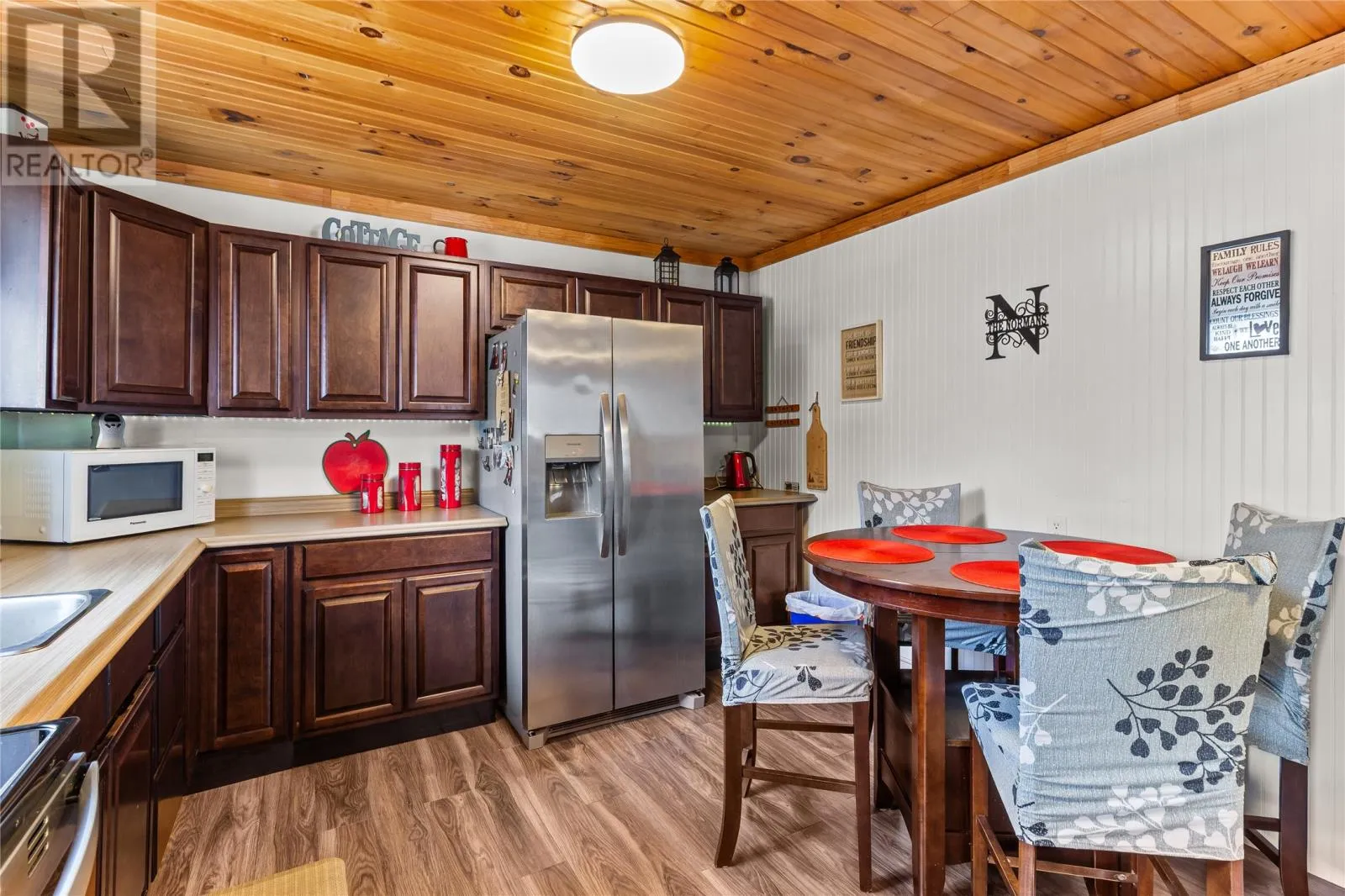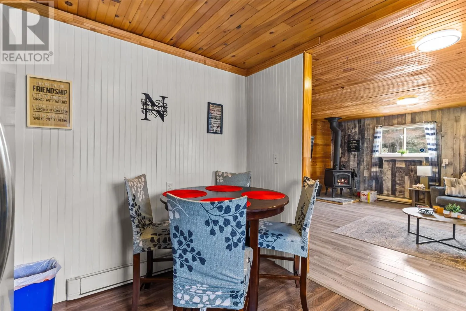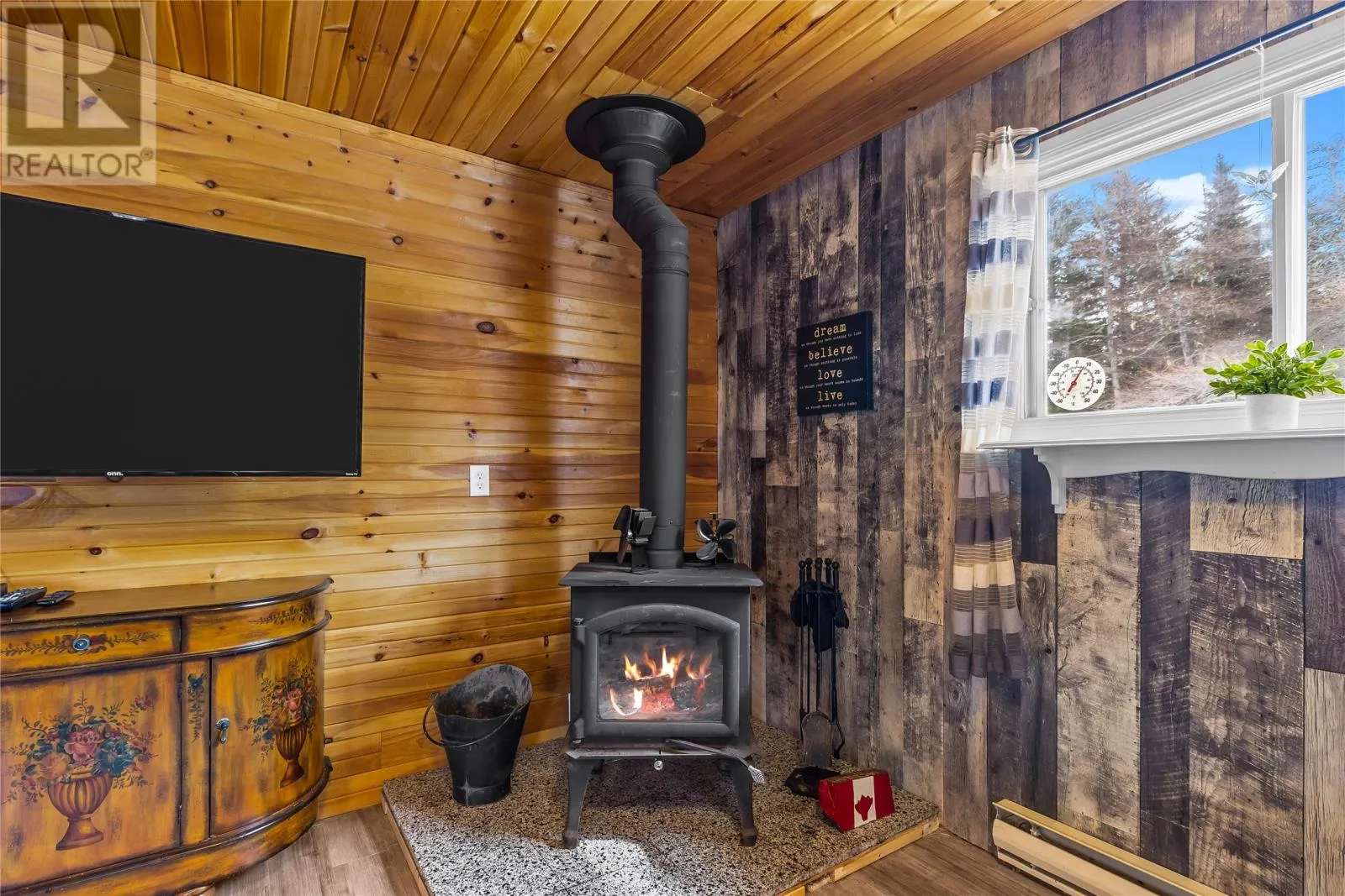 Nestled within the highly desirable Junction Park recreational community in Brigus Junction, this beautifully maintained 906 sq. ft. cabin offers an exceptional opportunity to enjoy a private, nature-filled lifestyle just 40 minutes from St. Johnâs. The interior showcases a warm and inviting design, highlighted by rich wood accents throughout the ceilings and walls, complemented by updated laminate flooring that enhances both comfort and durability. The open-concept living space is centered around a woodstove (2023), creating a cozy focal point, while a mini split heat pump (2023) ensures efficient year-round climate control. The kitchen blends function and style with updated cabinetry finished in a modern tone, abundant natural light, and stainless steel fridge and stove (approximately 18 months old). Two well-proportioned bedrooms (Primary bedroom ceiling will be finished) and a full bathroom featuring a soaker tub complete the interior layout, offering comfort and relaxation after a day outdoors. Set on a private 1-acre lot, the property is designed for outdoor enjoyment in every season. A spacious wraparound deck provides an ideal setting for entertaining or unwinding, while the surrounding landscapes offer a true escape into nature. Immediate access to nearby trails and ponds further enhances the recreational lifestyle this location is known for. A detached garage adds excellent utility and storage for ATVs, snowmobiles, and outdoor equipment. Improvements include a paved driveway (2024), roof (approx. 10 years), PEX plumbing and 125-amp electrical service. With key enhancements already completed including a 600 gallon septic tank placed next to the current 300 gallon that is currently used, this property is truly turnkey and ready for immediate enjoyment. Whether envisioned as a seasonal retreat, weekend getaway, or year-round escape, this property delivers an elevated cabin experience in one of the areaâs most sought-after recreational destinations. (id:27476)