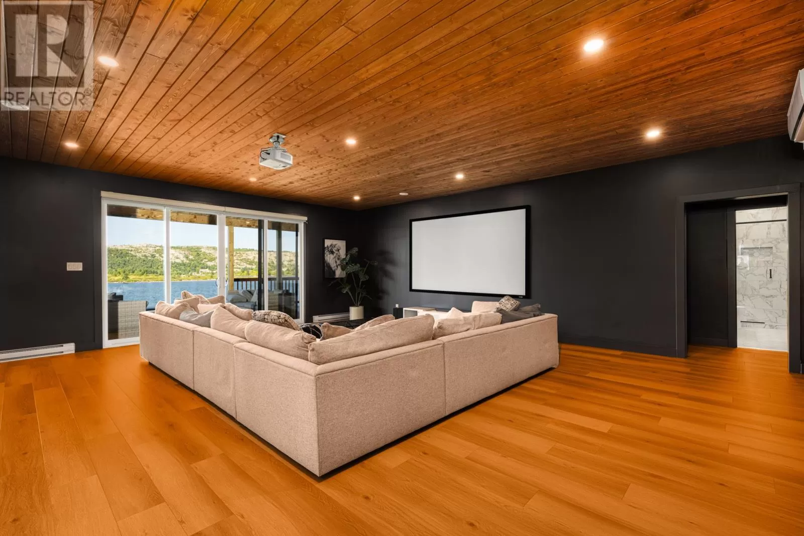 Escape to Brigus and experience the perfect blend of comfort and style in this exceptional waterfront retreat. Offering more than 5,000 square feet of like-new living space, this property can serve as your year-round residence, a weekend escape, or the ultimate summer getaway. The main level showcases a spacious great room with soaring windows that frame picturesque pond views and a wood-burning fireplace that creates a warm centerpiece. Step outside to a full-width deck designed for entertaining or simply soaking in the scenery. The custom kitchen is both functional and impressive, featuring sleek white cabinetry, granite counters, and a generous island with seating. A bedroom, full bath, and convenient laundry area complete this floor. Upstairs, the primary suite makes a statement with its dramatic 20-foot ceilings, large walk-in closet, and spa-inspired ensuite with five fixtures. A private balcony off the suite provides the perfect spot to take in both sunrise and sunset. The fully developed walk-out lower level expands your living options with a bright rec room, a fitness space, and two additional bedrooms. Outside, youâll find a paved driveway, a three-car garage, and your very own dock - everything you need for summer fun on the water. (id:27476)
