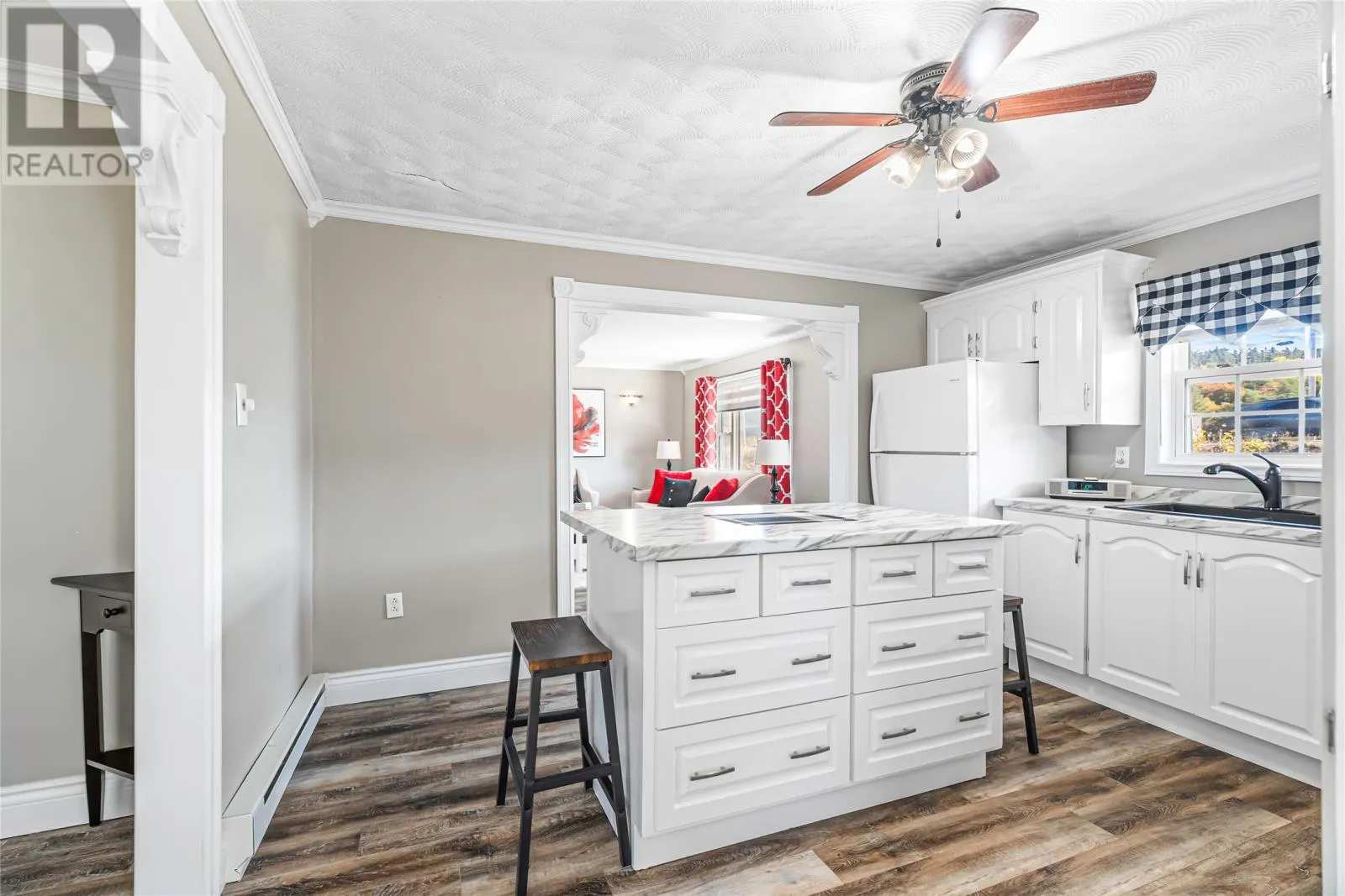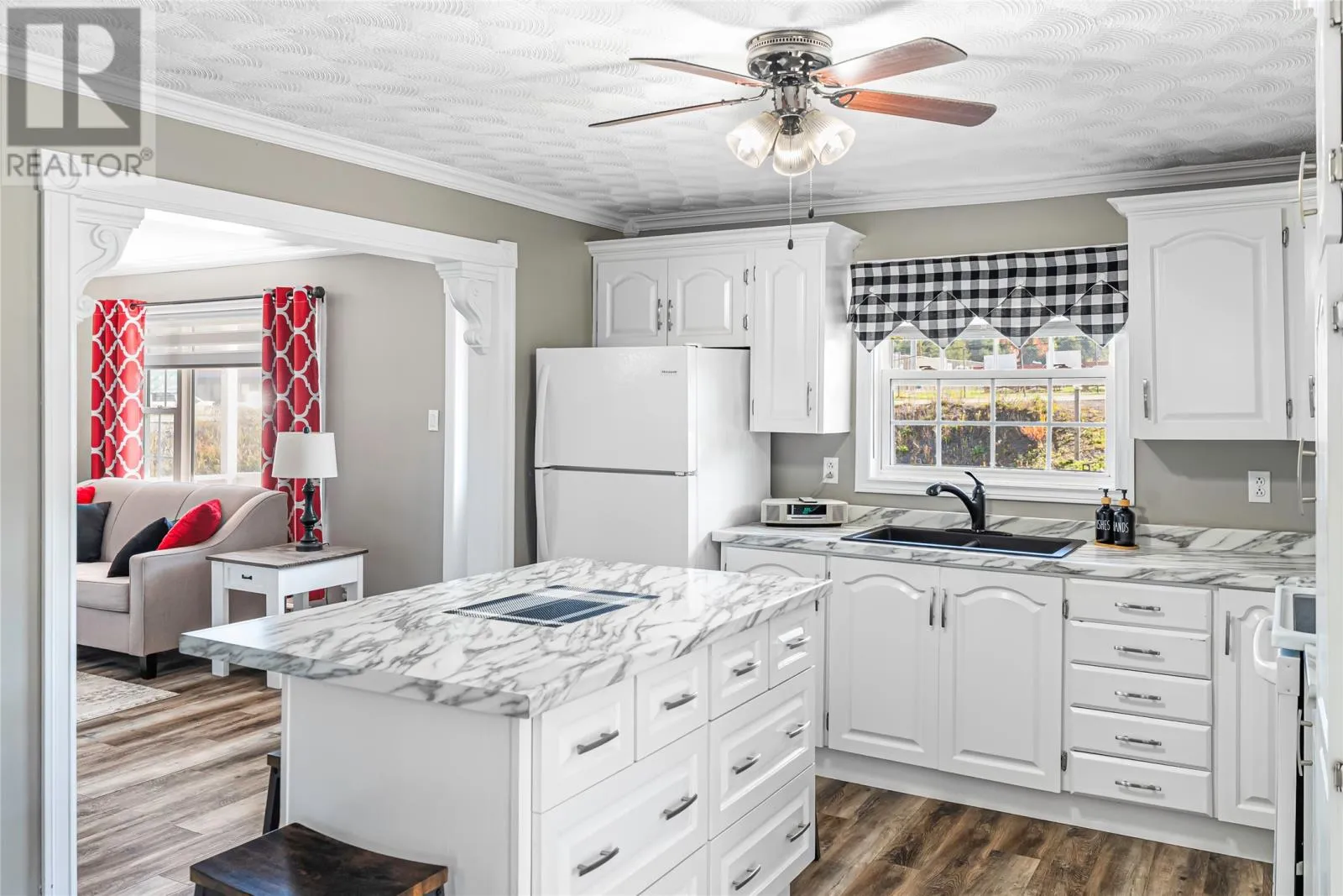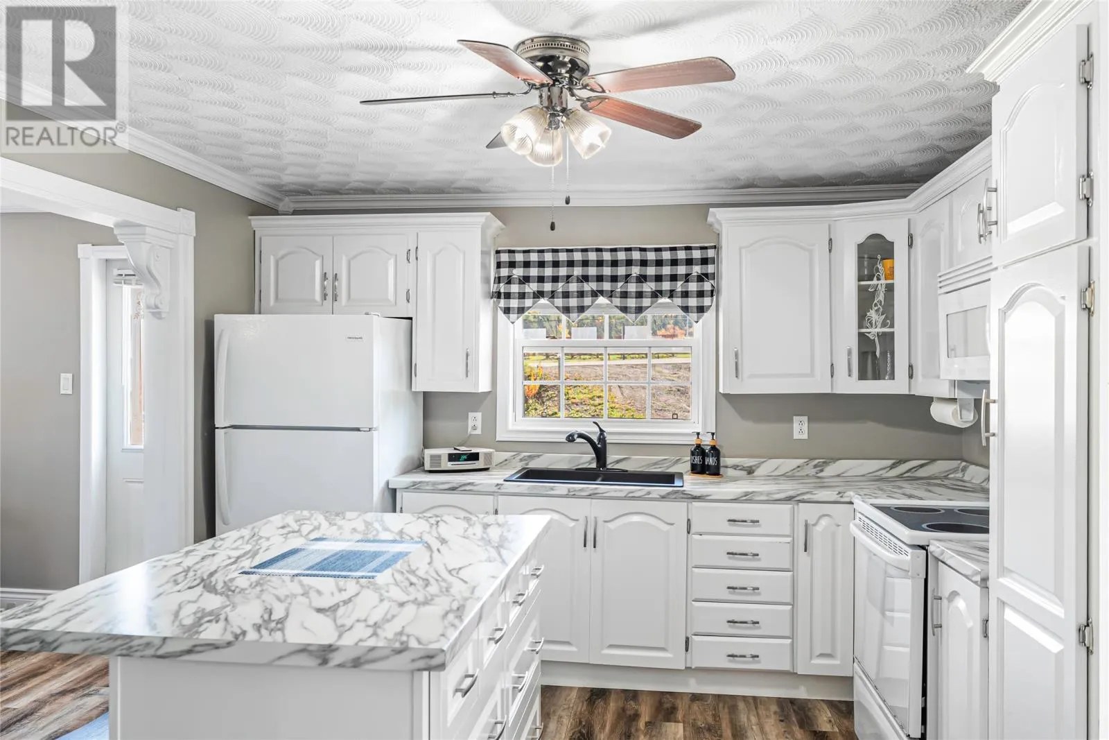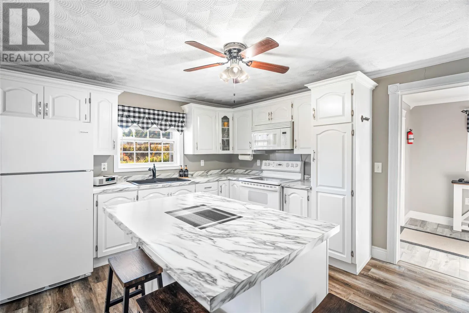 Charming 2-Bedroom Bungalow with Detached Garage in Ideal Location Welcome to your dream home! This beautifully modernized 2-bedroom, 2-bath bungalow offers the perfect blend of comfort and convenience, centrally located within walking distance to schools and the hospital. Outdoor enthusiasts will appreciate the proximity to the popular salt pond walking trail, perfect for leisurely strolls and enjoying nature. As you step inside, you'll be greeted by an inviting open-concept living space that enhances the homeâs bright and airy feel. The living room features a built-in electric fireplace, adding warmth and ambiance, while the separate dining area flows seamlessly into the kitchen. Large patio doors provide access to a lovely back deck, ideal for outdoor entertaining or simply enjoying your morning coffee. The main bath is a true highlight, showcasing a stunning tub and shower combo paired with a stylish vanity for a touch of luxury. Retreat to the spacious primary bedroom, bathed in natural light, complete with an ensuite bath featuring a modern shower for your convenience. In addition, this bungalow offers a cozy guest room, perfect for family or visitors. You'll also find a large main floor laundry area, ensuring functionality and ease in your daily routines. Completing this property is a generous 25x25 detached garage, providing ample storage and parking space. Donât miss your chance to own this charming home that combines modern living with an unbeatable location. As an added bonus, there has been brand new shingles installed in October of 2025. This home is truly a gem! (id:27476)