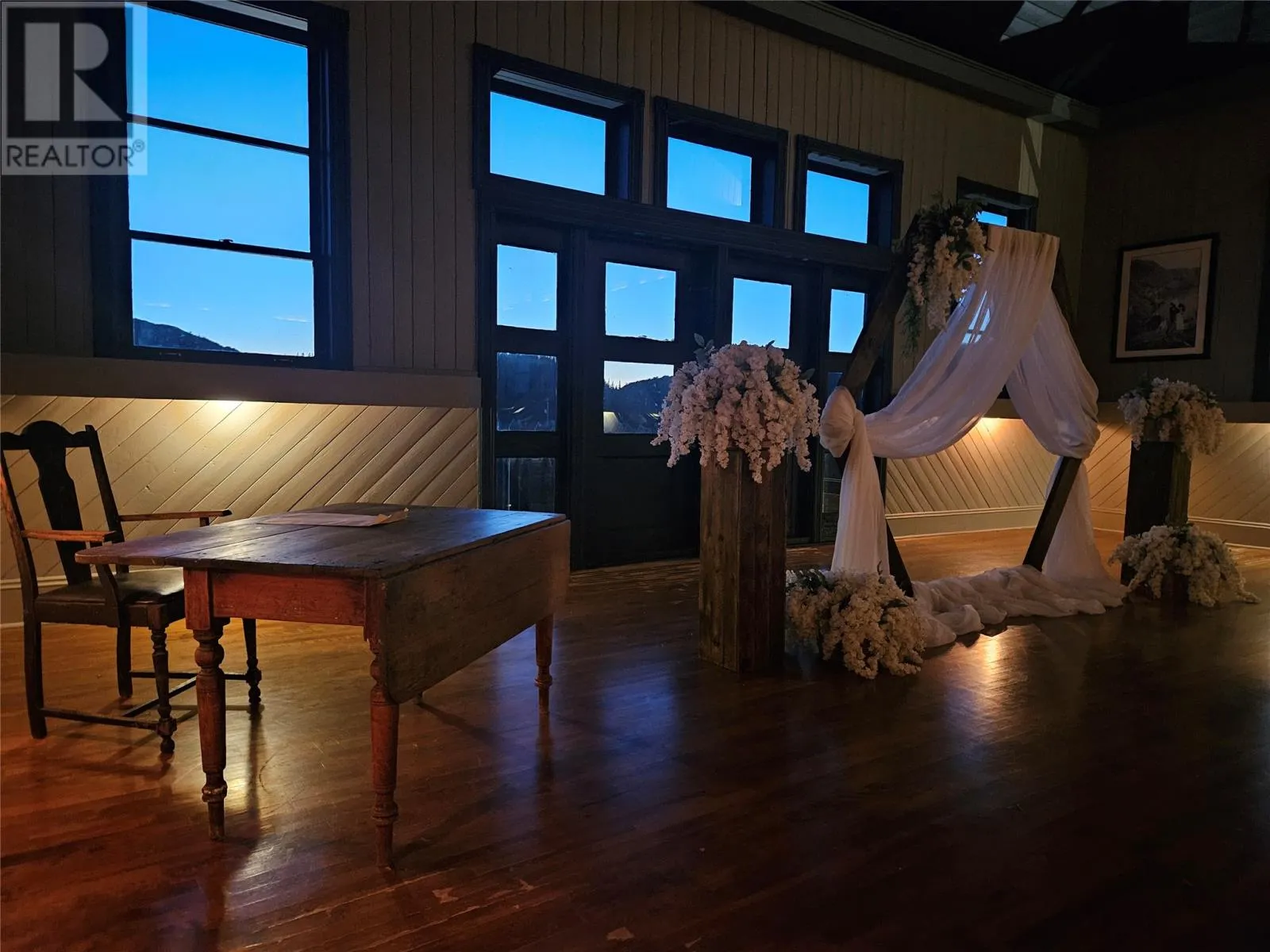 Perched high atop a rugged hill with sweeping, inspirational views, the Old Parish Hall is a property brimming with history, rustic charm, and endless potential. Most recently serving as an artistsâ retreat and a venue for intimate wedding ceremonies, this unique building offers character and versatility in equal measure. The main level welcomes you with soaring 12-foot ceilings, a brick hearth with a classic pot-bellied stove, and wide-open space filled with natural lightâideal for gatherings, events, or creative pursuits. Original wooden windows and wood heating add to the warm, old-fashioned atmosphere. The ground floor features another woodstove, 10-foot ceilings, two bathrooms (one servicing the upper level and one on the lower), and a spacious workshop/storage area that could be reimagined to suit your vision. Whether you dream of restoring it as an entertainment venue, transforming it into a unique home, or continuing its legacy as an inspirational retreat, this one-of-a-kind property is ready for its next chapter. Note: Property is being sold as a commercial building and is subject to HST, payable by the purchaser. (id:27476)