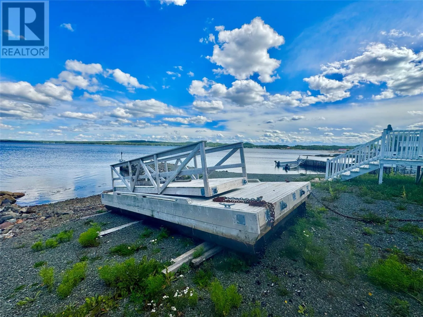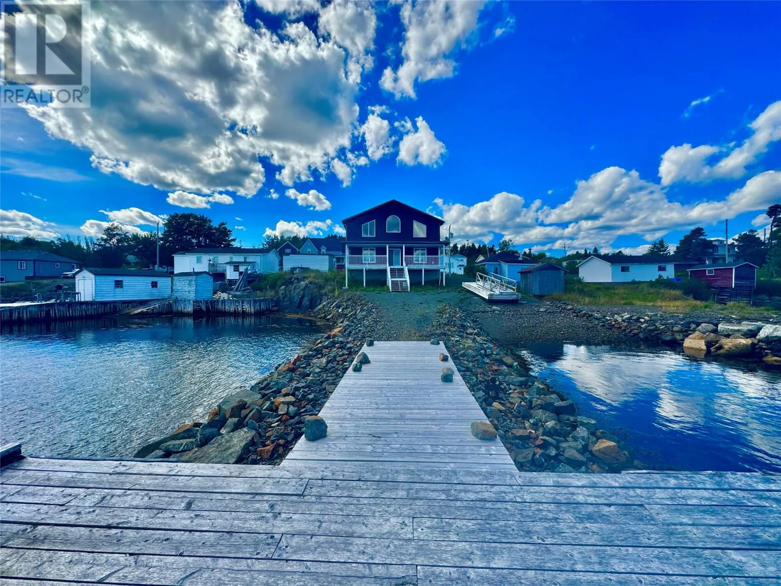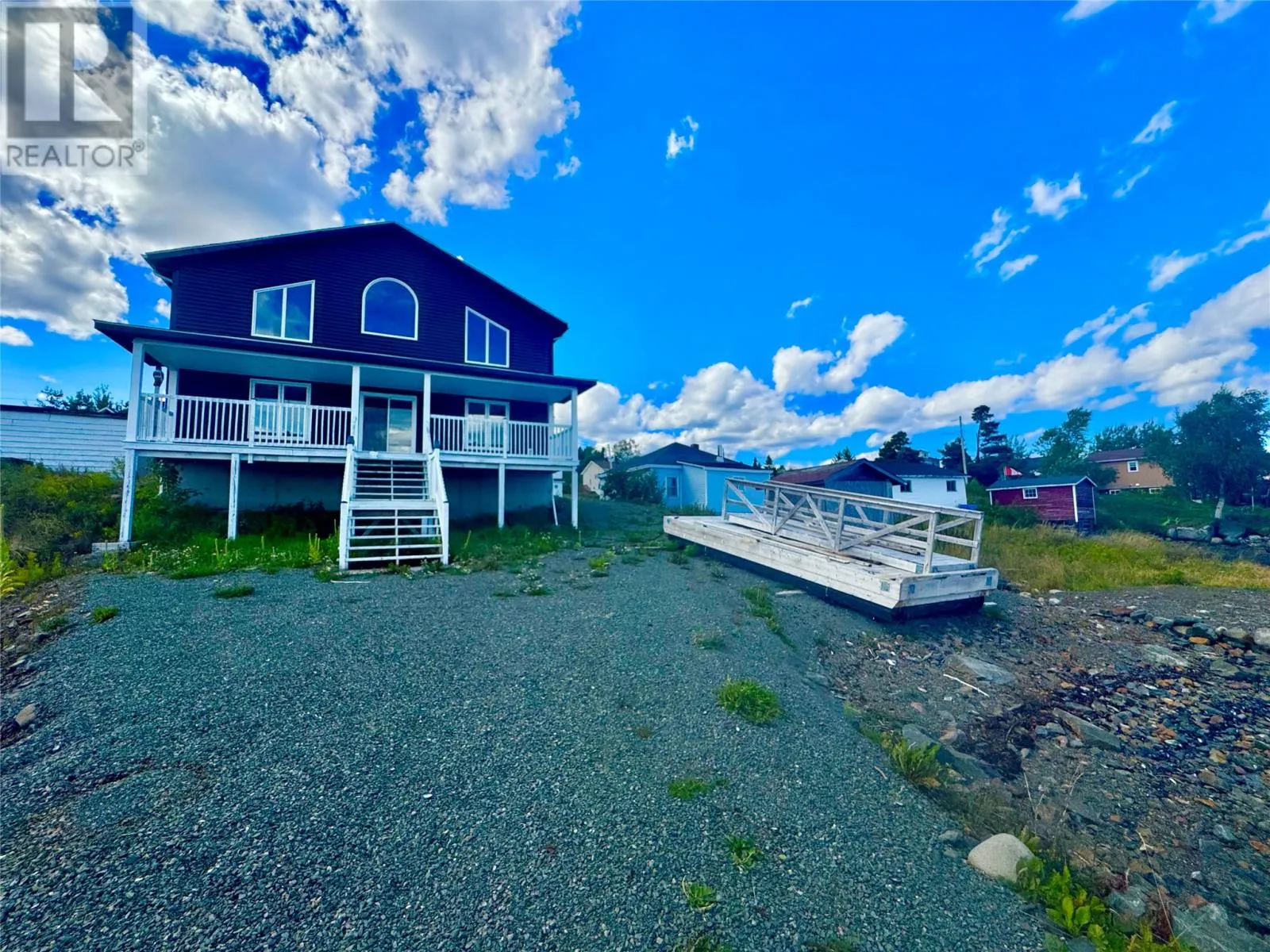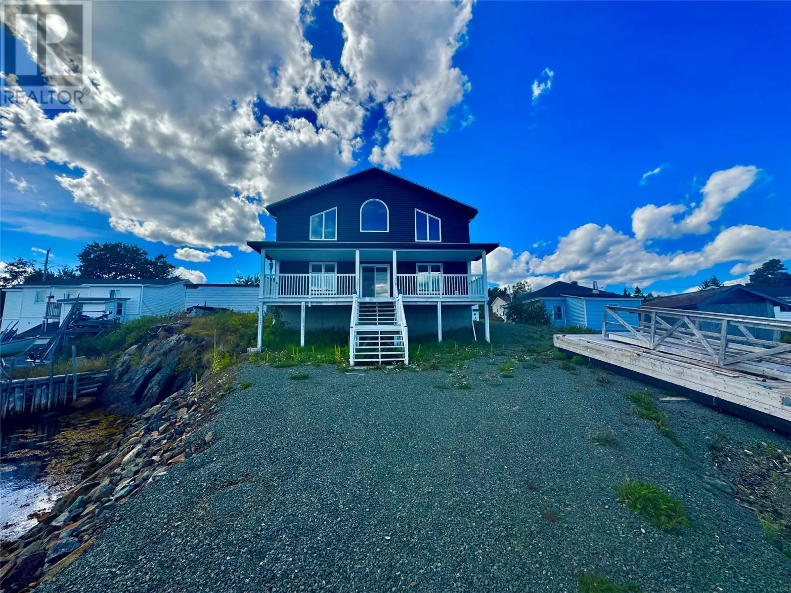 Nestled in the scenic, tranquil coastal community of Campbellton, this breathtaking oceanfront home at 105 Bob Clark Drive offers a turnkey, fully furnished lifestyle with panoramic water views from every level, a private wharf and slipway, and an unbeatable combination of comfort, convenience, and investment potential. Enter through the back into a spacious 33 x 40 garage with 16-foot ceilings, a 14-foot door wide enough to store a boat for winter, and an additional 8-foot door for vehicles or toys, perfect for a workshop or easy access to your waterfront gear; proceed through a back foyer into the open-concept main living space where the living room, dining room, and kitchen flow seamlessly together, bathed in natural light and anchored by breathtaking Notre Dame Bay views. Upstairs, youâll find two generous bedrooms and a large bathroom, with a convenient stackable laundry arrangement, all designed to maximize comfort and coastal living; the home is fully furnished, ensuring a stress-free transition to your new lifestyle or investment, and welcomes you to a 34-foot covered veranda that overlooks the shoreline for unbeatable sunsets and outdoor enjoyment. The propertyâs waterfront credentials are enhanced by a private wharf and slipway, providing direct access to the bay for boating, kayaking, or shoreline explorations, while the exterior offers a serene escape where the hush of waves meets the beauty of Newfoundlandâs rugged coast. Not only does this home promise year-round living and vacation retreat appeal, but its prime locationânear Iceberg Alley and Twillingate, with Gander International Airport about an hour away, Lewisporte a mere 15 minutes, and Twillingate just over an hourâensures excellent accessibility and endless coastal experiences, making it an ideal investment, a cherished family residence, or a lucrative vacation rental in one of Newfoundlandâs most coveted seaside communities. (id:27476)