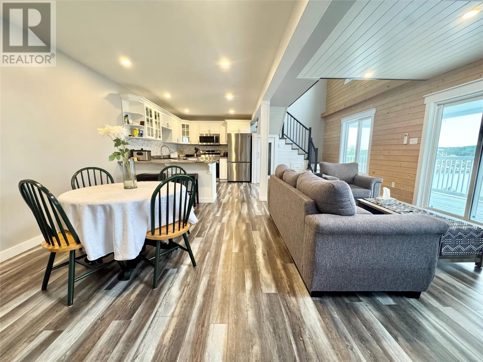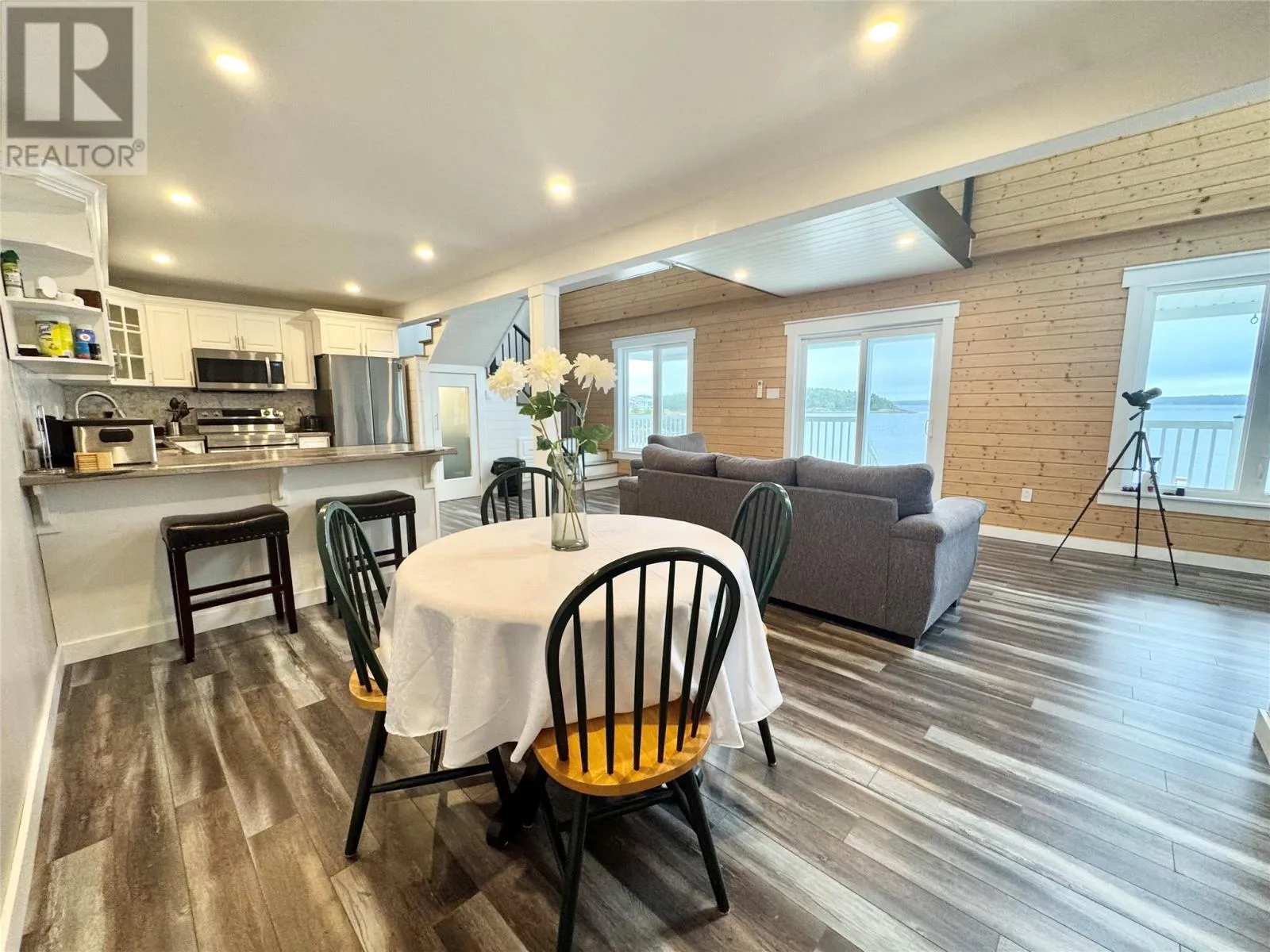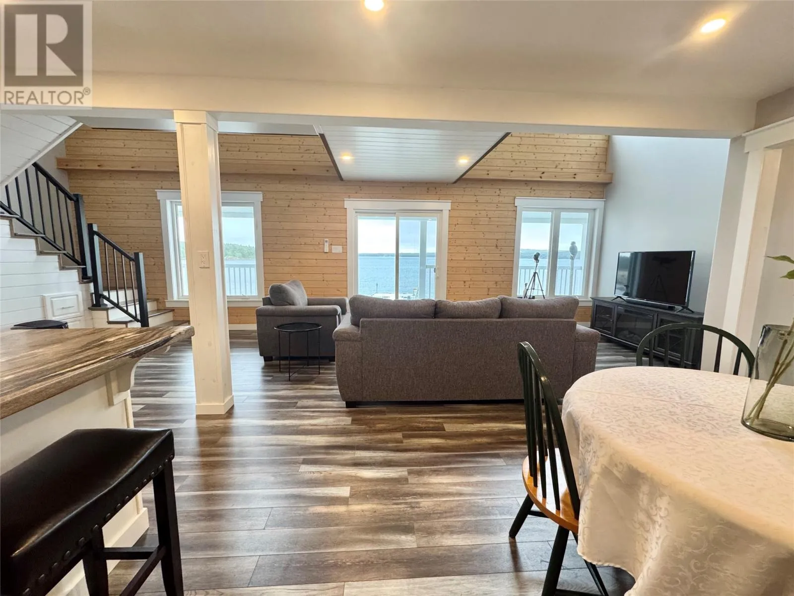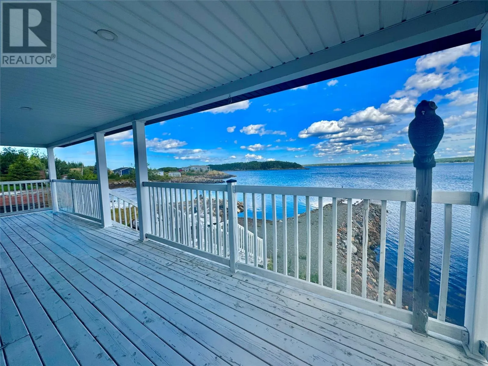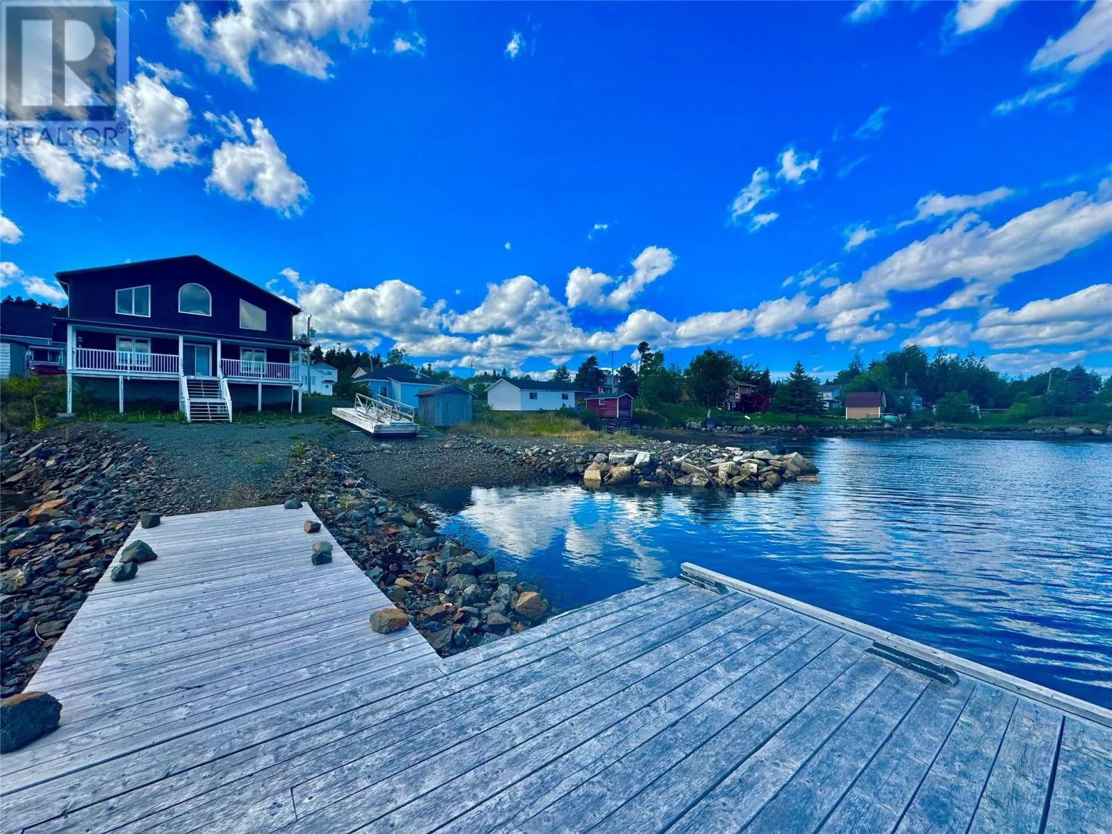 Nestled in the scenic, tranquil coastal community of Campbellton, this breathtaking oceanfront home at 105 Bob Clark Drive offers a turnkey, fully furnished lifestyle with panoramic water views from every level, a private wharf and slipway, and an unbeatable combination of comfort, convenience, and investment potential. Enter through the back into a spacious 33 x 40 garage with 16-foot ceilings, a 14-foot door wide enough to store a boat for winter, and an additional 8-foot door for vehicles or toys, perfect for a workshop or easy access to your waterfront gear; proceed through a back foyer into the open-concept main living space where the living room, dining room, and kitchen flow seamlessly together, bathed in natural light and anchored by breathtaking Notre Dame Bay views. Upstairs, youâll find two generous bedrooms and a large bathroom, with a convenient stackable laundry arrangement, all designed to maximize comfort and coastal living; the home is fully furnished, ensuring a stress-free transition to your new lifestyle or investment, and welcomes you to a 34-foot covered veranda that overlooks the shoreline for unbeatable sunsets and outdoor enjoyment. The propertyâs waterfront credentials are enhanced by a private wharf and slipway, providing direct access to the bay for boating, kayaking, or shoreline explorations, while the exterior offers a serene escape where the hush of waves meets the beauty of Newfoundlandâs rugged coast. Not only does this home promise year-round living and vacation retreat appeal, but its prime locationânear Iceberg Alley and Twillingate, with Gander International Airport about an hour away, Lewisporte a mere 15 minutes, and Twillingate just over an hourâensures excellent accessibility and endless coastal experiences, making it an ideal investment, a cherished family residence, or a lucrative vacation rental in one of Newfoundlandâs most coveted seaside communities. (id:27476)
