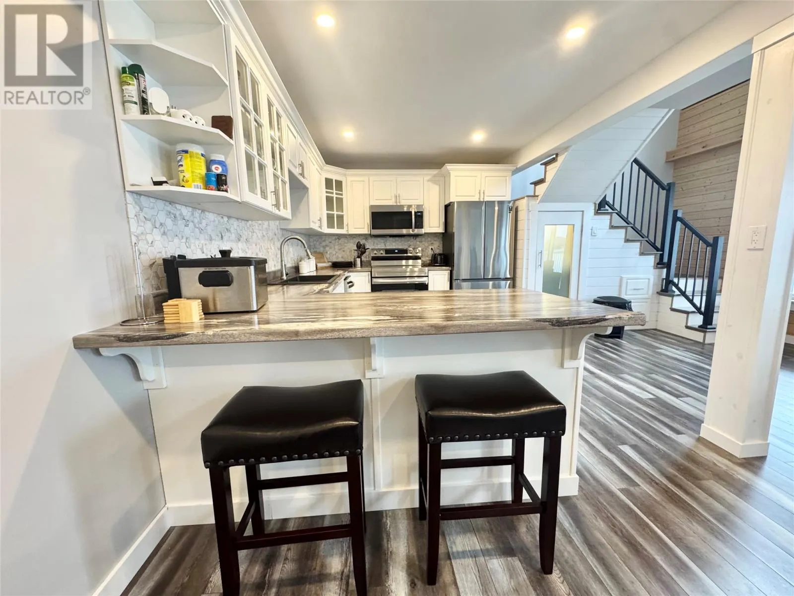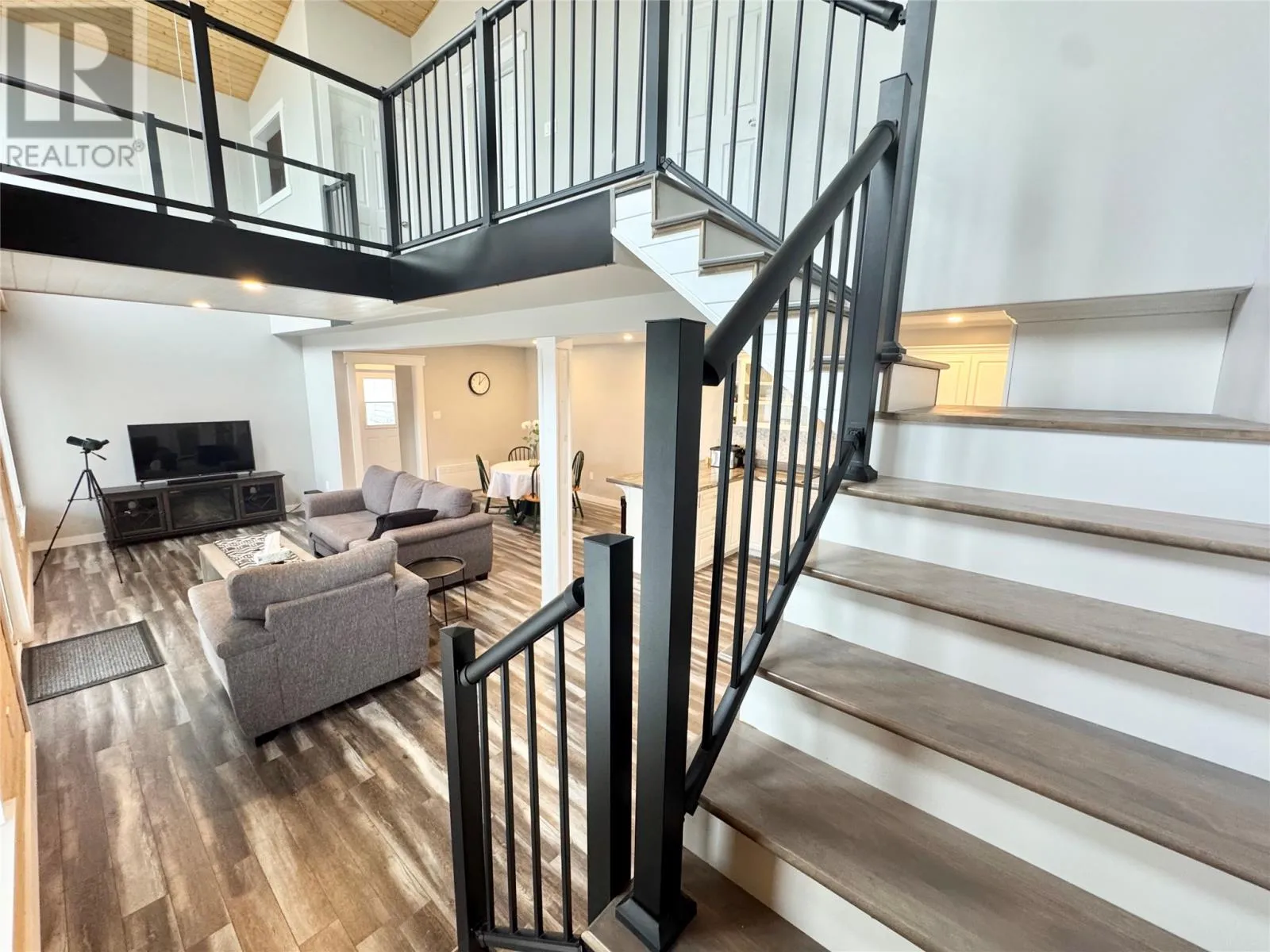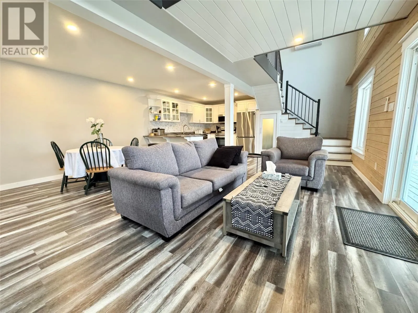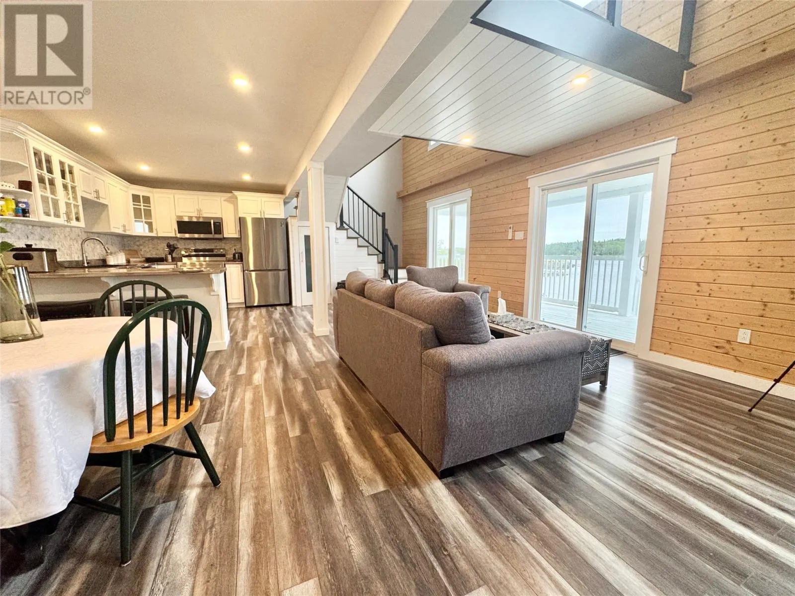 Nestled in the scenic, tranquil coastal community of Campbellton, this breathtaking oceanfront home at 105 Bob Clark Drive offers a turnkey, fully furnished lifestyle with panoramic water views from every level, a private wharf and slipway, and an unbeatable combination of comfort, convenience, and investment potential. Enter through the back into a spacious 33 x 40 garage with 16-foot ceilings, a 14-foot door wide enough to store a boat for winter, and an additional 8-foot door for vehicles or toys, perfect for a workshop or easy access to your waterfront gear; proceed through a back foyer into the open-concept main living space where the living room, dining room, and kitchen flow seamlessly together, bathed in natural light and anchored by breathtaking Notre Dame Bay views. Upstairs, youâll find two generous bedrooms and a large bathroom, with a convenient stackable laundry arrangement, all designed to maximize comfort and coastal living; the home is fully furnished, ensuring a stress-free transition to your new lifestyle or investment, and welcomes you to a 34-foot covered veranda that overlooks the shoreline for unbeatable sunsets and outdoor enjoyment. The propertyâs waterfront credentials are enhanced by a private wharf and slipway, providing direct access to the bay for boating, kayaking, or shoreline explorations, while the exterior offers a serene escape where the hush of waves meets the beauty of Newfoundlandâs rugged coast. Not only does this home promise year-round living and vacation retreat appeal, but its prime locationânear Iceberg Alley and Twillingate, with Gander International Airport about an hour away, Lewisporte a mere 15 minutes, and Twillingate just over an hourâensures excellent accessibility and endless coastal experiences, making it an ideal investment, a cherished family residence, or a lucrative vacation rental in one of Newfoundlandâs most coveted seaside communities. (id:27476)