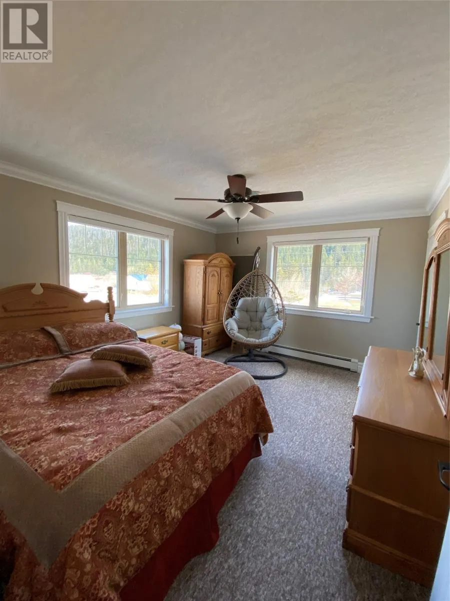 "EXECUTIVE STYLE HOME LOCATED ON THE BEAUTIFUL PORT AU PORT PENINSULA" This stunning very well built and extremely well maintained home is sitting on over an acre with ocean and mountain views! The main floor features 9 foot ceilings very overwhelming as soon as you enter! The spacious foyer with 18 foot ceilings and gorgeous fireplace is breathtaking and beaming with natural light. Main floor features living room, formal dining room which leads into the eat in kitchen offering loads of seating space to entertain! The kitchen has a island, stainless steel appliances, lots of cabinets and counter space, rec room is just across the hall and you can access the attached garage from this room. A full bath completes this level. The 2nd floor features the primary bedroom with walk in closet and a ensuite, 2 more spacious bedrooms and the laundry room. The attached garage with garage door opener has a utility room with storage space. The wired and heated 3 bay detached garage with a car lift, 220 amp service, wood stove with a blower and also has a bathroom. Wrap around deck with maintenance free composite decking, heat recovery unit with hepa filter, in floor heating with wood and oil furnace, gorgeous hardwood floors, incredible moldings and more are just some of this home's features! Also comes with a generator backup power system no worries about power outages! Call today for more info or to book your personal viewing (id:27476)