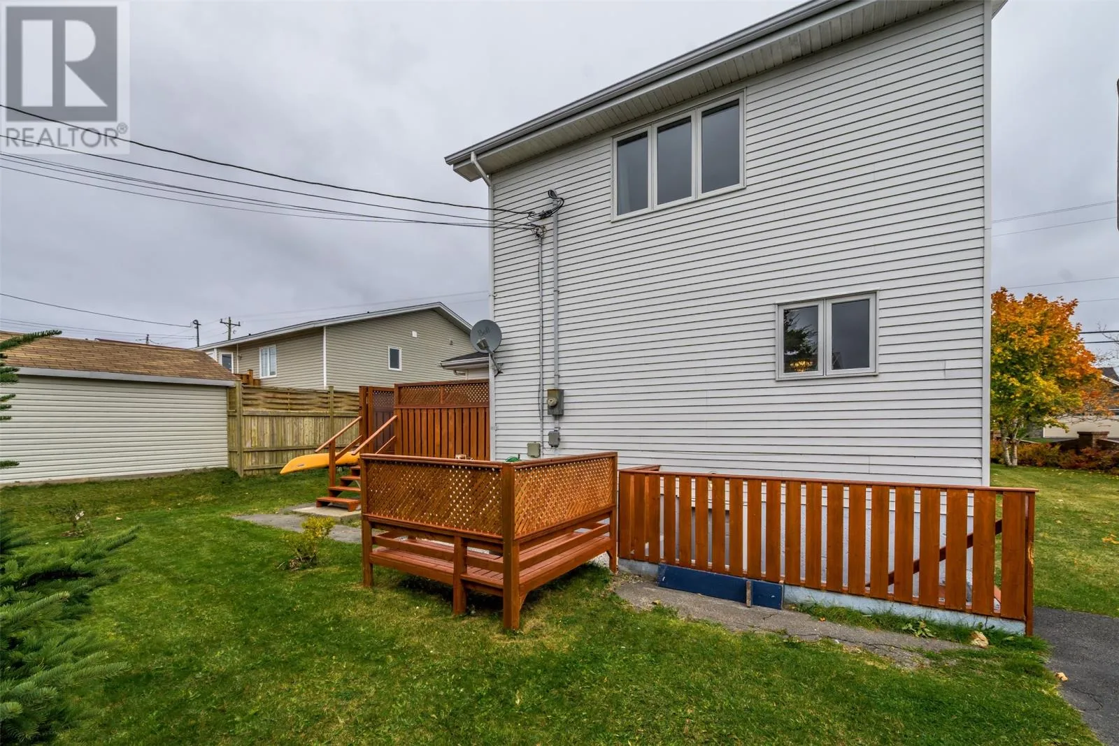 Located in beautiful Conception Bay South with easy highway access and just 15 minutes from St. Johnâs, this lovely, well-maintained two-storey home has been very well maintained by its current owner for the past 26 years and is now ready for its new family. Situated on a corner lot with two large driveways, this property offers plenty of parkingâperfect for families, a potential in-law suite, or a home-based business. Nice front porch area as you enter. The living room is inviting and comfortable, opening to a bright dining areaâideal for entertaining. The spacious kitchen features lots of cabinetry and counter space, along with a cozy sitting nook thatâs perfect for reading, enjoying your morning coffee, or relaxing with a glass of wine. A patio door leads to a lovely deck area. Upstairs, youâll find three bedrooms, including a spacious primary bedroom with its own sitting area, a walk-in closet, and a full ensuite bathroom. The two additional bedrooms are bright and good sized and the main bathroom is large and well-appointed. Downstairs, youâll find a large rec room featuring a beautiful propane fireplace that creates a cozy, relaxing atmosphere. Thereâs also a hobby room/office that could easily be converted into an additional bedroom if desired. The laundry room is spacious, with rough-in plumbing for a fourth bathroom. Extra storage space and an outside entrance provide easy access to the backyard and side driveway â a very convenient feature. The attached garage is yet another bonus, and it includes an attached, wired shed area, perfect for woodworking or additional storage. Outside, the property has mature trees, creating a sense of privacy and thereâs also a firepit area, ideal for relaxing evenings with family and friends. This is a wonderful property you can call home, just in time for the Christmas season. Book your viewing today! (id:27476)
