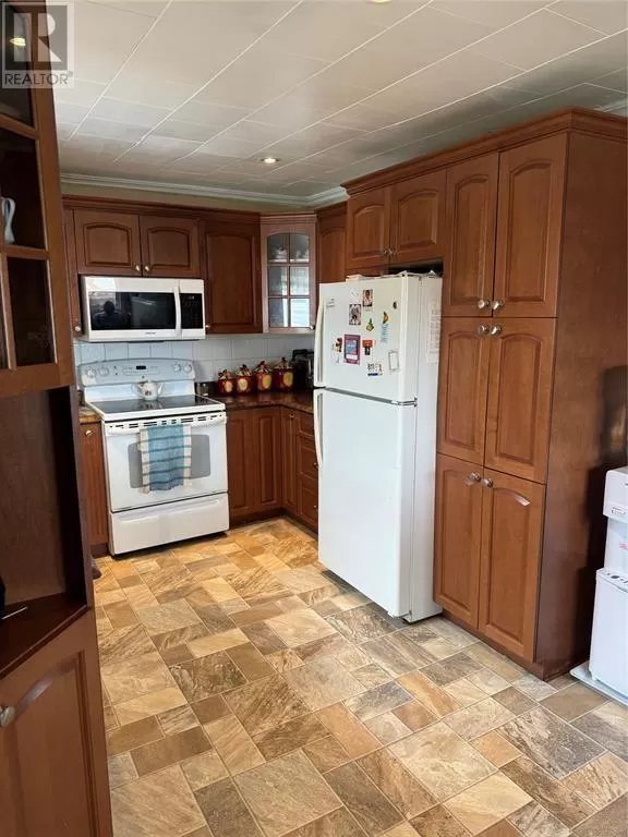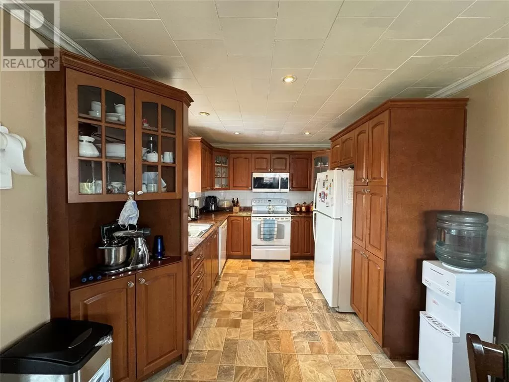 A Million Dollar view sums up this property! You can be at every corner on this property and see a view of the ocean. This is a three bedroom bungalow with a kitchen that was renovated in 2014. In the primary bedroom there is an en-suite and another great feature is that the laundry room is on the main level. From the living room, you can step onto the patio and enjoy the peaceful setting and the gorgeous view while listening to the waves from the ocean. In the basement you will find an in law suite if you desire to utilize it for that or you can use it for a two bedroom basement apartment. It has a eat in kitchen. bathroom, two bedrooms. Hobby room/computer room and in the basement is the furnace room, It also has an outside entrance. It has a wood and oil furnace and electric heat in this property. Shingles is only seven years old. Siding and windows is approximately 10-11 years old. Located on the property is a garage that measures 12 x 24 but not wired or heated, three other sheds which measures 16 x 34 and this one is wired, 10 x 12, and 10 x 7, The greenhouse measures 7 x 8. There is a wharf and slipway for the boaters as well. Some items that are included are: all kitchen appliances, washer and dryer, 55 inch TV, 4 fitted beds, green house, fishing stage, wharf and slipway, and and a furnished living room (id:27476)