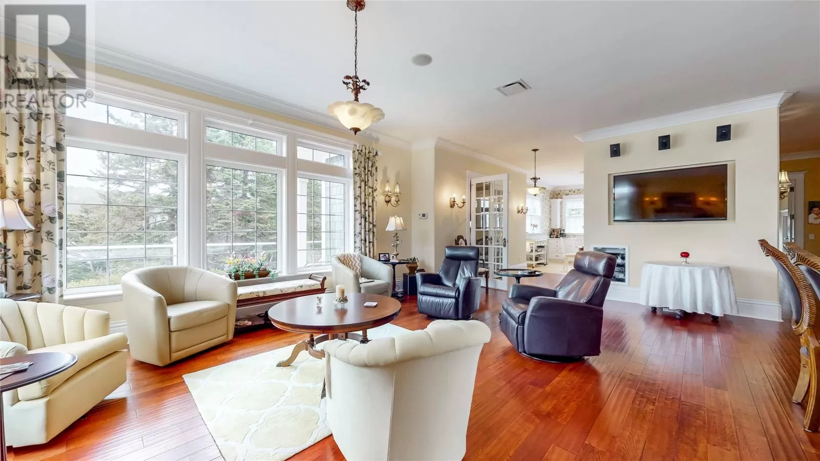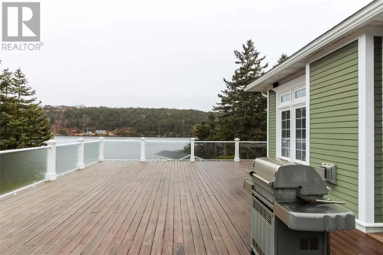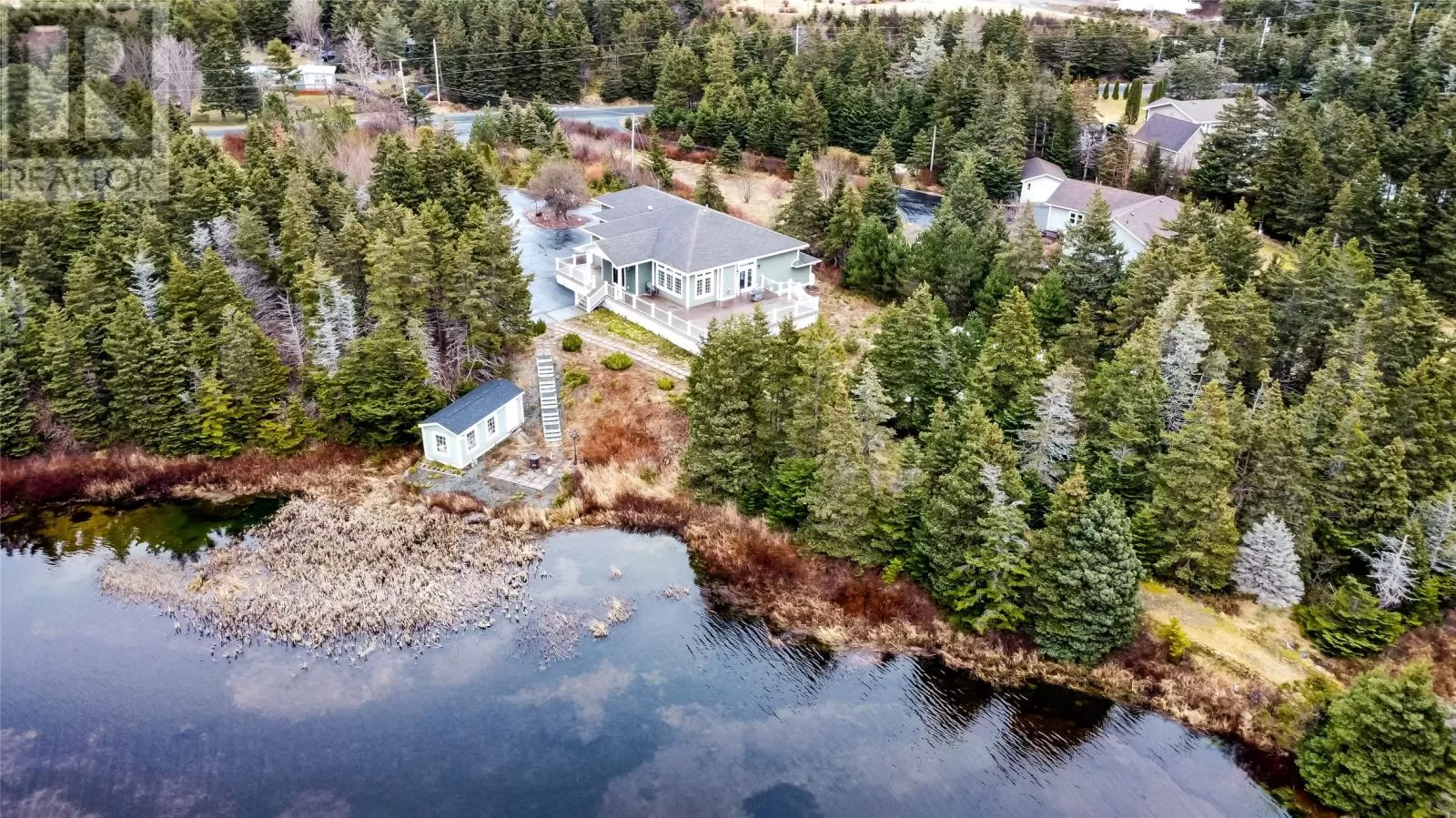Turn onto Ridge rd from Main Highway in Holyrood. (Note GPS is confusing as approx half of ridge rd is considered Holyrood & the other half is Chapels cove) Continue on Ridge rd house is located on the left close to the lower part of Ridge Rd. This stunning estate-style property is located on a pond and just a 5-minute walk to the ocean. A private1.39-acre lot in the heart of the quaint community of Chapel's Cove, just 35 minutes from the city of St. Johnâs. With meticulous attention to detail, quality construction and a focus on energy efficiency, it is difficult to find a property that will compare. This stylish home is versatile for both entertaining and family life. The main floor features an expansive great room with a pp fireplace and panoramic views of the water. It encompasses a spacious sitting area and a dining room comfortably seating twelve. An elegant powder room for guests and a fabulous gourmet KIT with a walk-in pantry which will delight any chef. The spacious primary BDRM is complete with a spa-inspired ensuite and large walk-in closet. The beautiful solid walnut staircase opens to the lower level with its impressive entertainment RM with a custom-built bar fully equipped with KIT appliances. In addition to the pp fireplace and beautiful mantel, the detailed millwork which encompasses this room is absolutely stunning and provides the various seating areas a comfortable yet elegant relaxing atmosphere. This room presents as open concept yet offers various sections, such as a conversation pit, a dining area, cards or gaming area, and sit-up bar. Three additional BDRMS each with full ensuites are located on this lower level. The geo-thermal heat pump provides energy efficient heating and air conditioning. (Very Low elec bills) Additionally, a unique playhouse is located down by the water, perfect for young kids & visiting grandchildren. There is also a firepit in this area overlooking the pondâ¦. great for outdoor summer evenings & roasting marshmallows. The quality finishes and features offered in this property are second to none! See Feature sheet for additional details **This property is offered furnished (owner will be removing personal items.. A list to be provided to purchaser) (id:27476)