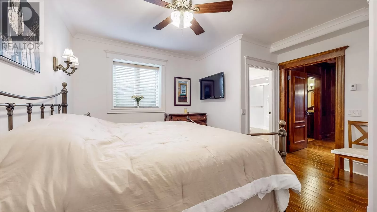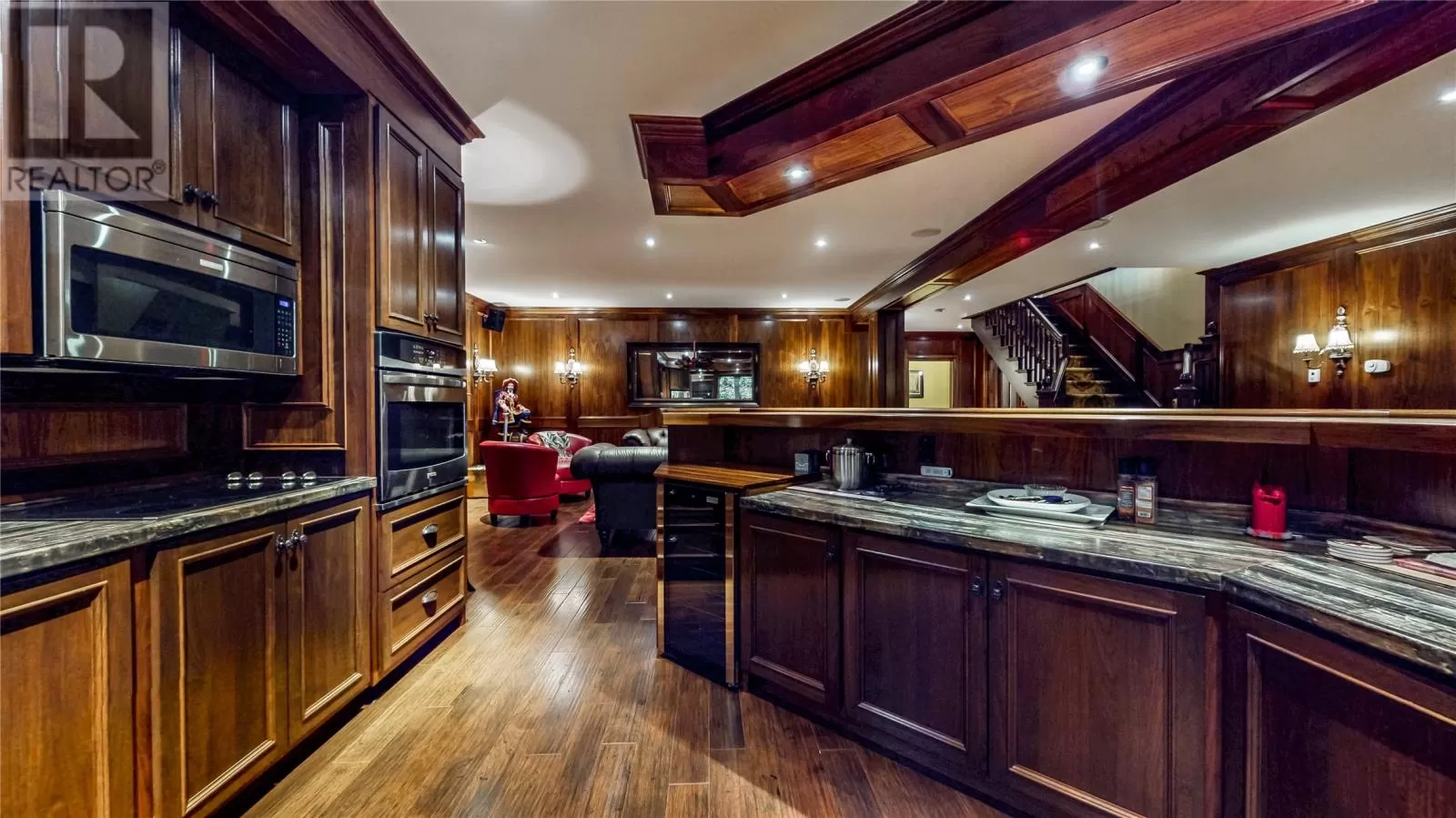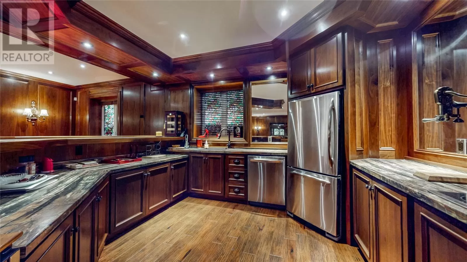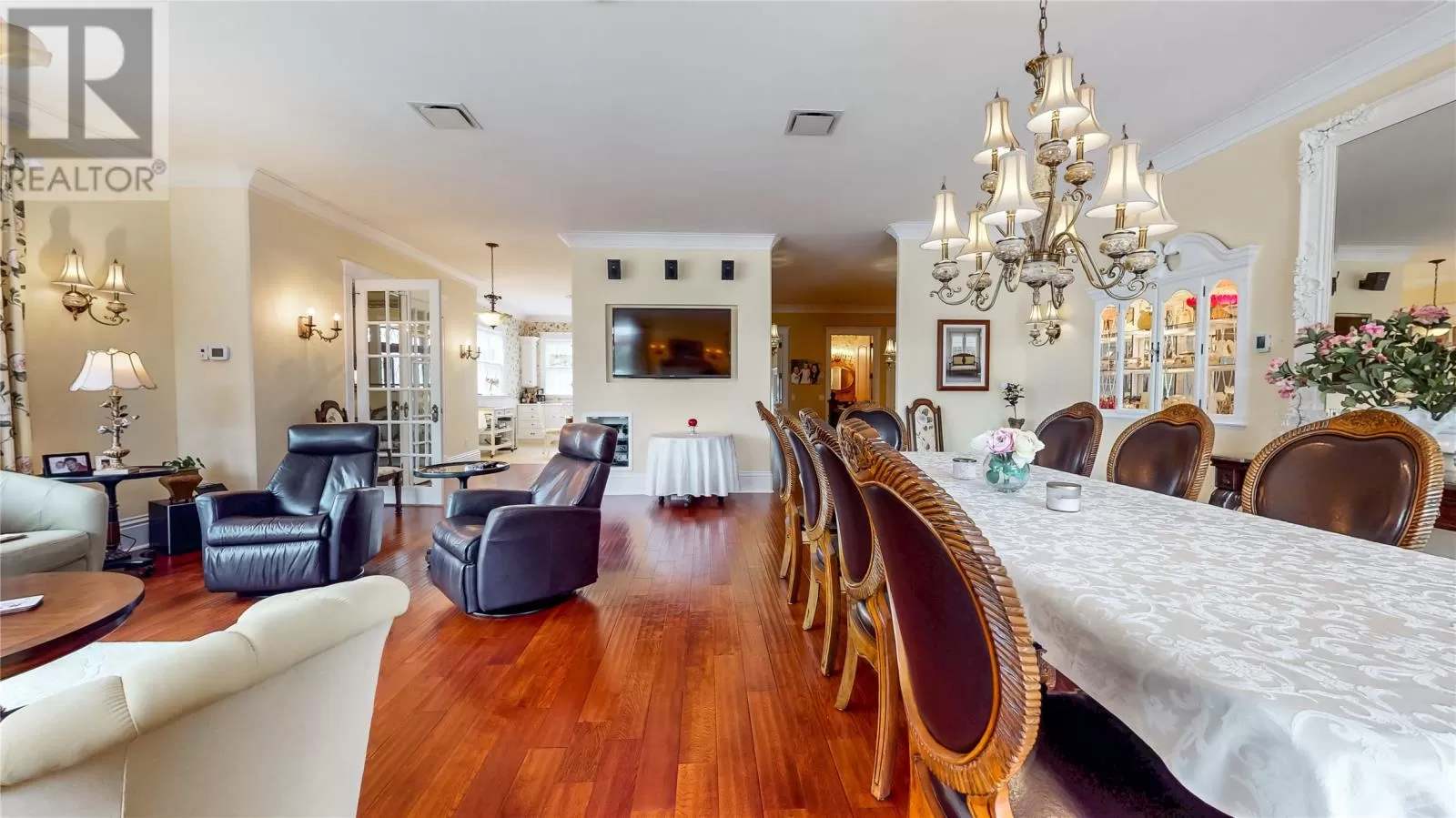 Turn onto Ridge rd from Main Highway in Holyrood. (Note GPS is confusing as approx half of ridge rd is considered Holyrood & the other half is Chapels cove) Continue on Ridge rd house is located on the left close to the lower part of Ridge Rd. This stunning estate-style property is located on a pond and just a 5-minute walk to the ocean. A private1.39-acre lot in the heart of the quaint community of Chapel's Cove, just 35 minutes from the city of St. Johnâs. With meticulous attention to detail, quality construction and a focus on energy efficiency, it is difficult to find a property that will compare. This stylish home is versatile for both entertaining and family life. The main floor features an expansive great room with a pp fireplace and panoramic views of the water. It encompasses a spacious sitting area and a dining room comfortably seating twelve. An elegant powder room for guests and a fabulous gourmet KIT with a walk-in pantry which will delight any chef. The spacious primary BDRM is complete with a spa-inspired ensuite and large walk-in closet. The beautiful solid walnut staircase opens to the lower level with its impressive entertainment RM with a custom-built bar fully equipped with KIT appliances. In addition to the pp fireplace and beautiful mantel, the detailed millwork which encompasses this room is absolutely stunning and provides the various seating areas a comfortable yet elegant relaxing atmosphere. This room presents as open concept yet offers various sections, such as a conversation pit, a dining area, cards or gaming area, and sit-up bar. Three additional BDRMS each with full ensuites are located on this lower level. The geo-thermal heat pump provides energy efficient heating and air conditioning. (Very Low elec bills) Additionally, a unique playhouse is located down by the water, perfect for young kids & visiting grandchildren. There is also a firepit in this area overlooking the pondâ¦. great for outdoor summer evenings & roasting marshmallows. The quality finishes and features offered in this property are second to none! See Feature sheet for additional details **This property is offered furnished (owner will be removing personal items.. A list to be provided to purchaser) (id:27476)