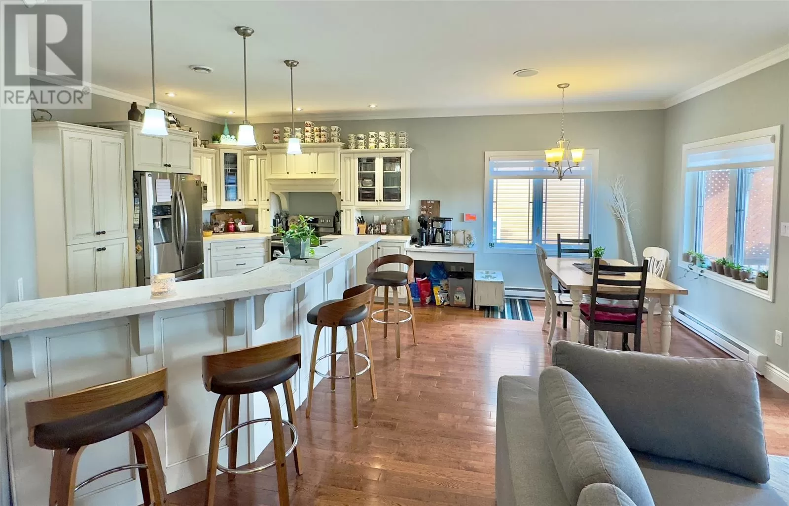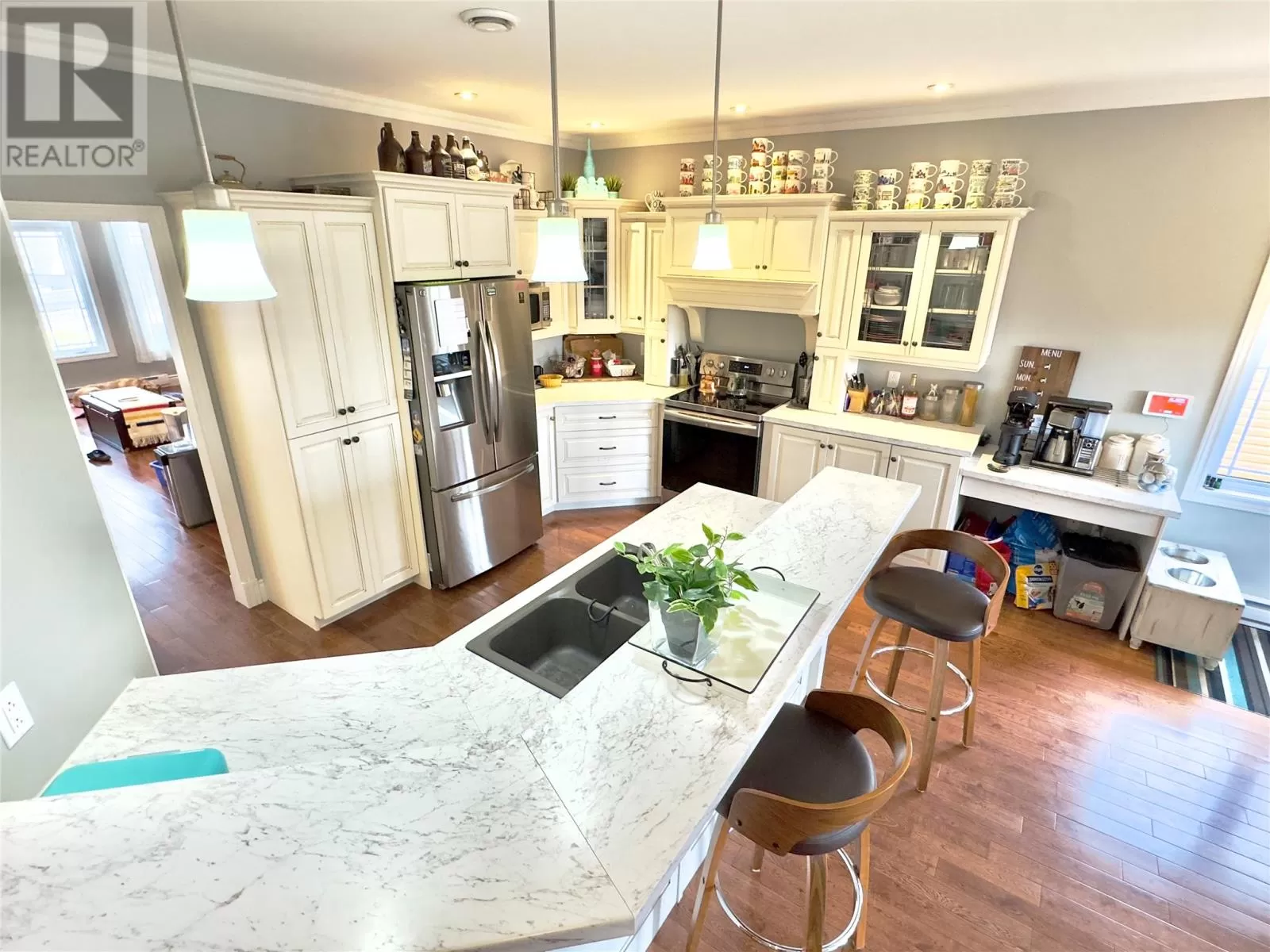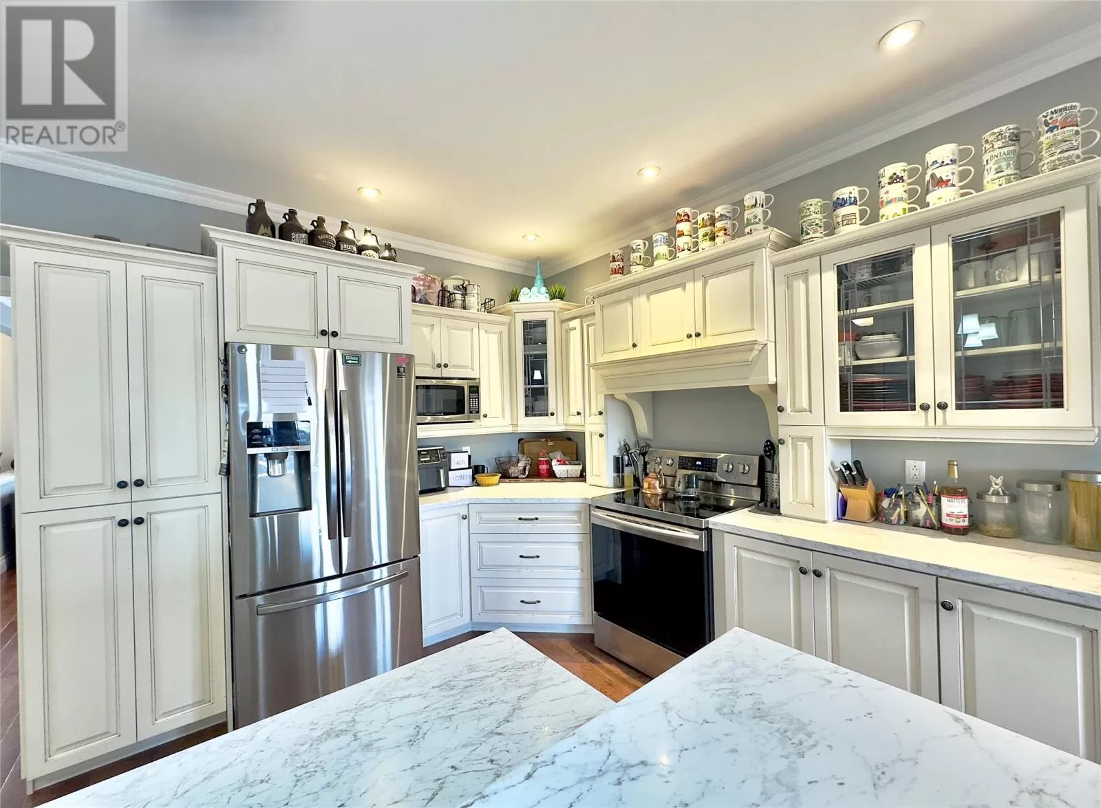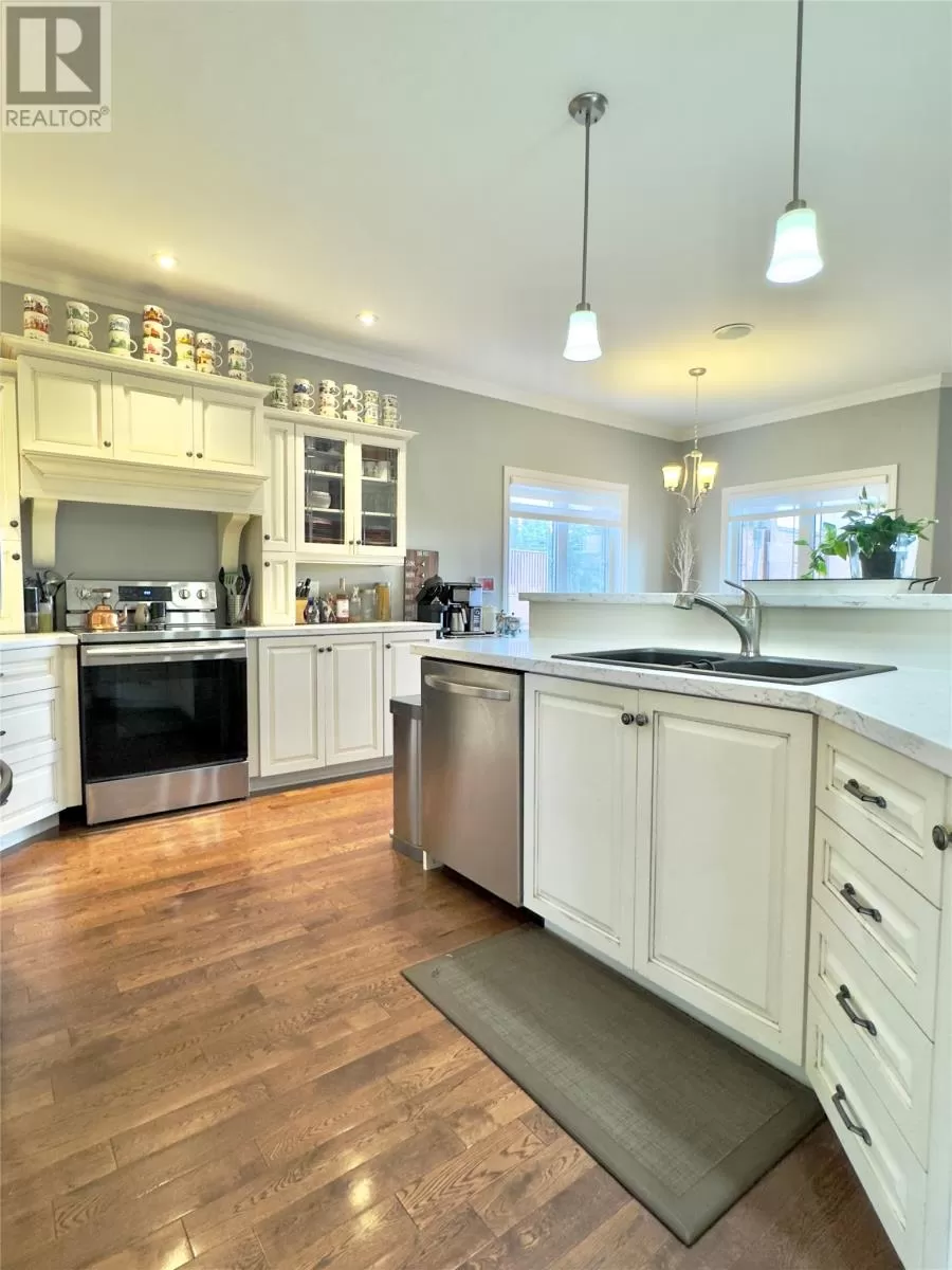 SPACIOUS EXECUTIVE STYLE HOME! Located in a highly sought-after area of Clarenville and just a few minutesâ walk to Clarenville High & Middle Schools, soccer field, stadium, and next door to all amenities! This home offers a double attached garage & partially covered back deck. The amazing layout leaves you wanting nothing as you enter through the impressive foyer, you will find a living/dining room combo to your left, move further along and you encounter the open concept kitchen, nook & family room with propane fireplace (access to back elevated deck). The kitchen features contemporary white cabinets, stainless steel appliances plus an eat up peninsula. The oversized primary bedroom boasts a great 4-piece ensuite & walk in closet while the remainder of the main floor consists of two other large bedrooms, main bathroom plus laundry/mud room. Do not forget the fully developed walk-out basement with its enormous rec room (fantastic for entertaining - room for pool or ping pong table), wet bar & sitting area (rec room also has a pellet stove). Throughout the remainder of the basement, you will find endless space and options - 2 additional bedrooms, a full bathroom, office (great for working from home), cold storage area and a number of utility/hobby/playrooms. Believe me, when I say this house has everything you would need and should be seen to be appreciated PLUS the bonus of a newly installed mini split system on the main floor! JUST ADDED - VENDOR OFFERS $10,000 DECORATING BONUS ON CLOSING (Can be used for painting, flooring, etc.). (id:27476)