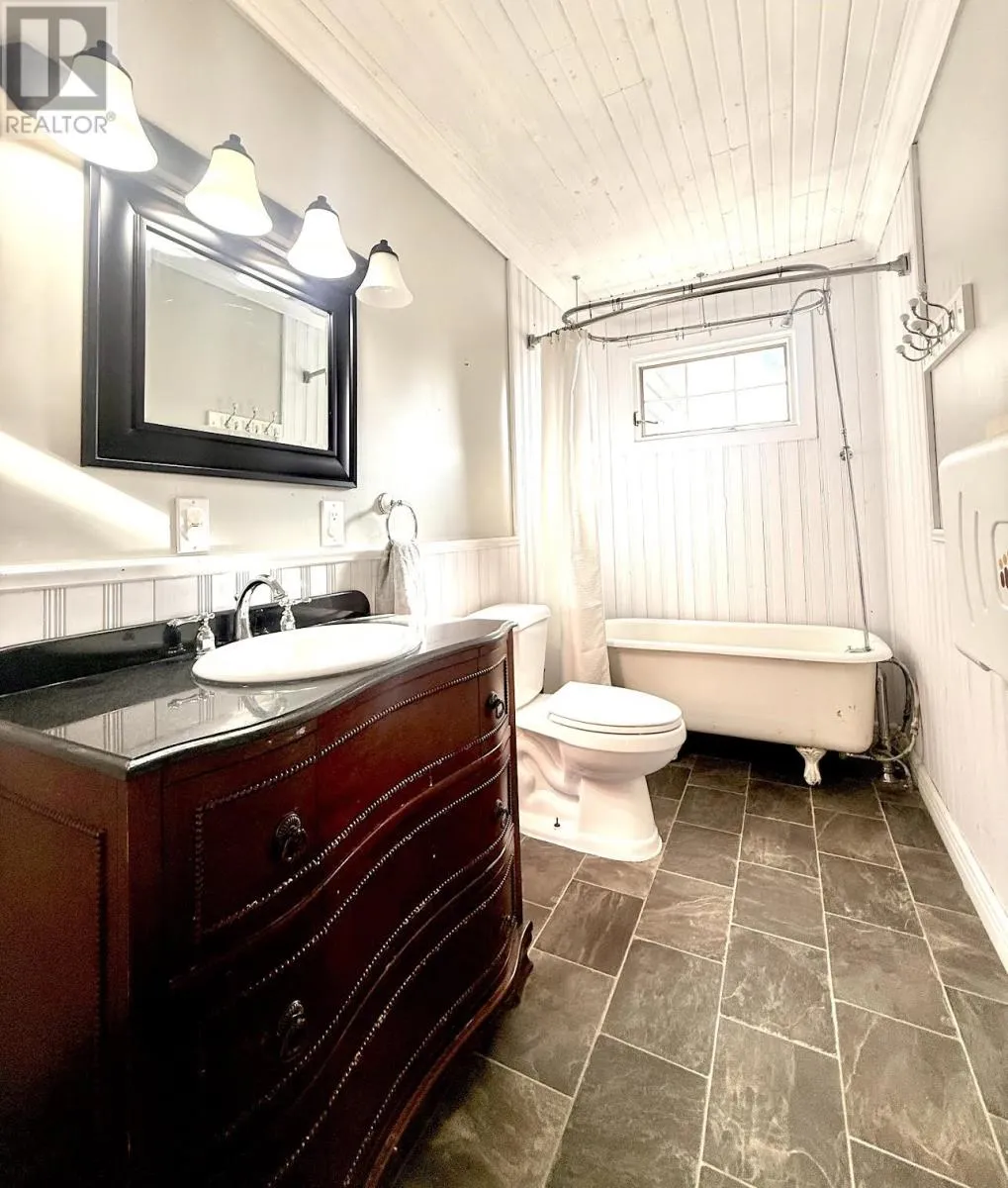 Located in the heart of Clarenville, this spacious 4-bedroom, 3-bath home sits on a beautiful mature lot and offers a perfect blend of comfort and functionality. The inviting front porch welcomes you into a large kitchen featuring an oversized island, stainless steel appliances, and a gas rangeâideal for both everyday living and entertaining. Just off the kitchen is a versatile room that can serve as a home office, playroom, or designated dining area, providing flexibility for any lifestyle. The expansive living room boasts a cozy wood fireplace and ample space for gatherings. The primary bedroom is conveniently located on the main level and includes a massive walk-in closet and a private ensuite. Two additional bedrooms are also found on this floor, along with a second bathroom that features a charming clawfoot soaker tub. The basement is filled with unique decor and character, offering a games room, an additional bedroom, storage space, and a second source of wood heat that adds to the home's cozy atmosphere. Step outside to a backyard oasis complete with a pool, enclosed deck, storage shed, and a single garage. This property is ideally situated close to playgrounds and walking trails that lead to the beach, making it perfect for families and outdoor enthusiasts. With its thoughtful layout and prime location this could be your ideal family home. Call today to view (id:27476)
