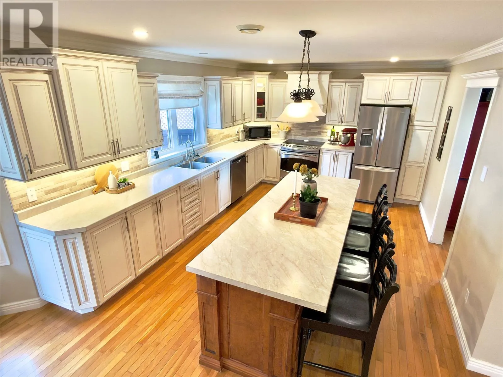 Welcome to this immaculate/extremely well kept home! A written description can hardly do it justice & it really is a MUST SEE! You'll find this home situated on a flat, landscaped, oversized lot (88' x 125') mostly backing on a green belt & just a few minutesâ walk to both the Middle/High Schools not to mention just a few minutesâ drive to the Hospital, shopping & all other amenities. Here you'll find an abundance of parking, 500 sq. ft. detached garage, 450 sq. ft. attached garage plus the shingles were replaced in 2019. Upon entering the home, you find yourself in a very impressive foyer/entrance area which is open to the second floor, to the right is the formal living room with vaulted ceilings, as you move towards the back of the house you pass through the formal dining room which is perfect for those large family meals. At the back of the house, you find the stunning eat in kitchen (updated 2019) - it really is massive with endless counter tops & cabinet/cupboard space, ceramic back splash, stainless steel appliances, a large eat up island plus the very popular walk-in pantry. Right off the kitchen is the practical family room & an office. The main floor also consists of a half bathroom & laundry area. The second floor features the main bathroom & 4 bedrooms, one of which is the out of this world primary bedroom and custom ensuite. The primary bedroom comes in at 16 x 15.5, giving it plenty of room for a king-size bed & bedroom furniture plus it also has a walk-in closet. The ensuite boasts a four-piece set up with a custom tile/glass shower, soaker tub & large vanity area. Don't forget the basement as well where you find a multitude of flex space from an amazing area for a theatre room to a games area, rec room, full bathroom & tons of utility/storage space. A few other items worth mentioning are it has in-floor heating (all plumbing recently updated), several electric fireplaces throughout the home & a pellet stove (basement). As mentioned, it's a MUST SEE! (id:27476)