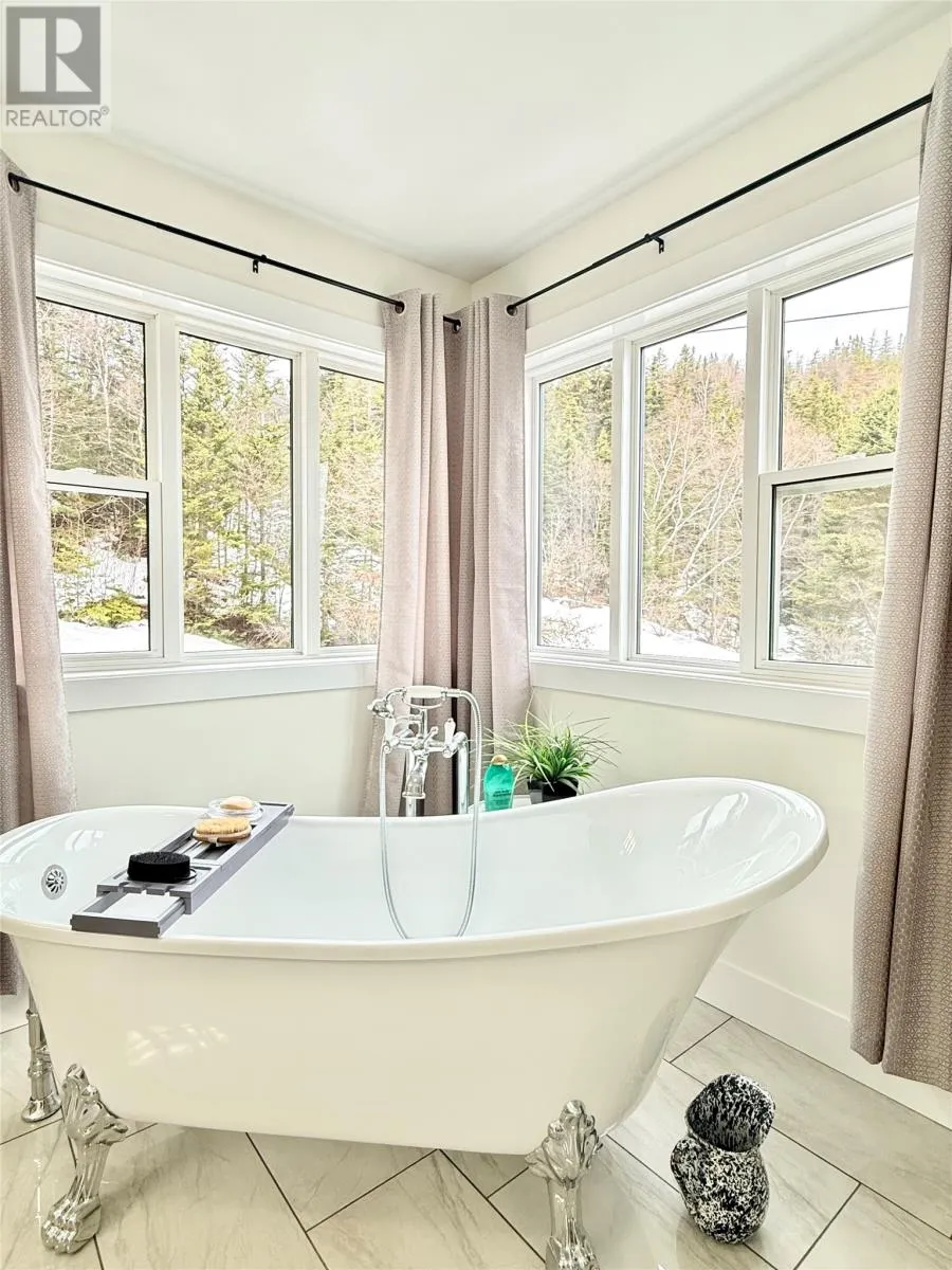 Welcome to this spacious family home in beautiful Clarenville, offering comfort, style, and plenty of room for everyone. The home features oversized bedrooms and three bathrooms, including a large primary suite with a remodeled ensuite complete with heated floors and soaker tub overlooking a peaceful greenspace. The main floor offers both a cozy family room with a wood stove and a bright living room with a lovely view. A large entryway leads to the dining room, a convenient half bath, laundry area, and a charming breakfast nook that opens onto the back deck â perfect for enjoying your morning coffee or entertaining guests. The kitchen is well-equipped with ample cabinet and counter space, all major appliances, and large windows that fill the space with natural light. Upstairs, an impressive staircase leads to the spacious bedrooms, each designed for comfort and privacy. Outside, youâll find a quiet, serene backyard, an attached 18x24 garage, and a detached 19x18 wired garage, offering plenty of space for vehicles, storage, or a workshop. Located just moments from the Bear Mountain hiking trail, this home provides the perfect blend of tranquility, convenience, and natural beauty. (id:27476)