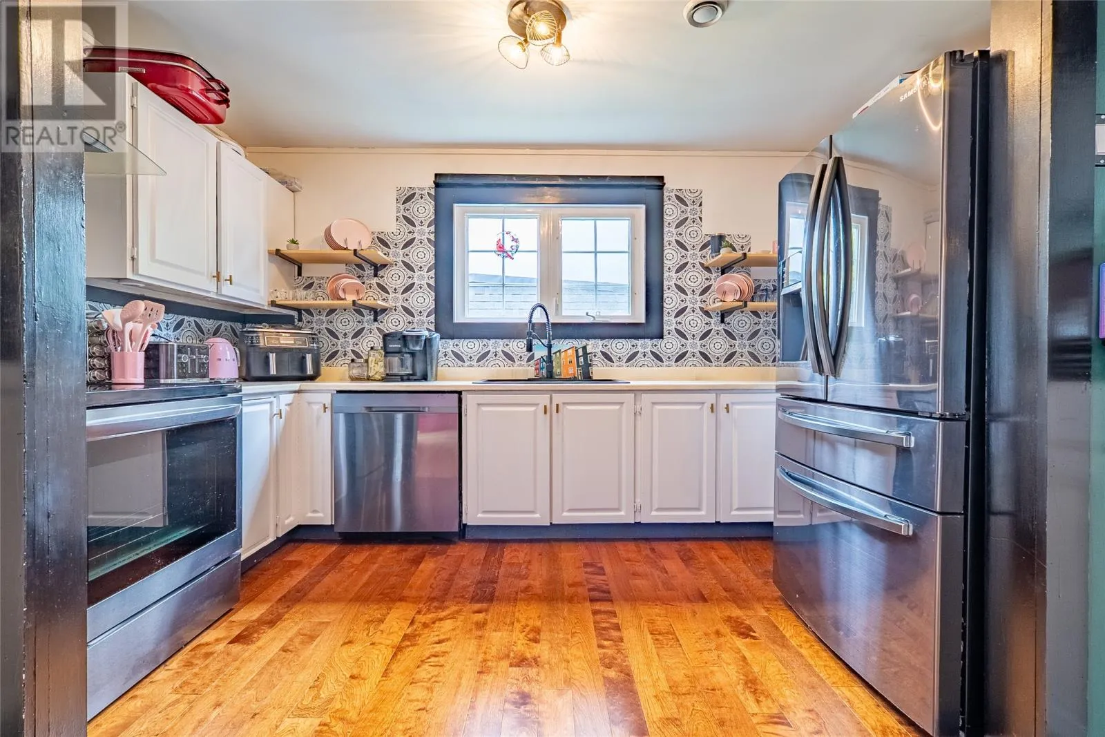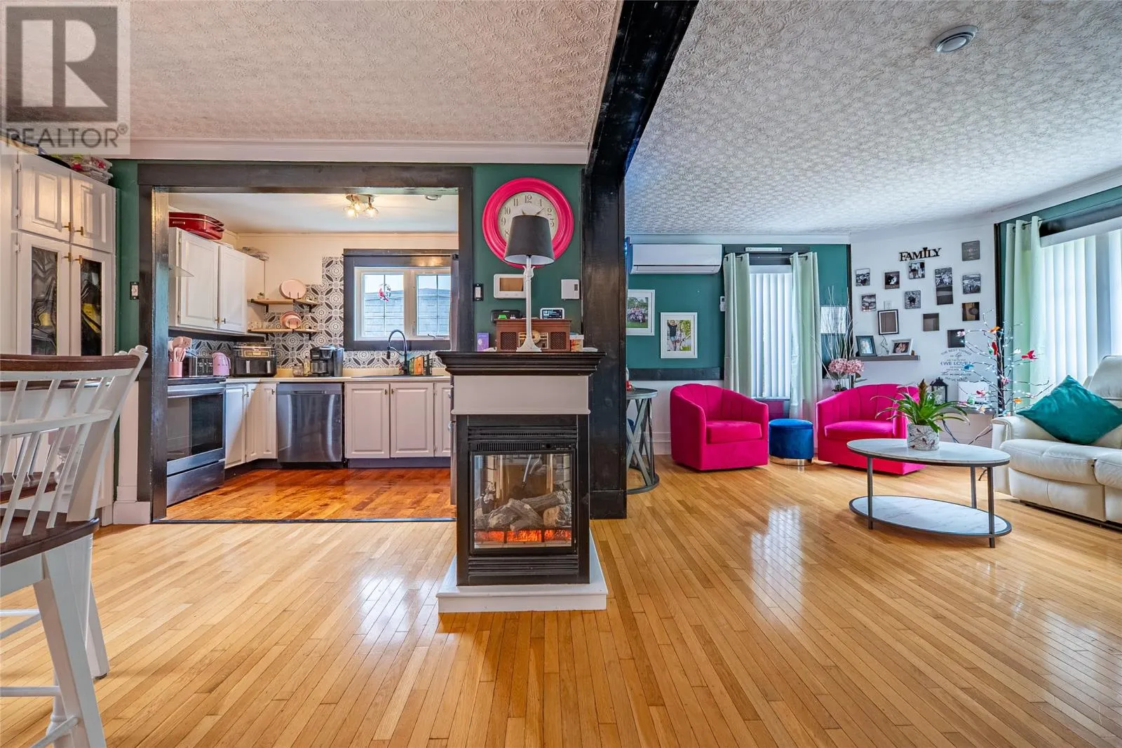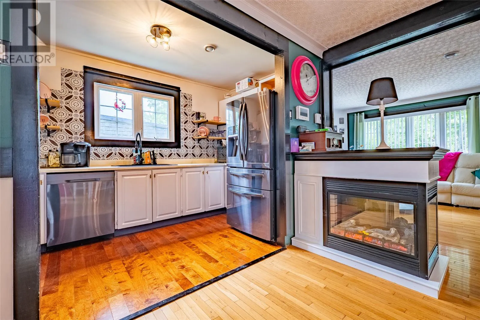 WOWâthis home has been completely transformed with countless upgrades. Features include a two-sided electric fireplace between the kitchen and living room, new appliances, light fixtures, kitchen sink, and an added living room window. The stairs now feature new hardwood, plus a mini-split for comfort. The main bath offers a double shower, new toilet and sink, and updated laminate flooring throughout. Colonial doors, shingles (approx. 5 yrs), new clapboard siding, and blown-in insulation complete the updates. The spacious primary bedroom boasts a walk-in closet created from a former third bedroom (can easily be converted back), an electric fireplace, and a private deck with new patio doorsâperfect for morning coffee. Upstairs, the family room features a propane stove and a bar area. Set on an extra-large lot in a quiet, tree-lined Topsail street, this property offers rustic charm and the serenity of country living with city convenience. Enjoy drive-in access to the detached garage, a huge patio deck, and close proximity to schools and Topsail Beach. (id:27476)