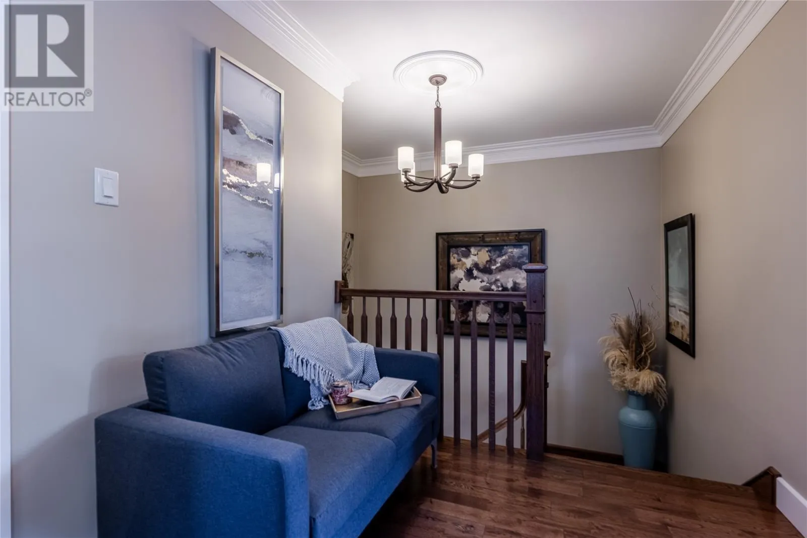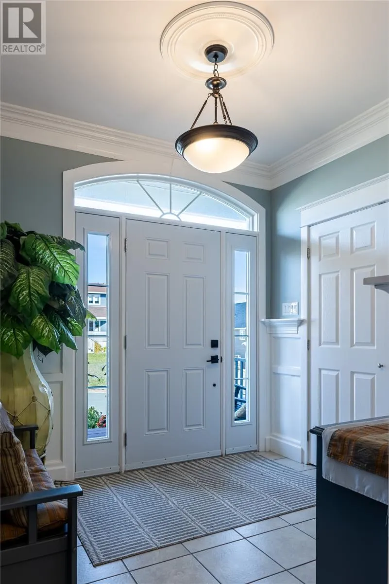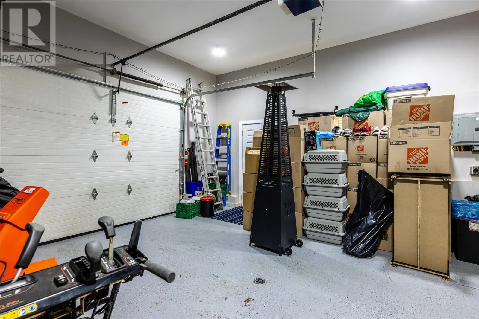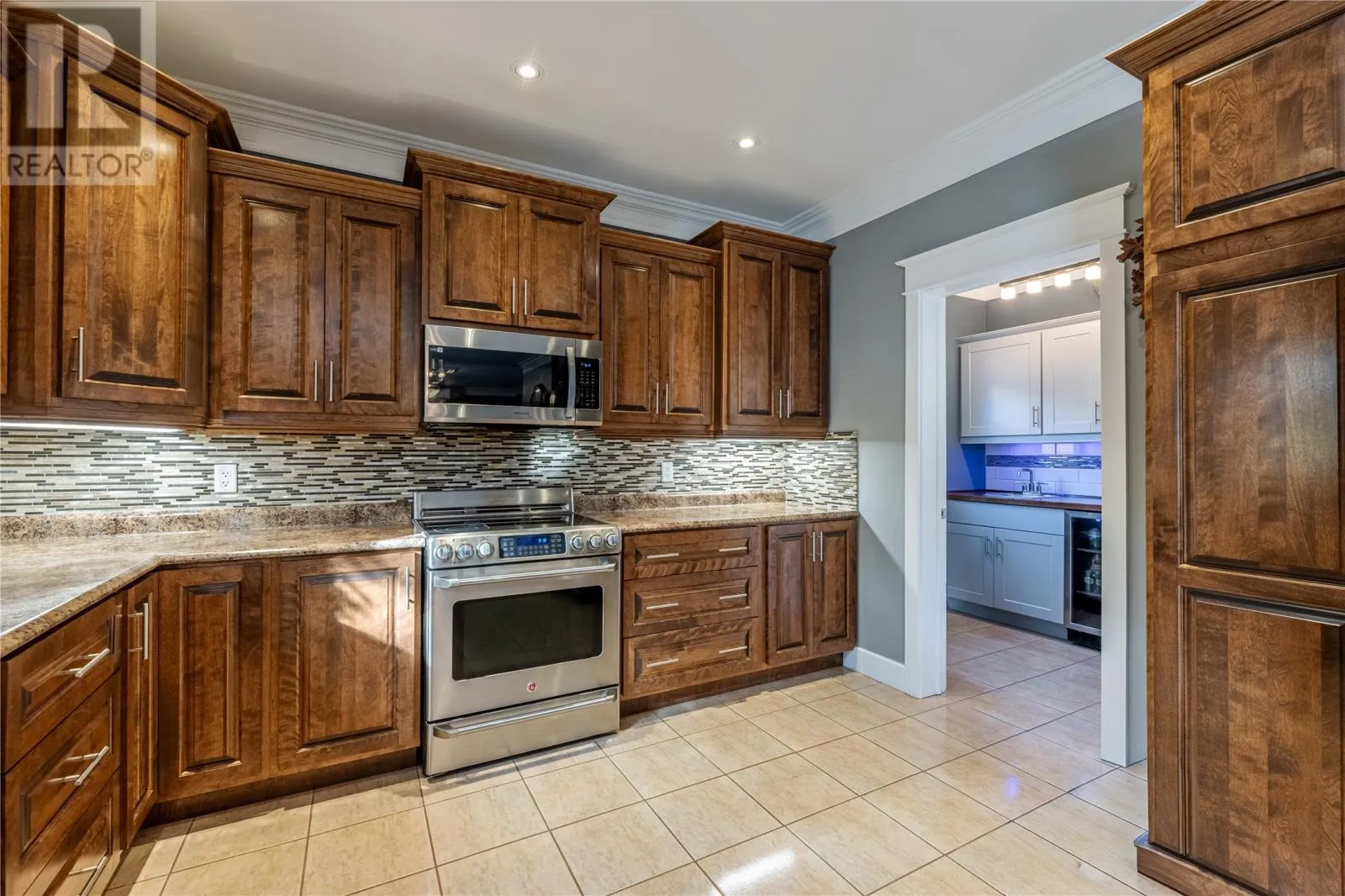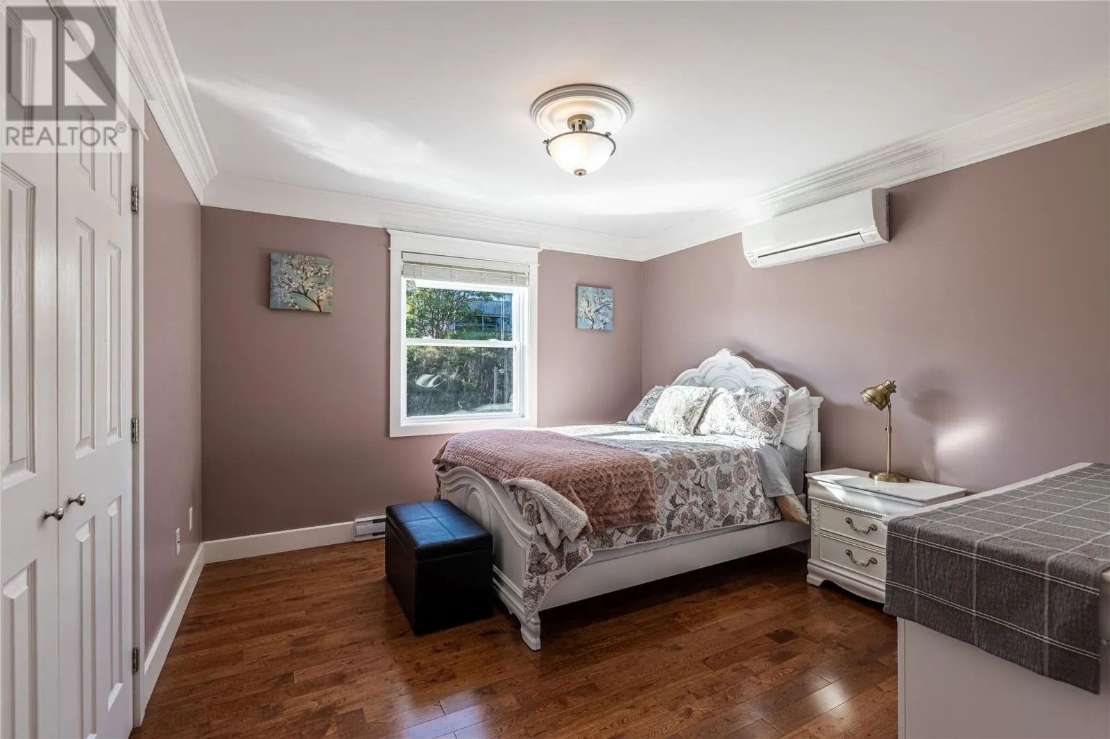 Pride of Ownership in Topsail â This beautifully maintained 5-bedroom, 3.5-bath home sits on a landscaped lot with plenty of curb appeal. The main floor features 9 ft ceilings, a welcoming porch, spacious dining room, half bath, and an open-concept kitchen with pantry (plus bar fridge), eating area, and living room with propane fireplace and custom shelving. Upstairs youâll find two large bedrooms, a main bath, and a bright primary suite with walk-in closet and ensuite.18 x 20 attached garage with fully developed basement with family room with electric fireplace, laundry, full bath, and two additional bedrooms. Extras include hardwood stairs, custom cove mouldings, wine cellar, and 3 mini-splits. The fenced backyard is a showstopper with two enclosed patio areas (one with hot tub), storage shed, and a large paved driveway for extra parking. Don't miss out on this one! (id:27476)