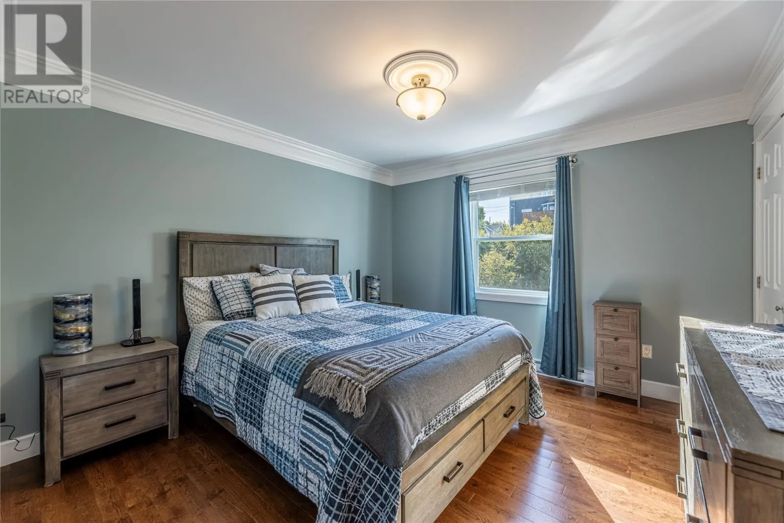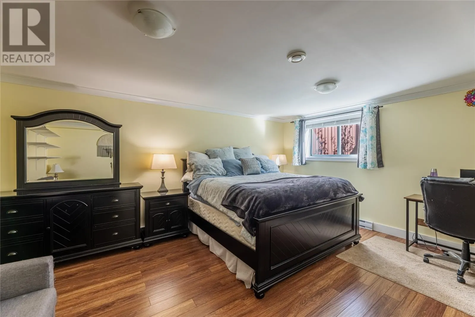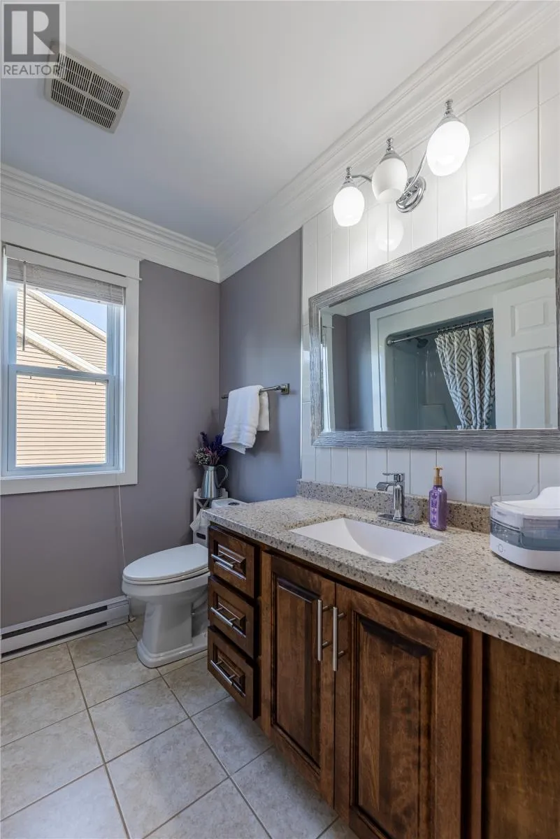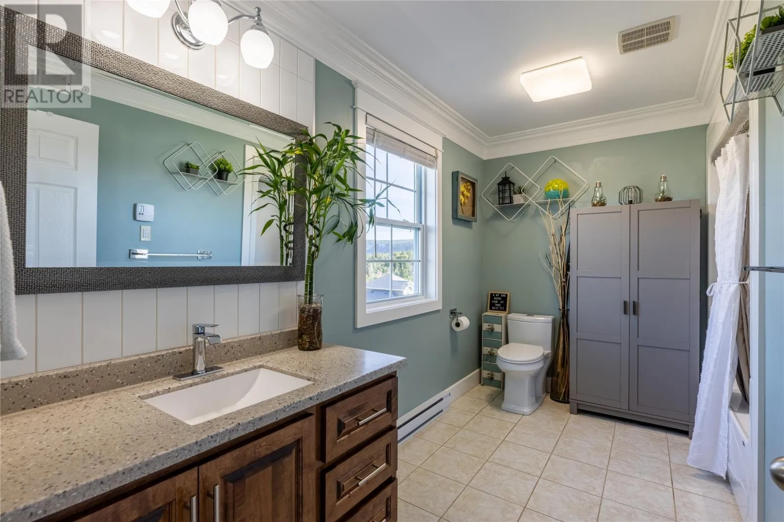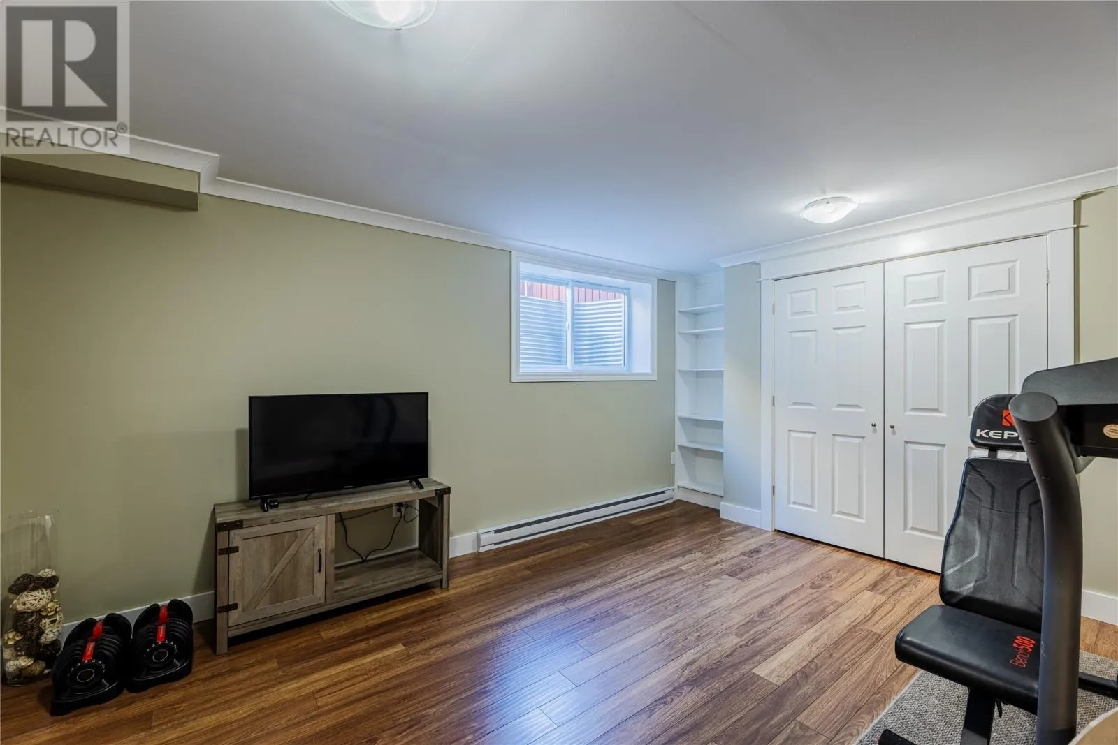 Pride of Ownership in Topsail â This beautifully maintained 5-bedroom, 3.5-bath home sits on a landscaped lot with plenty of curb appeal. The main floor features 9 ft ceilings, a welcoming porch, spacious dining room, half bath, and an open-concept kitchen with pantry (plus bar fridge), eating area, and living room with propane fireplace and custom shelving. Upstairs youâll find two large bedrooms, a main bath, and a bright primary suite with walk-in closet and ensuite.18 x 20 attached garage with fully developed basement with family room with electric fireplace, laundry, full bath, and two additional bedrooms. Extras include hardwood stairs, custom cove mouldings, wine cellar, and 3 mini-splits. The fenced backyard is a showstopper with two enclosed patio areas (one with hot tub), storage shed, and a large paved driveway for extra parking. Don't miss out on this one! (id:27476)