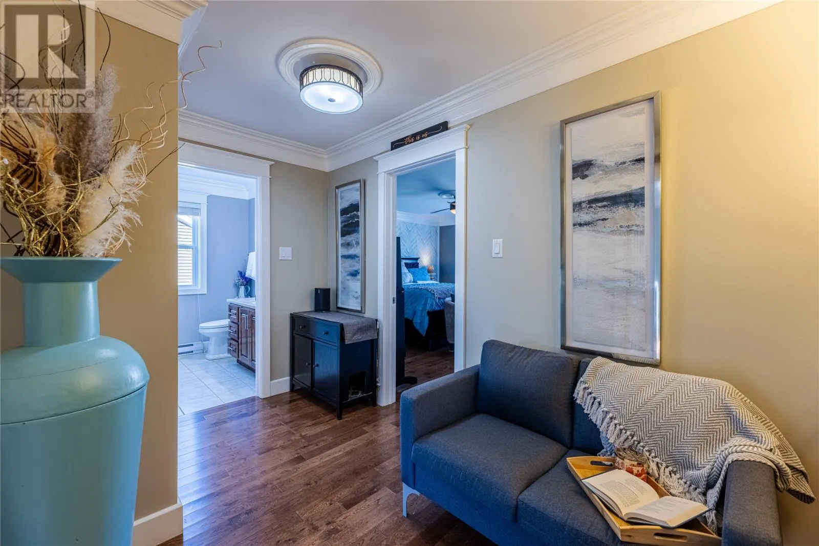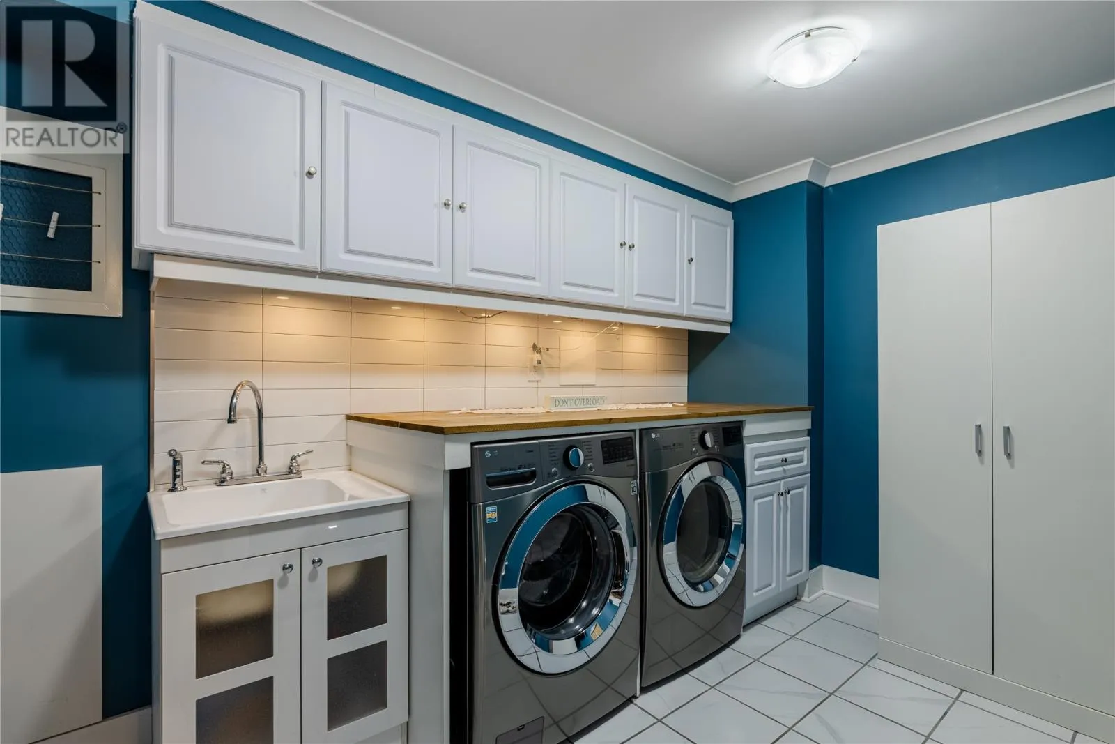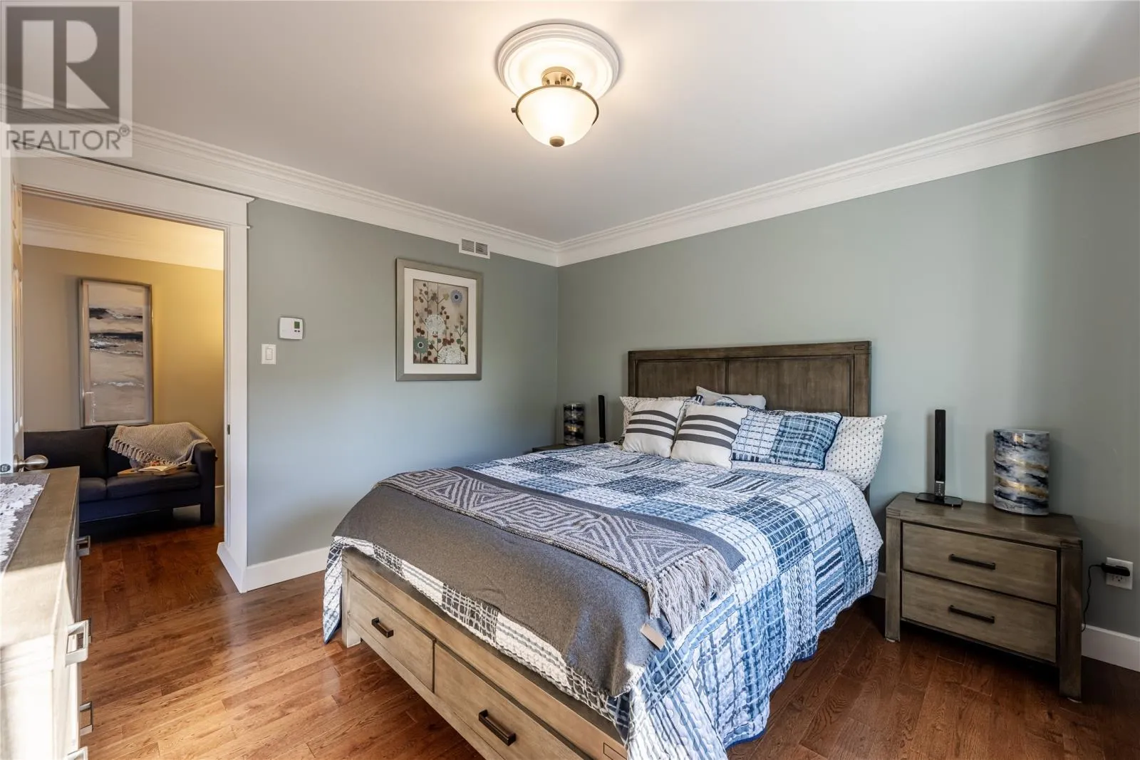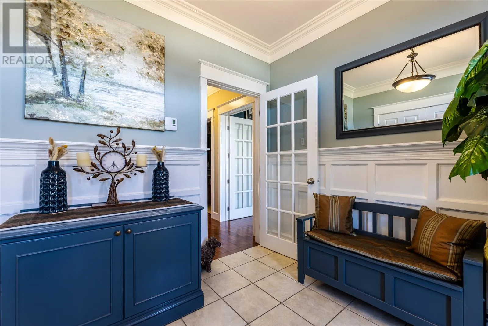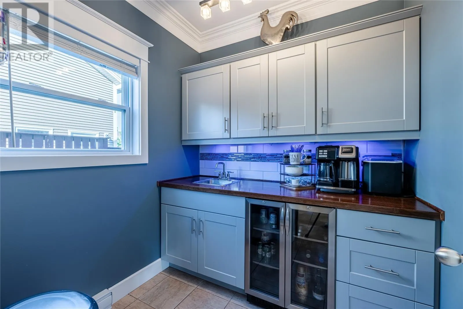 Pride of Ownership in Topsail â This beautifully maintained 5-bedroom, 3.5-bath home sits on a landscaped lot with plenty of curb appeal. The main floor features 9 ft ceilings, a welcoming porch, spacious dining room, half bath, and an open-concept kitchen with pantry (plus bar fridge), eating area, and living room with propane fireplace and custom shelving. Upstairs youâll find two large bedrooms, a main bath, and a bright primary suite with walk-in closet and ensuite.18 x 20 attached garage with fully developed basement with family room with electric fireplace, laundry, full bath, and two additional bedrooms. Extras include hardwood stairs, custom cove mouldings, wine cellar, and 3 mini-splits. The fenced backyard is a showstopper with two enclosed patio areas (one with hot tub), storage shed, and a large paved driveway for extra parking. Don't miss out on this one! (id:27476)
