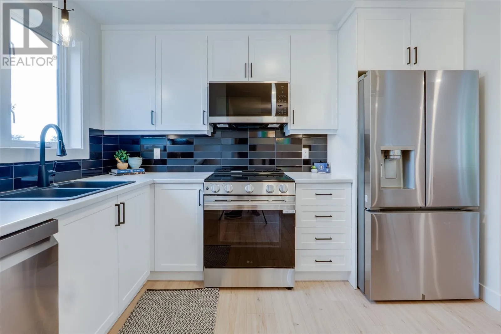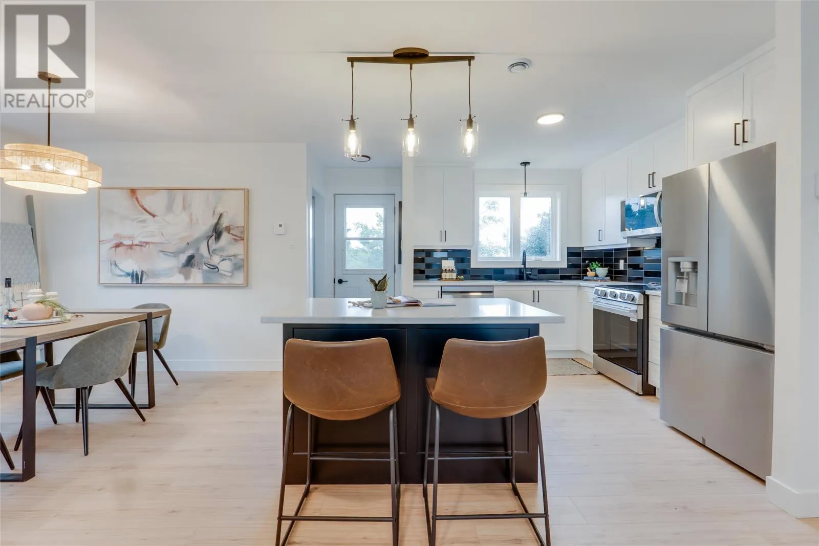 New build vibes without the hassle of building fresh! Welcome to 12 Partridge Place. Situated on an oversized, pie-shaped lot in a sought after CBS neighbourhood with 2 driveways, this fully developed bungalow has seen extensive renovations inside and out. The main floor features a modern, open concept design with new flooring and paint throughout, along with gorgeous black interior doors and the added efficiency of an 18,000 BTU mini-split. The brand new kitchen is a showstopper with white cabinetry and contrasting hardware, stunning custom tile backsplash, and all new stainless steel appliances. The remainder of the main floor includes main bathroom with custom tiled shower and 3 well appointed bedrooms. The primary bedroom also features a pocket privacy door to the main bathroom. Downstairs, the basement is fully developed with a spacious rec room and options for a home office, play area, or even an easy in-law suite conversion with its own entrance. You'll also find a second full bathroom with custom shower. Outside you'll new decks at the front and rear of the home along with rear yard access to the 24x30 double bay garage. Surrounded by mature trees, the backyard has enough space for whatever you need! Just off Fowler's Road, this home is minutes away from daycare centres, highway access, shopping, and walking trails. Move-in ready with all you need at your fingertips! What are you waiting for? Arrange your viewing today! (id:27476)