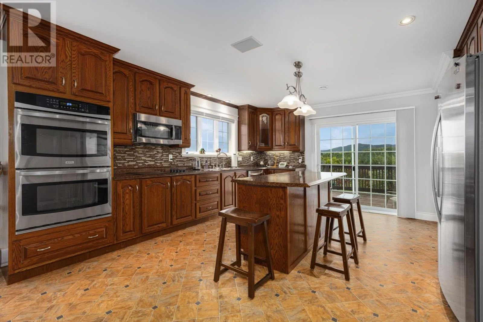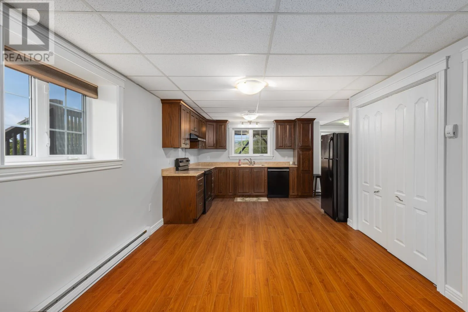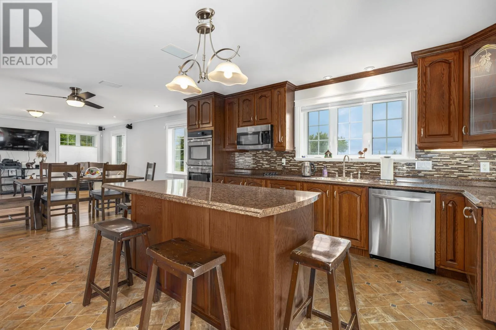 Beautiful Large Bungalow in scenic Conception Bay South. 2100 square feet of living area per floor - this home has all the extra space you need with beautiful hardwood floors throughout. The main floor as a massive open concept living/dining room and kitchen area. The three bedrooms are huge with a over-sized walk-in closet and ensuite bath off the primary bedroom. Just off the kitchen you'll find a a den/office(13ftx8.5ft) and the laundry. Off the kitchen too there is a extremely large patio stretching the full length of the home over looking the valley - 32ft by 12ft. On the lower level there's an oversized 1 bedroom apartment with an office/den measuring 13ftx8ft. This is truly a gorgeous apartment for a family member. The massive family room measuring 24ft by 19ft with a propane fireplace and wet bar is also on this level along with the garage with the entrance on the back of the home. This home is in like new condition and shows exceptionally well. (id:27476)